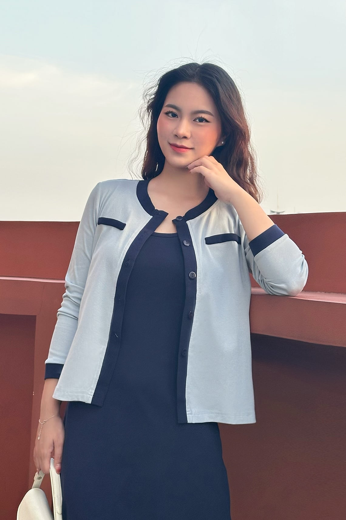 Áo cardigan cổ tròn phối màu-GBT003 : L65C25T012