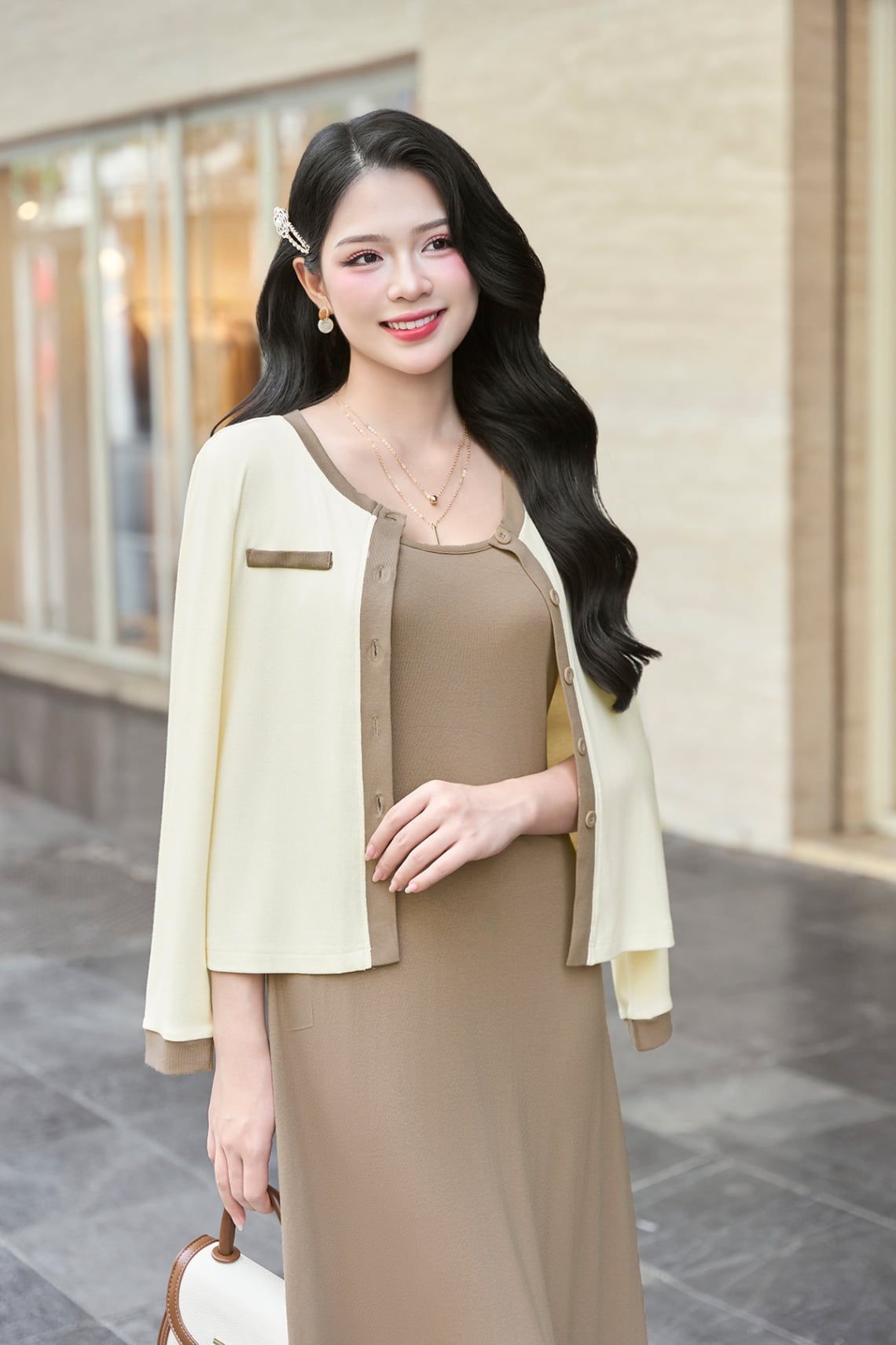 Áo cardigan cổ tròn phối màu - L65C25T012 KHUYẾN MÃI - ƯU ĐÃI