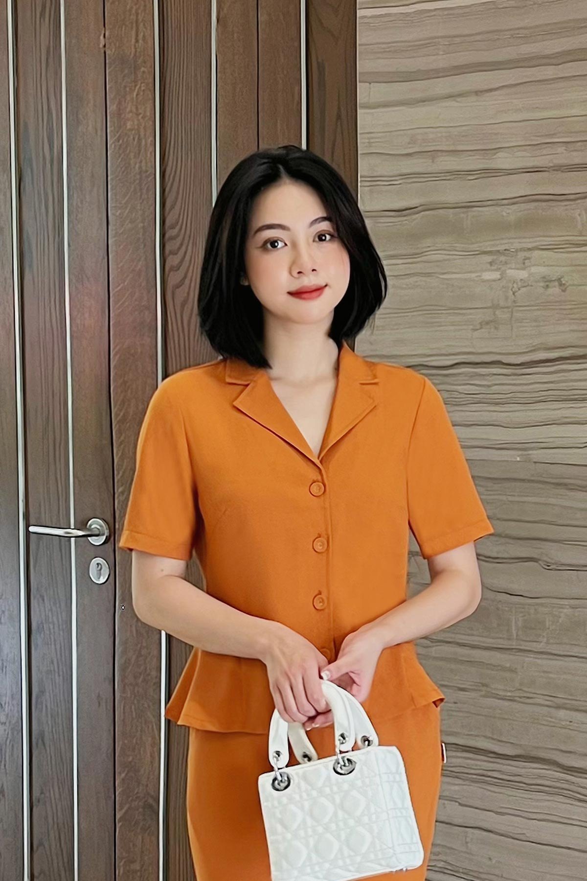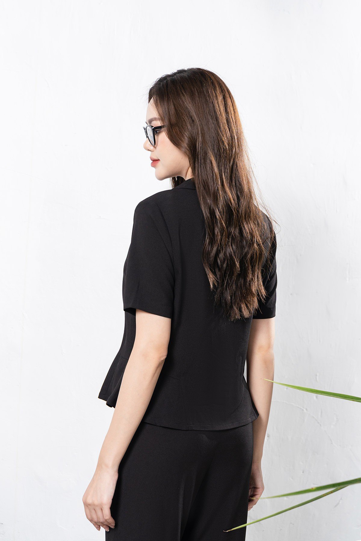 Mô tả sản phẩm : Dáng ôm, cổ 2 ve, nẹp đính cúc, tay cộc, gấu áo can xòe