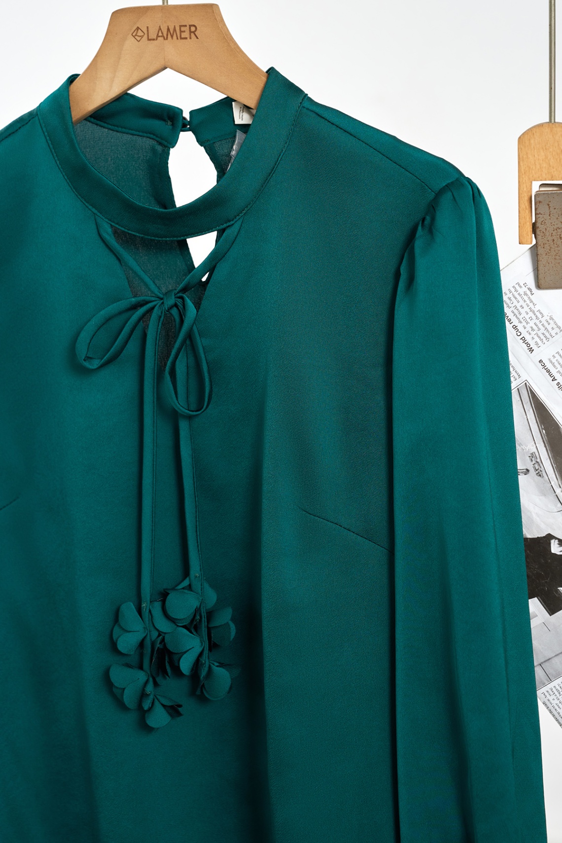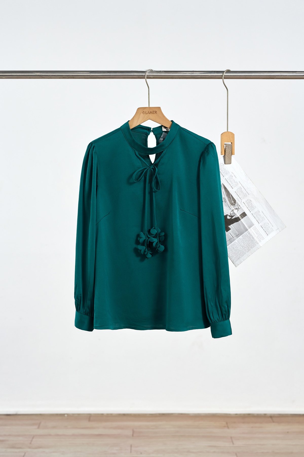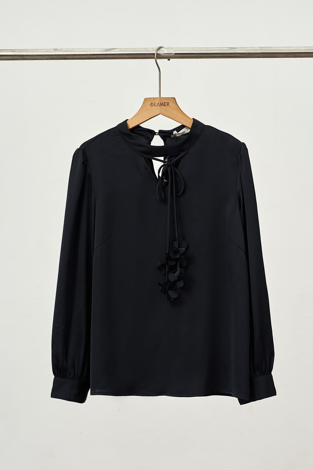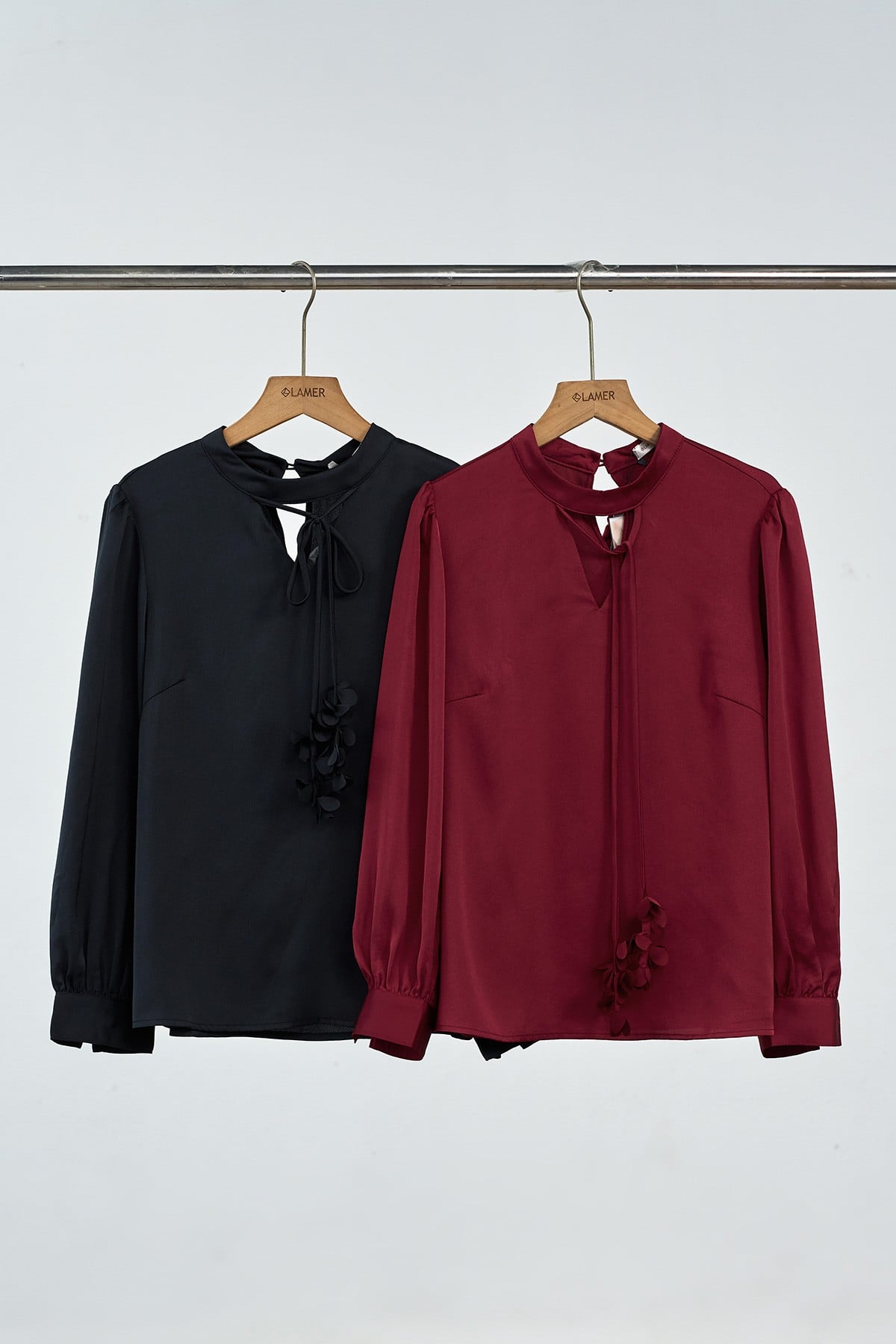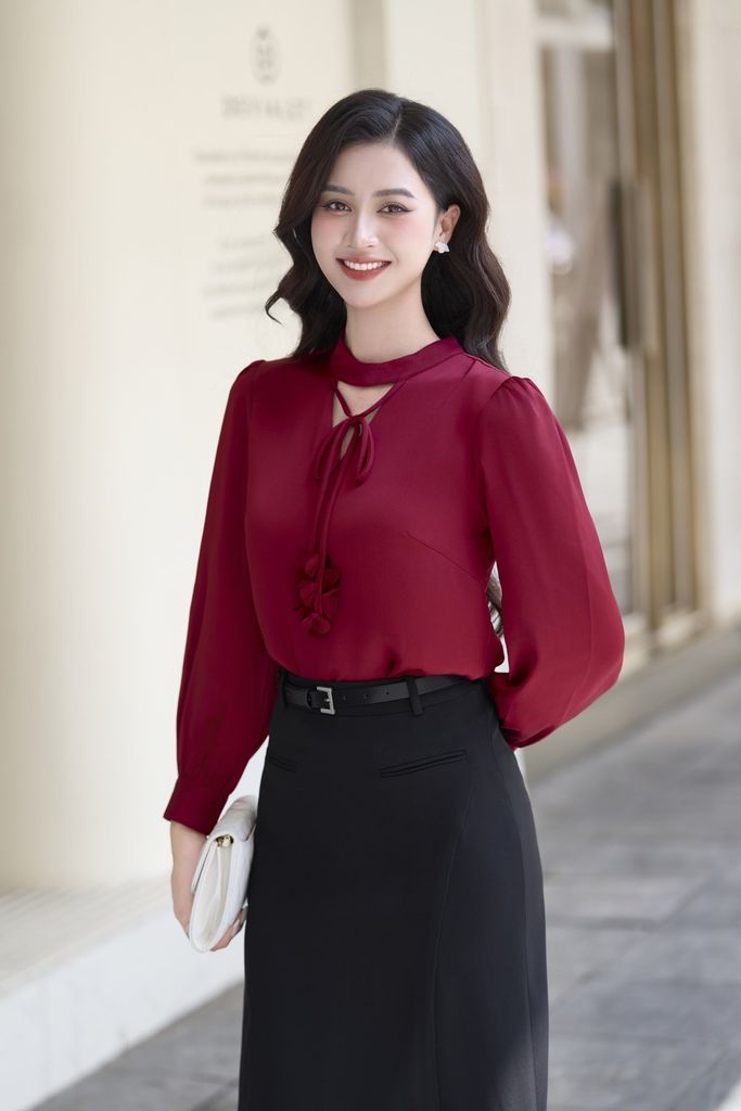 Áo cổ tàu xẻ V buộc dây nơ - L61B25Q027 KHUYẾN MÃI - ƯU ĐÃI