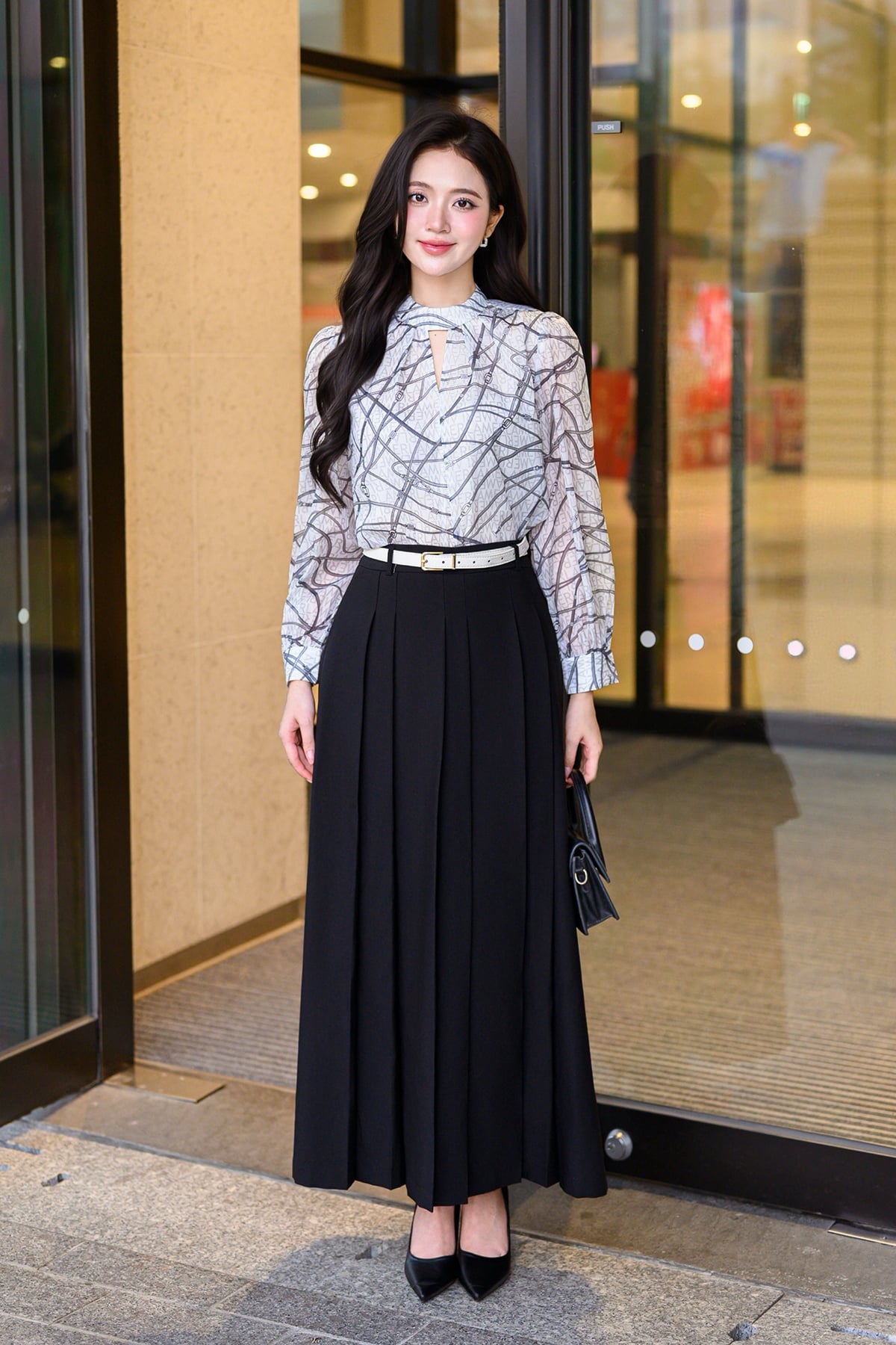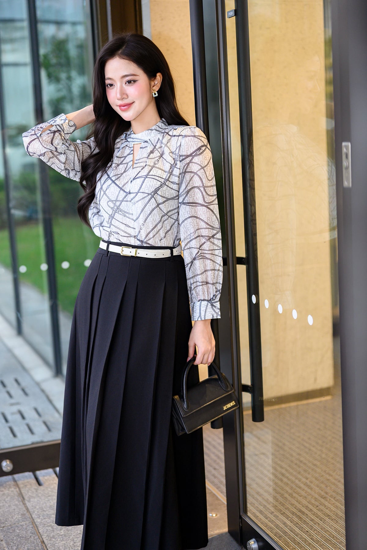 Áo cổ tàu xẻ V xếp ly : L61B26Q001