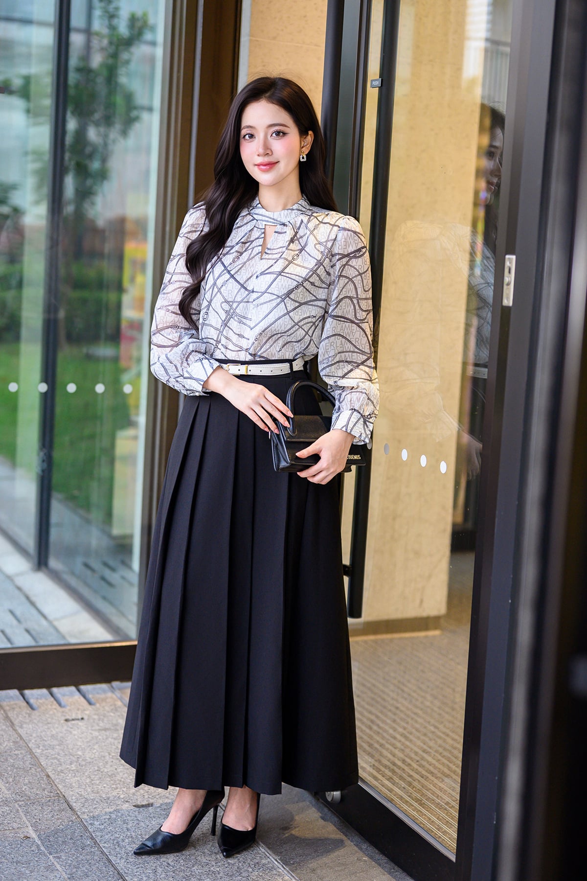Áo cổ tàu xẻ V xếp ly - L61B26Q001