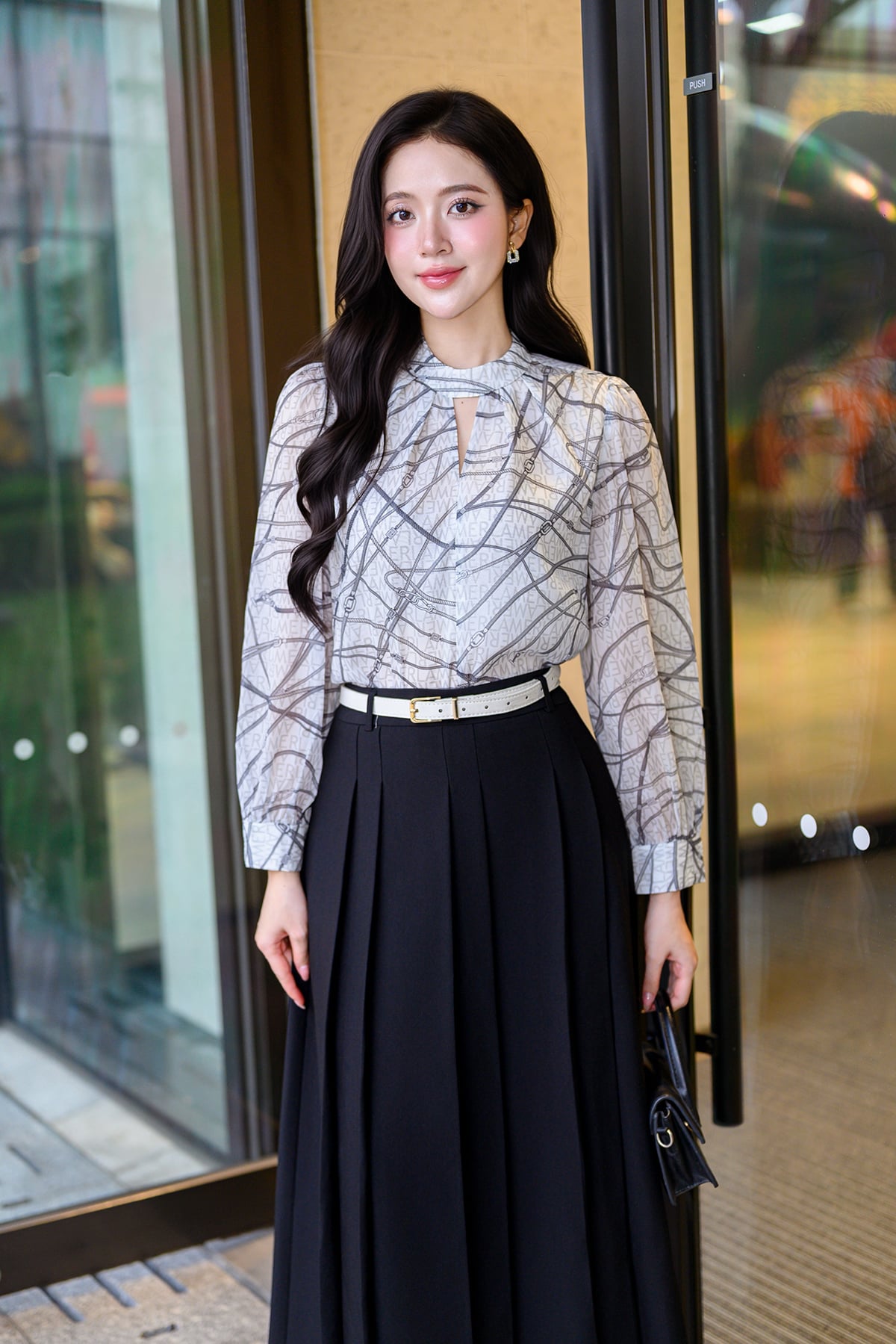 Áo cổ tàu xẻ V xếp ly - L61B26Q001 KHUYẾN MÃI - ƯU ĐÃI