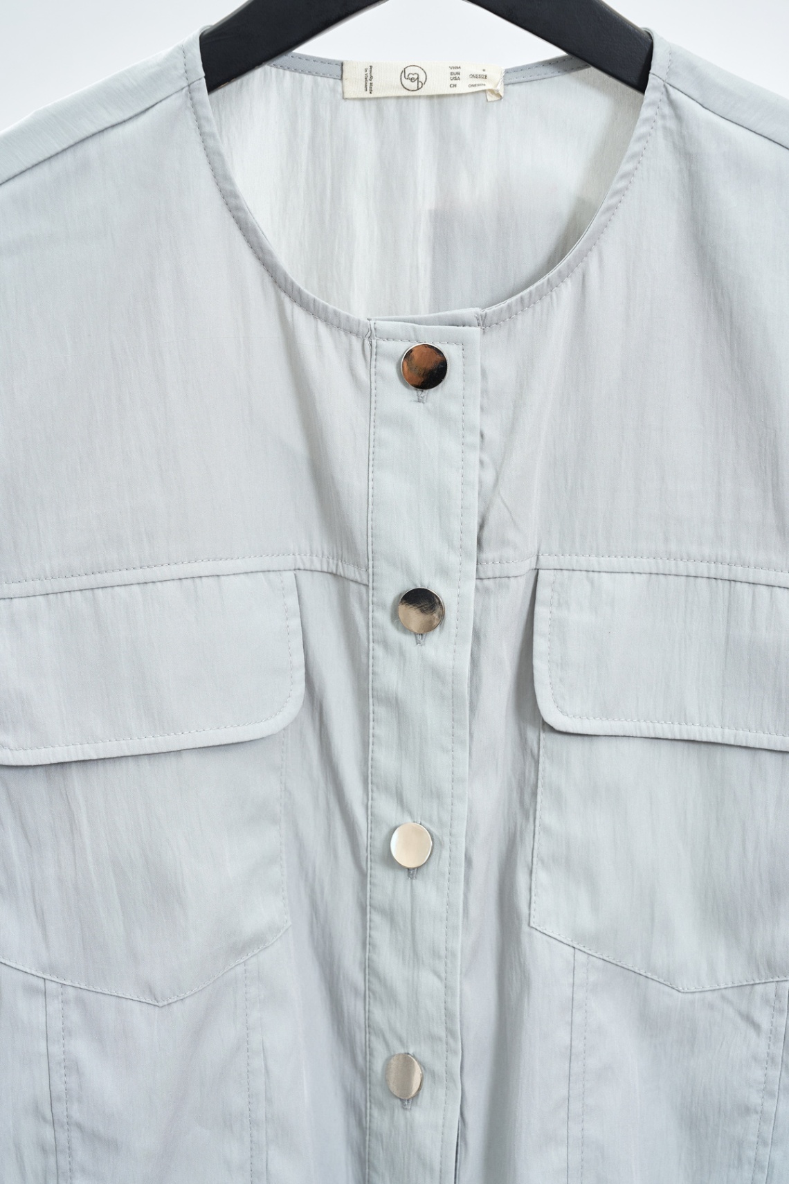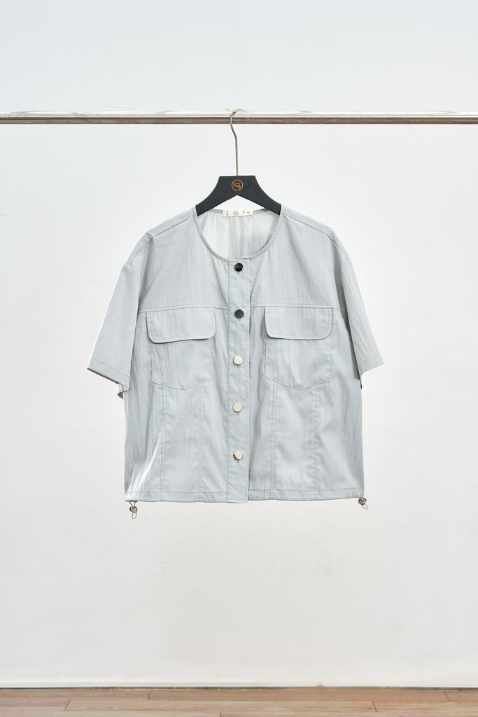 Mô tả sản phẩm : Áo cổ tròn, chun gấu, túi ốp, bổ thân, đóng cúc bấm