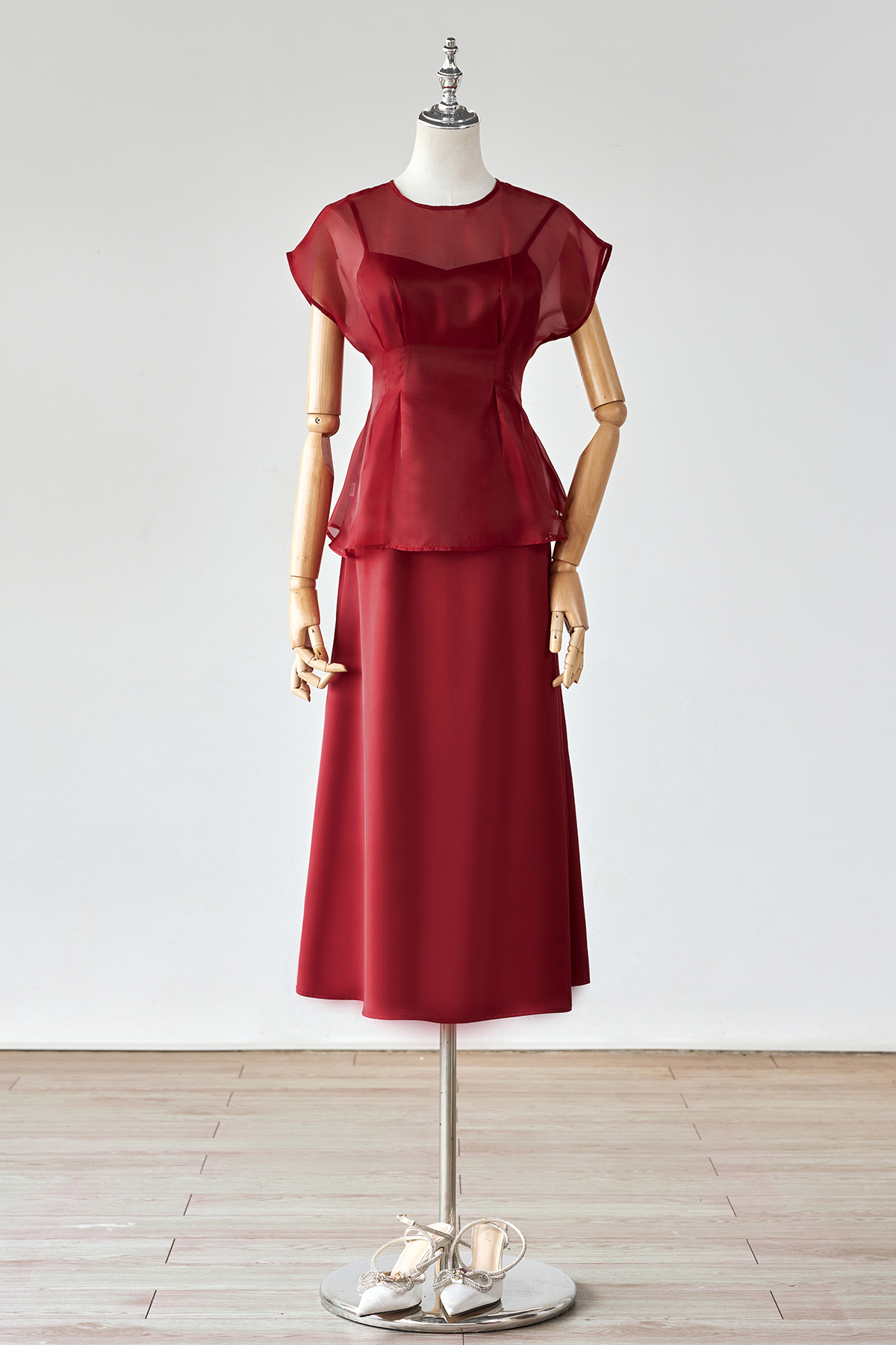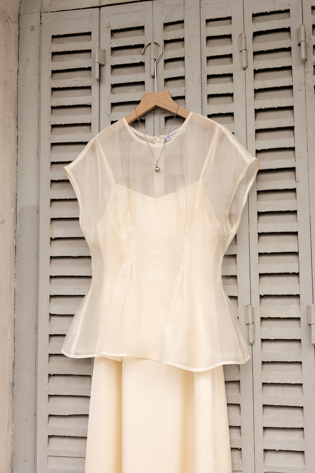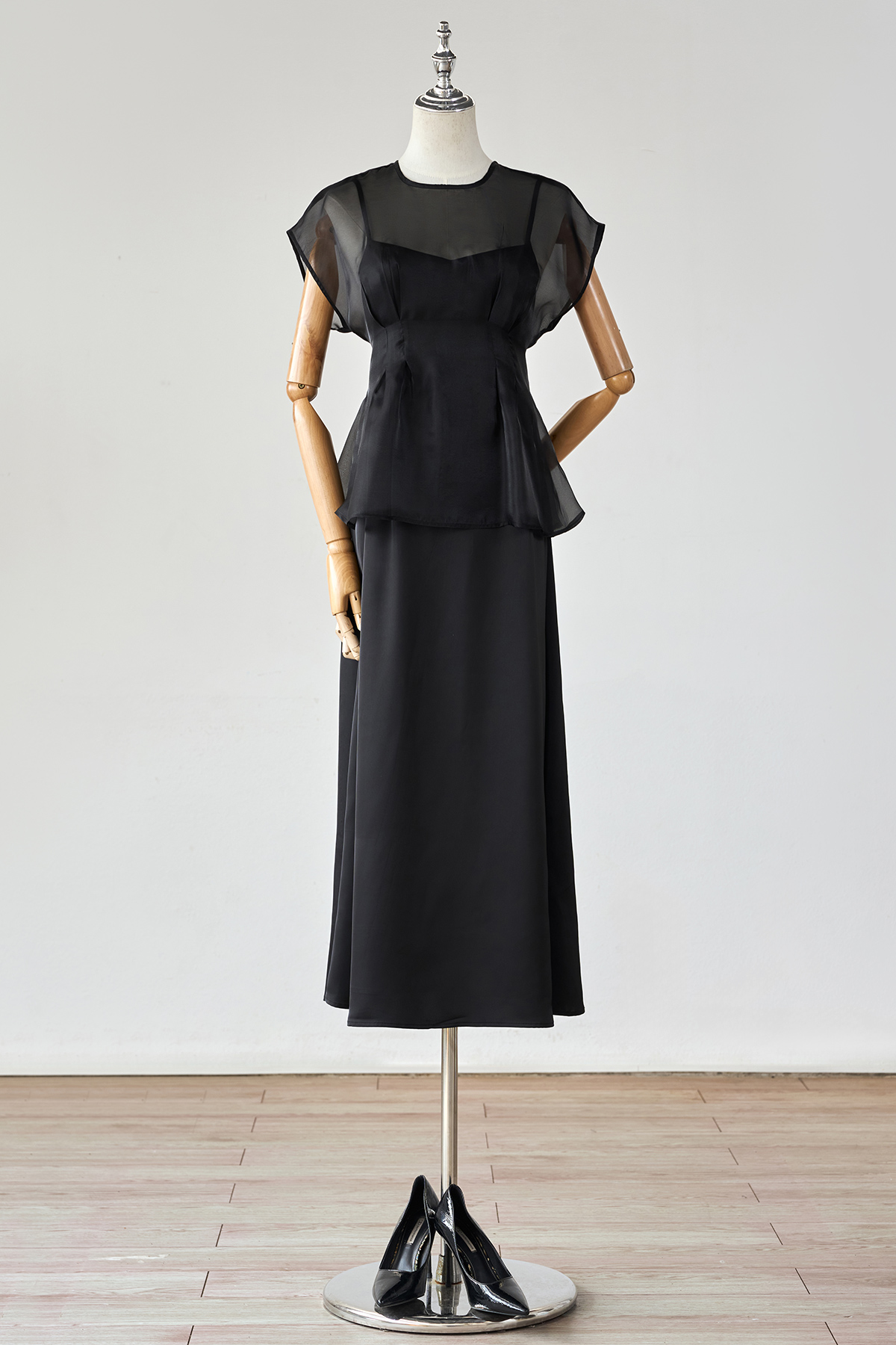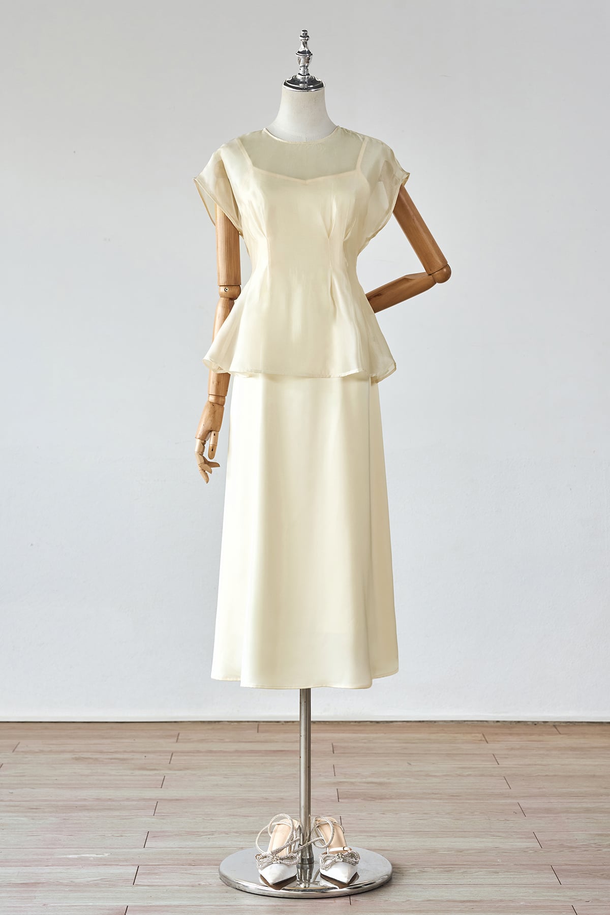Áo cổ tròn vai chờm chiết ly eo-GBBST Tiệc : S61B26Q003