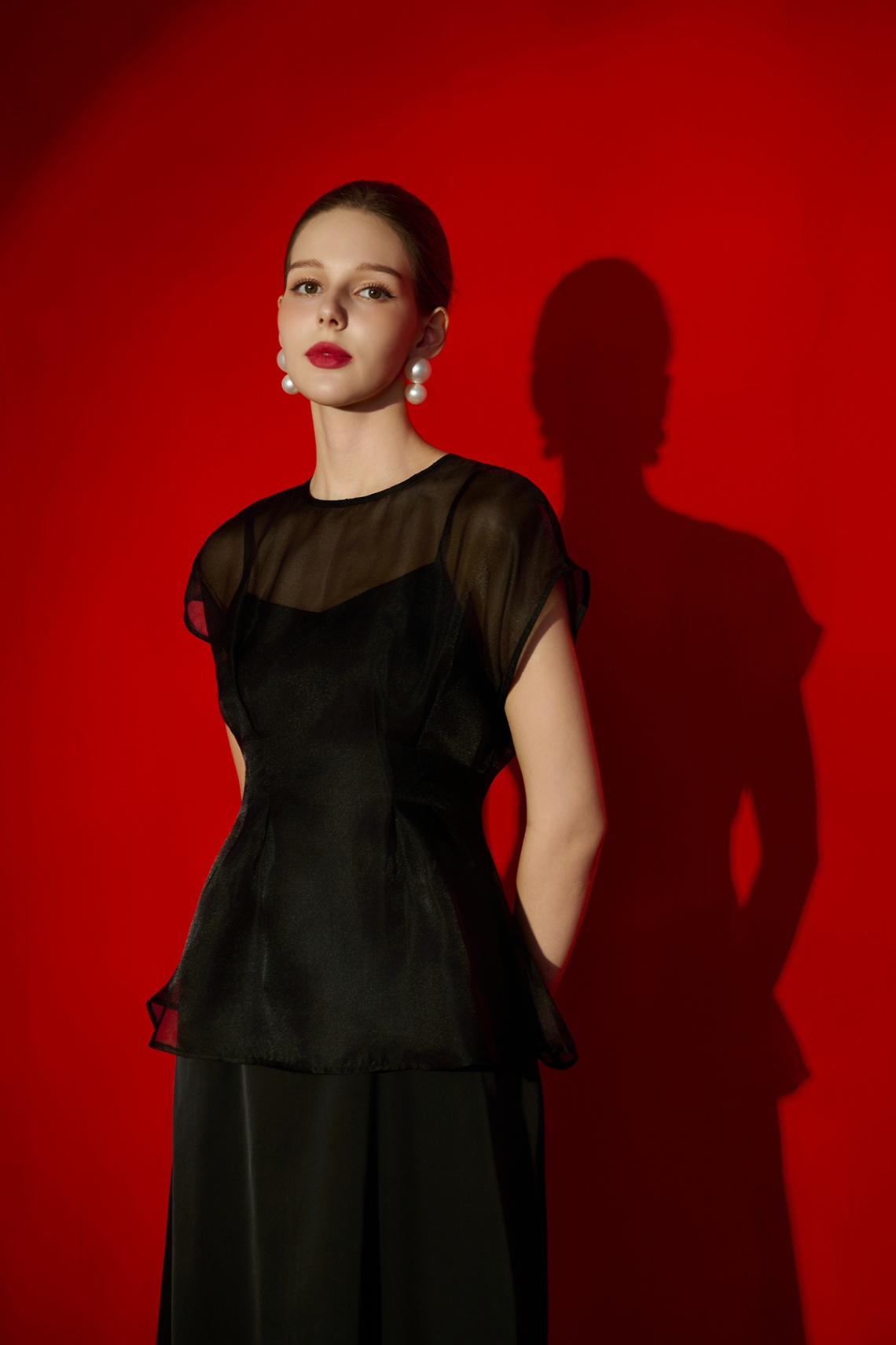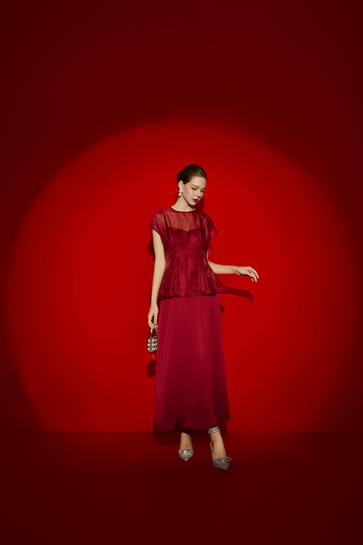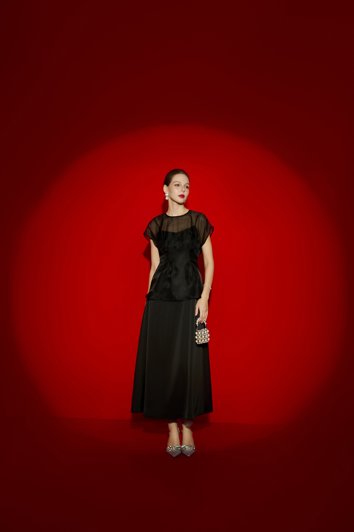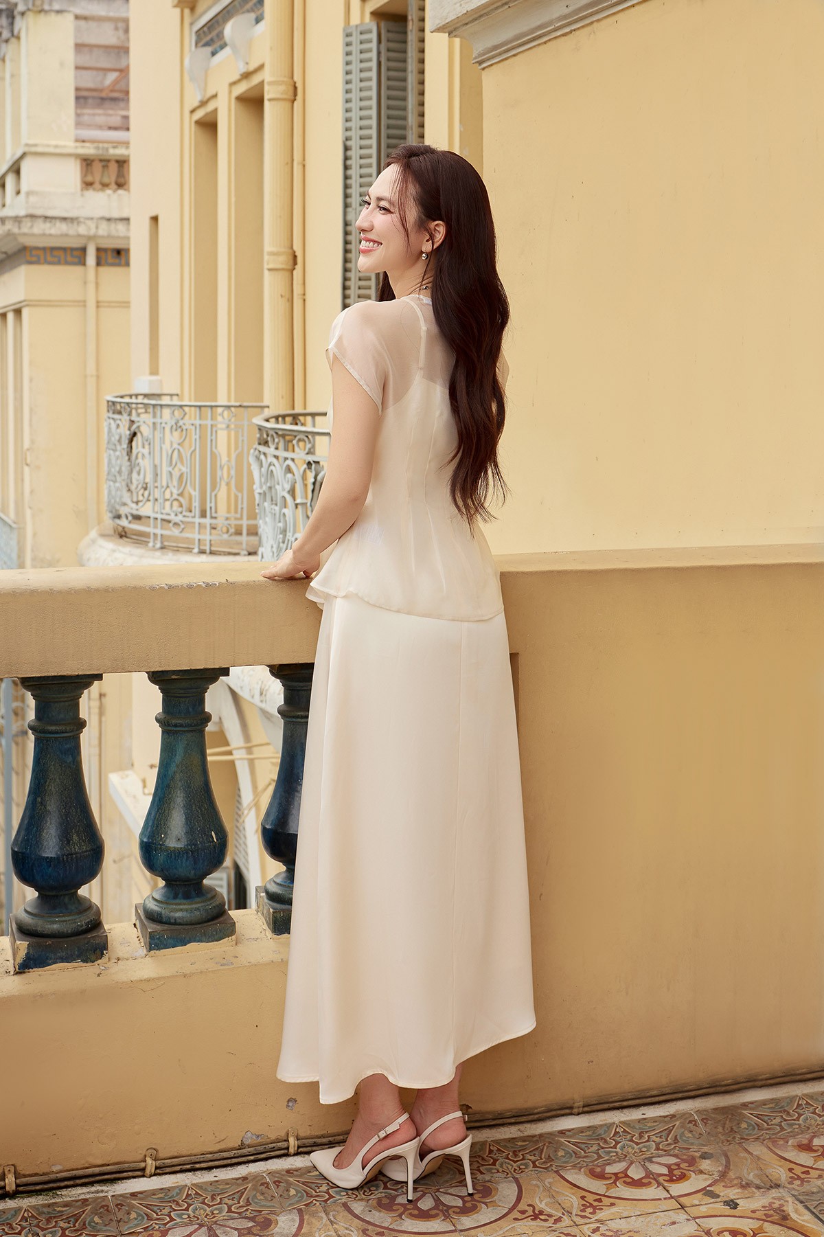 Áo cổ tròn vai chờm chiết ly eo-GBBST Tiệc : S61B26Q003