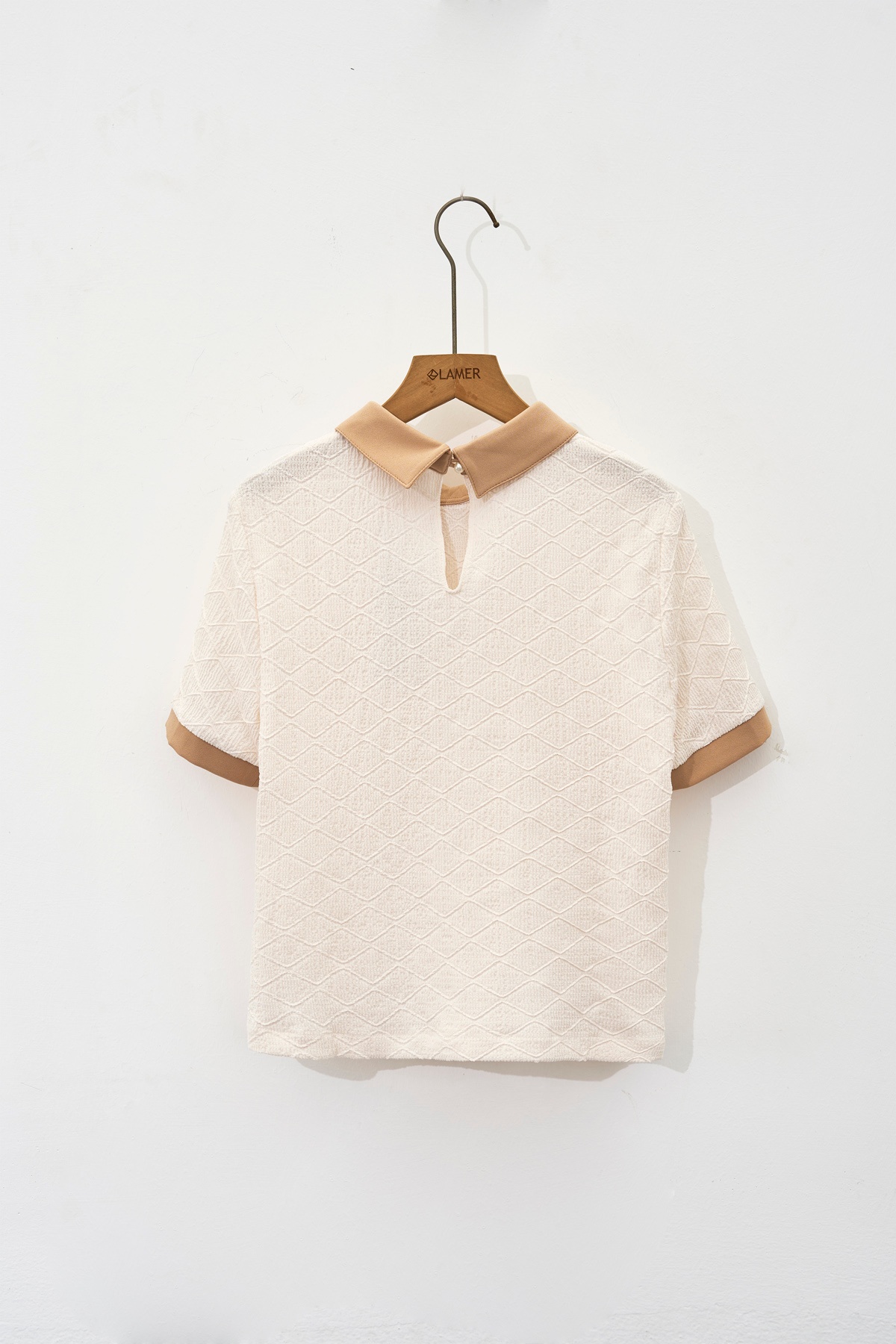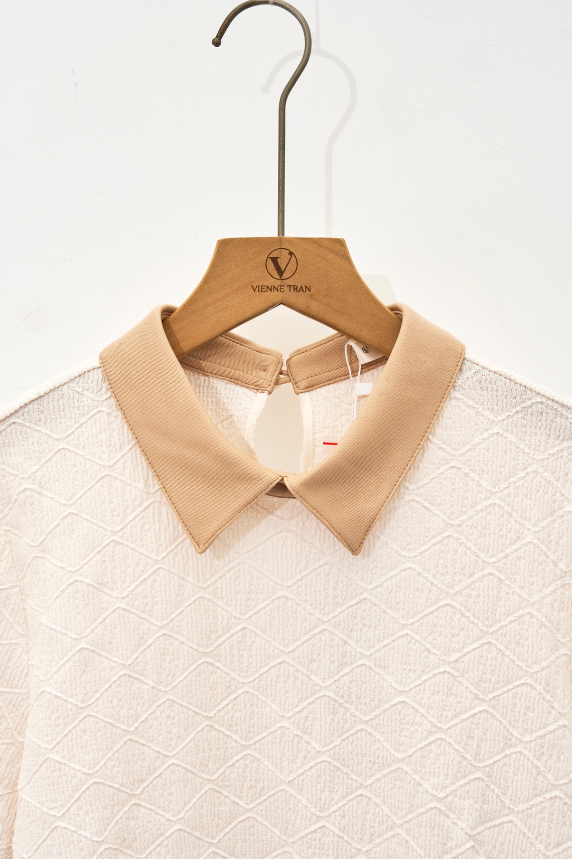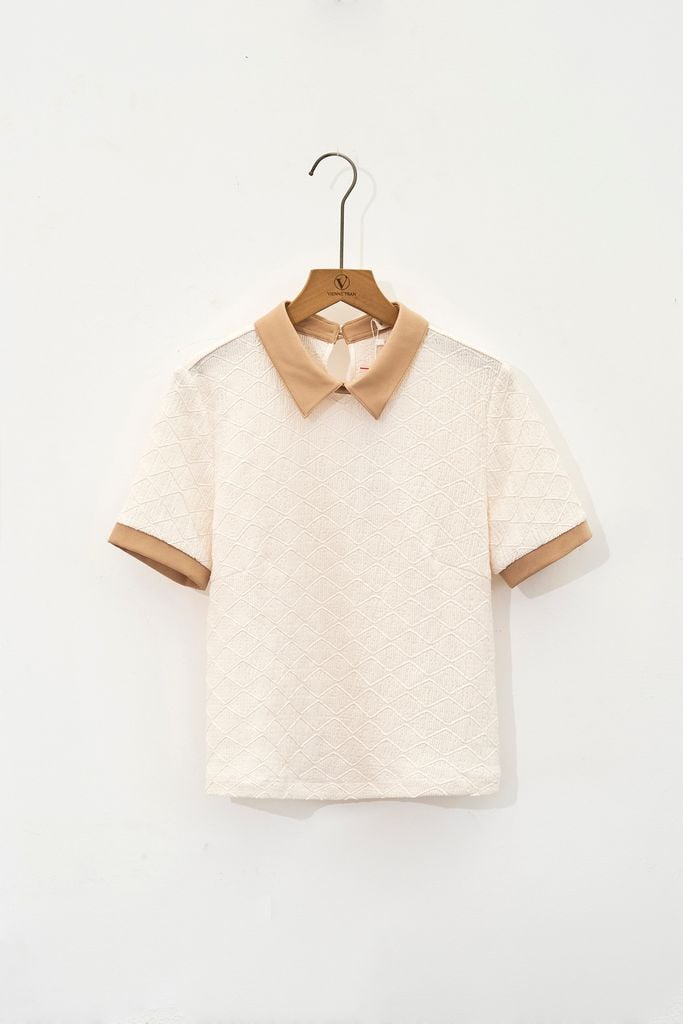Mô tả sản phẩm : Áo croptop cổ víc, tay ngắn, phối màu