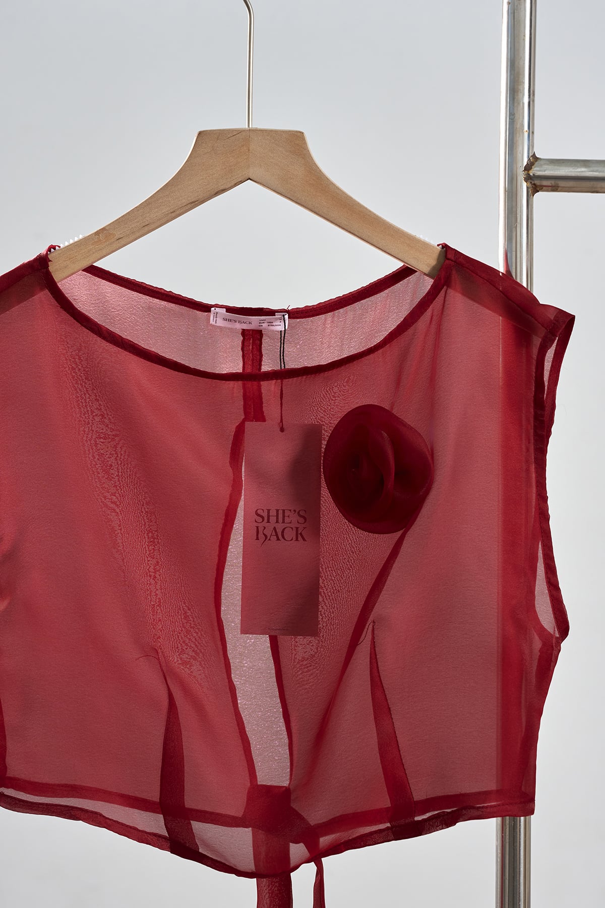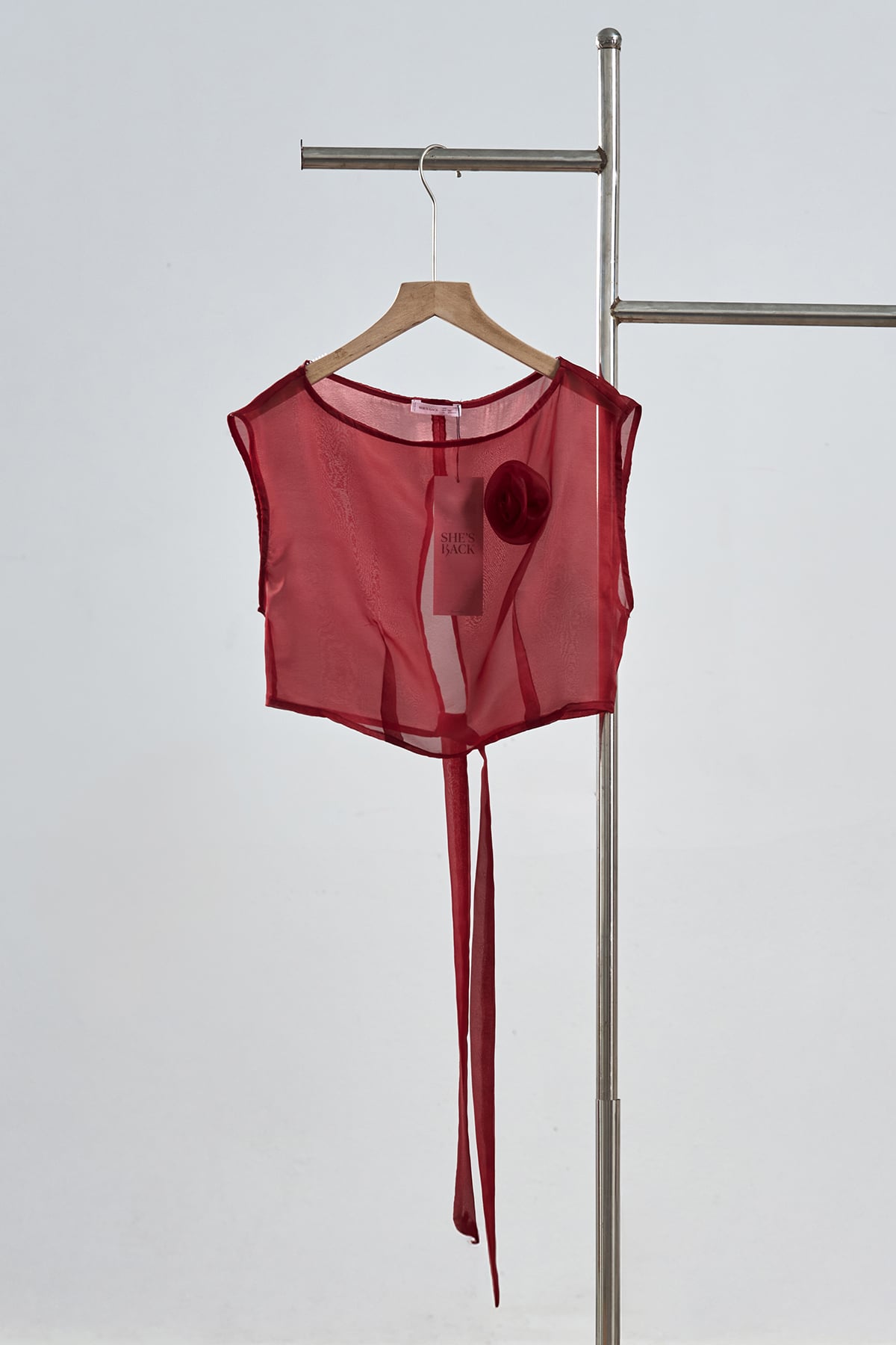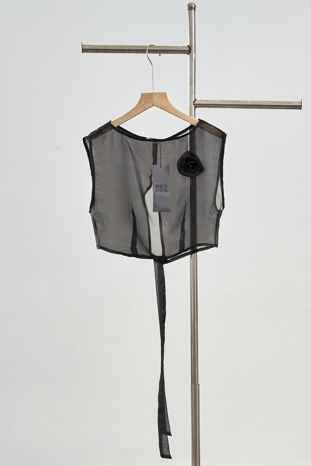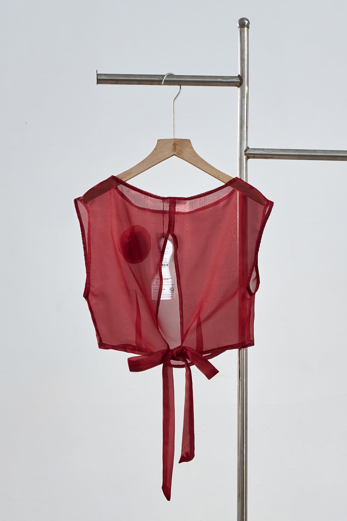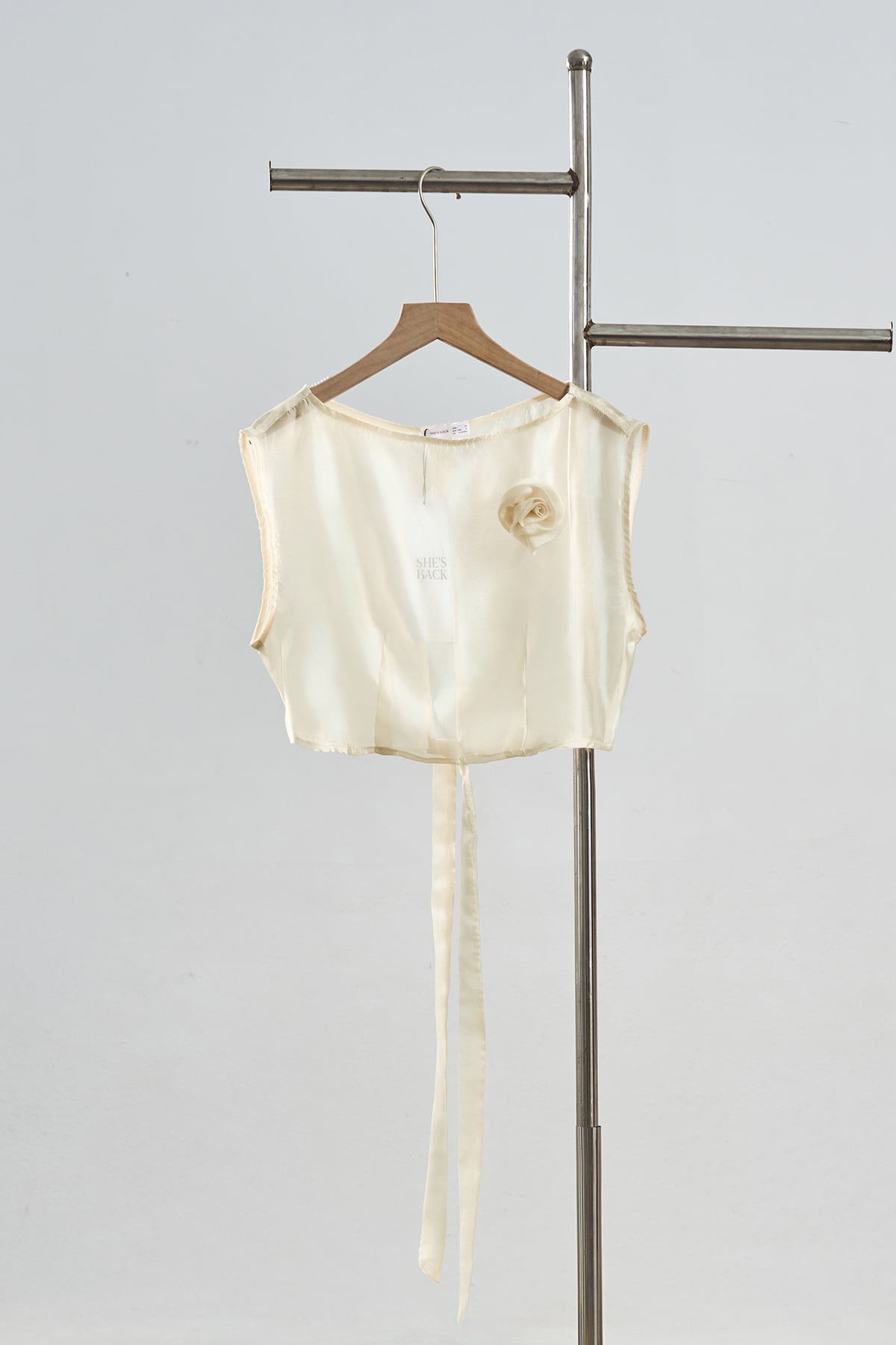 Mô tả sản phẩm : Áo croptop sát nách, đính hoa, xẻ sau, thắt nơ. GB S63F26Q001