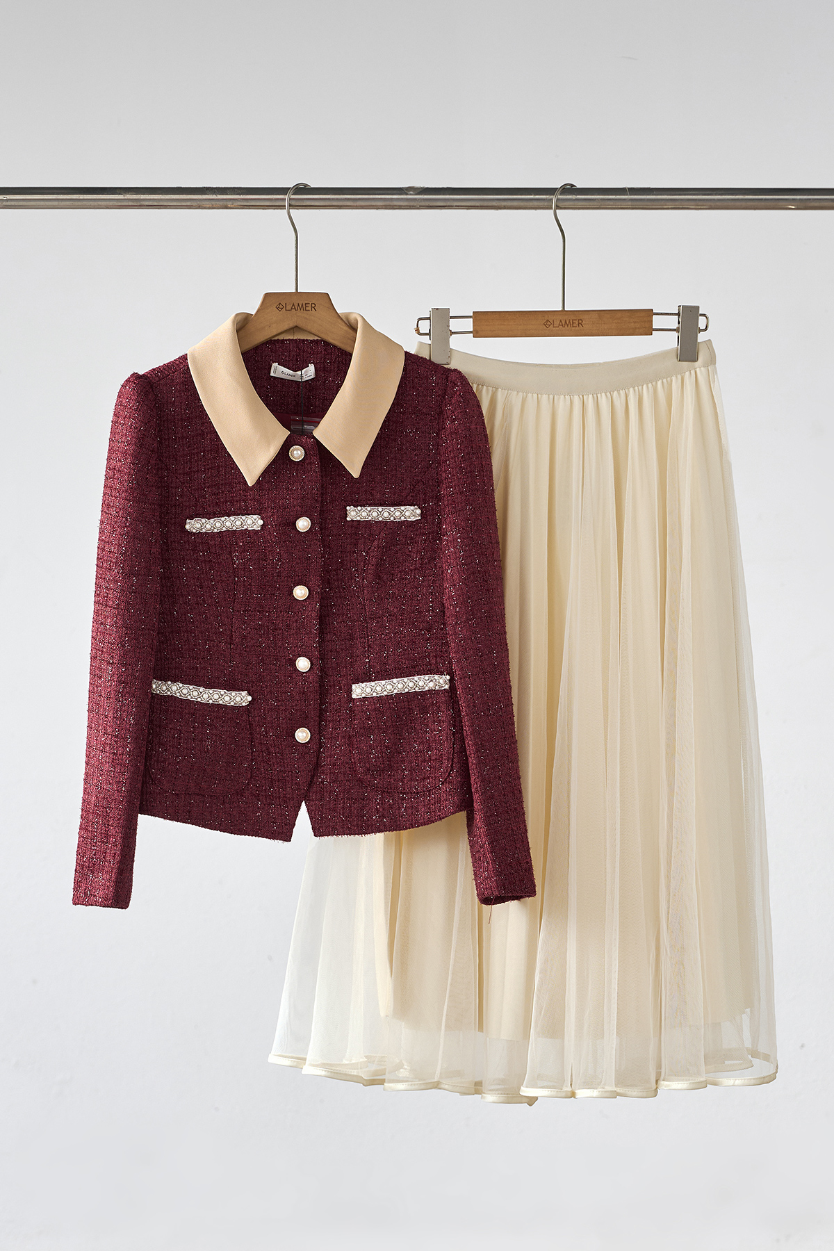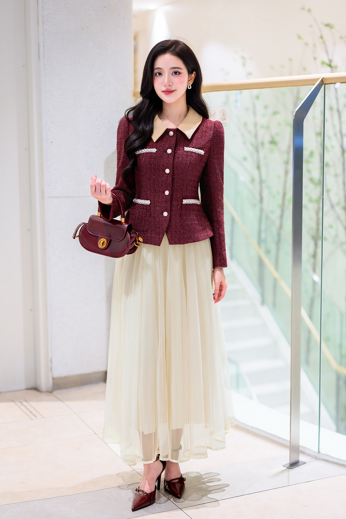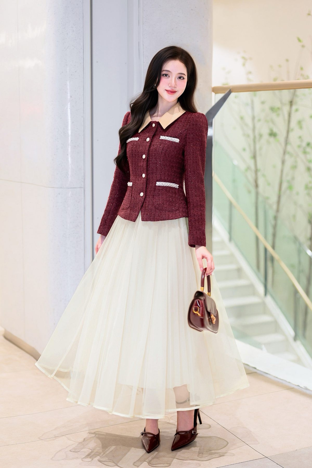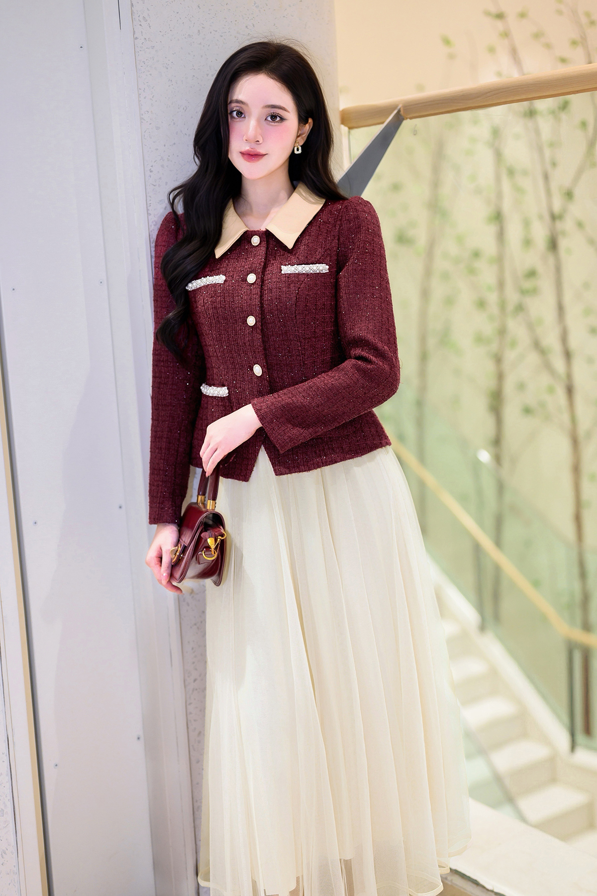 Áo dạ cổ phối; đính cườm - L65W25T016