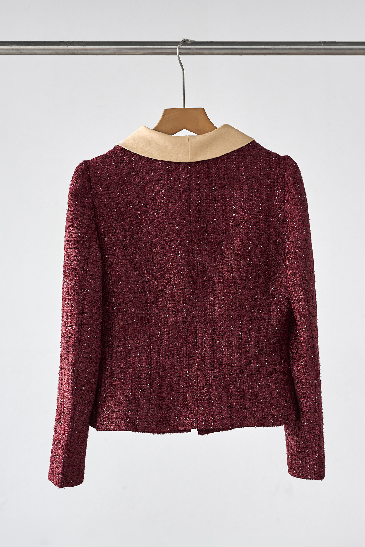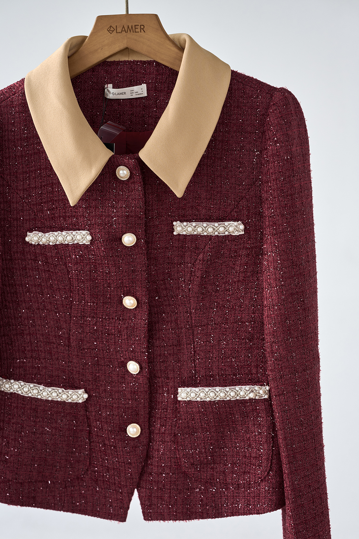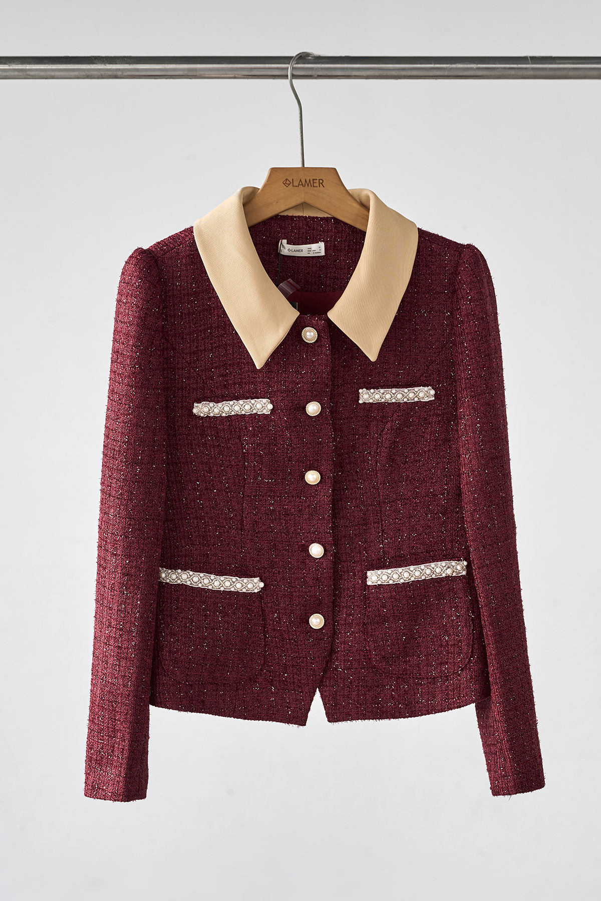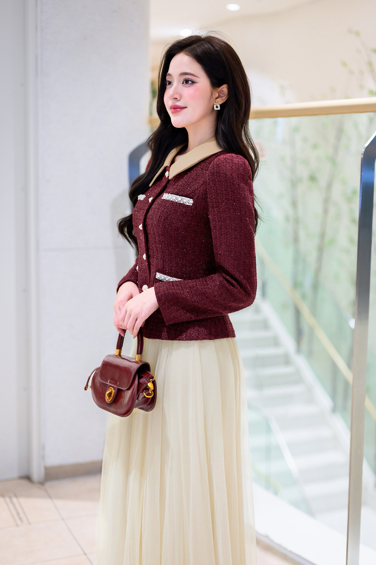 Áo dạ cổ phối; đính cườm - L65W25T016 KHUYẾN MÃI - ƯU ĐÃI