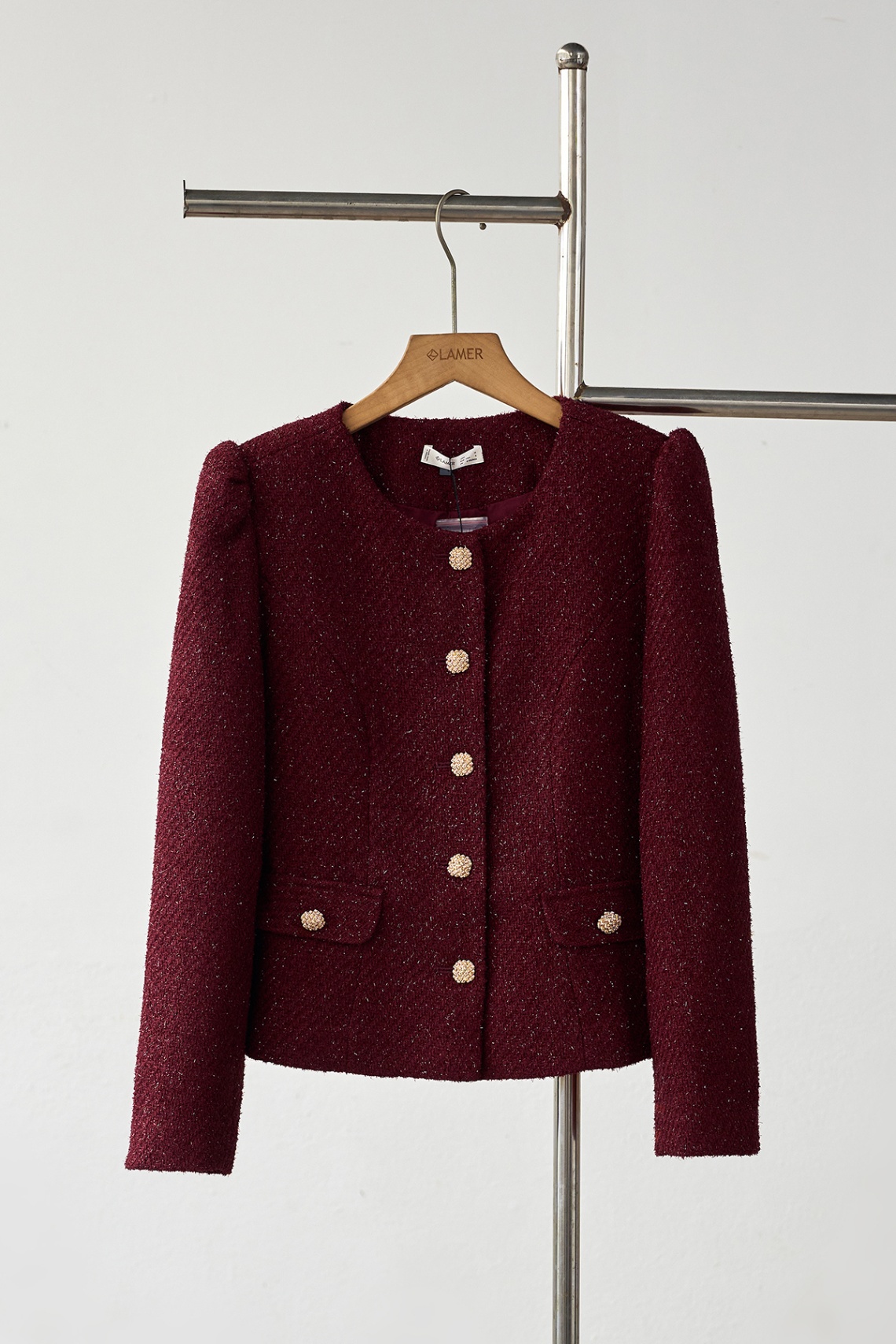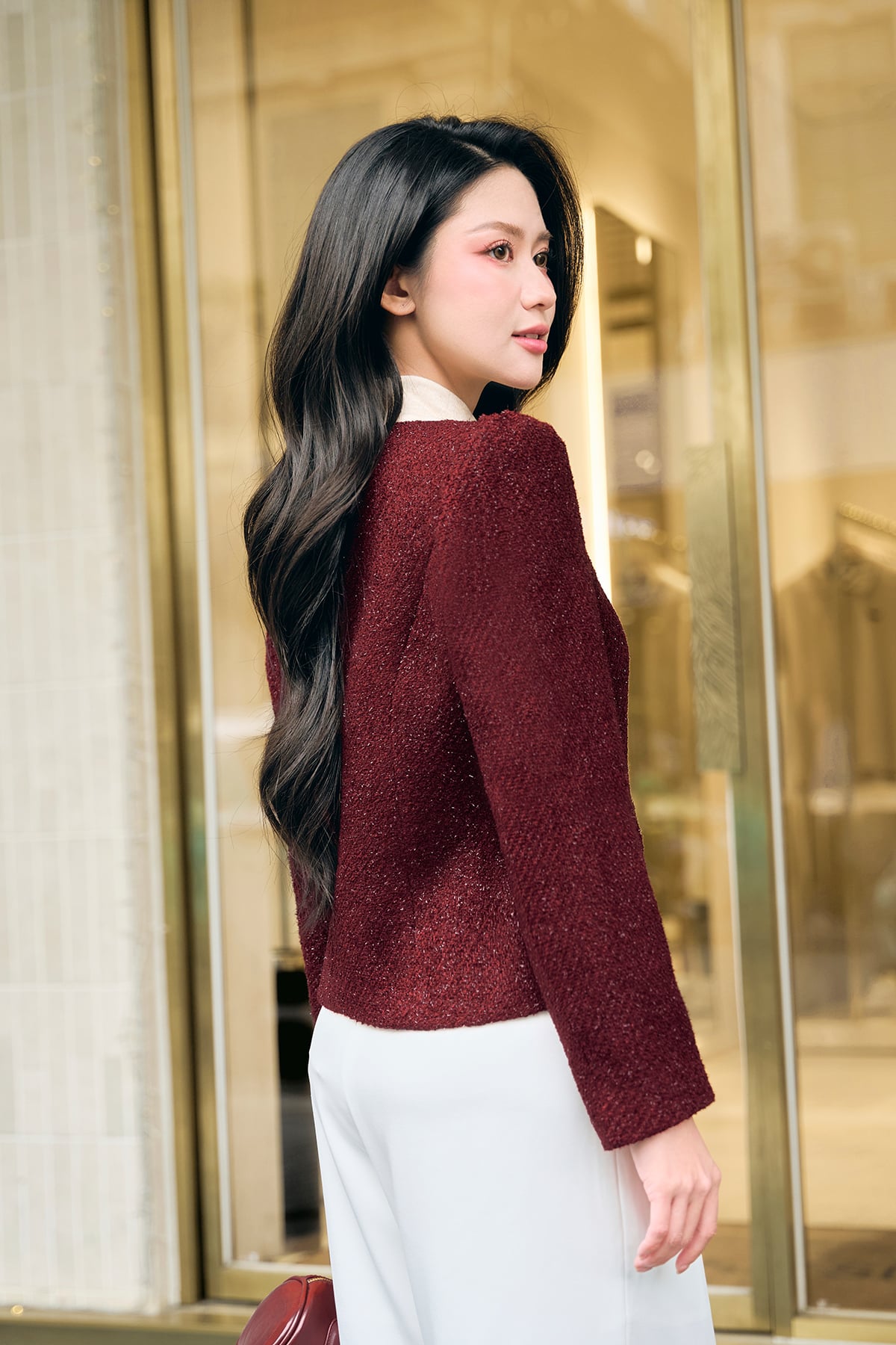 Mô tả sản phẩm : Áo dáng ôm, vai bồng, cúc kim loại.