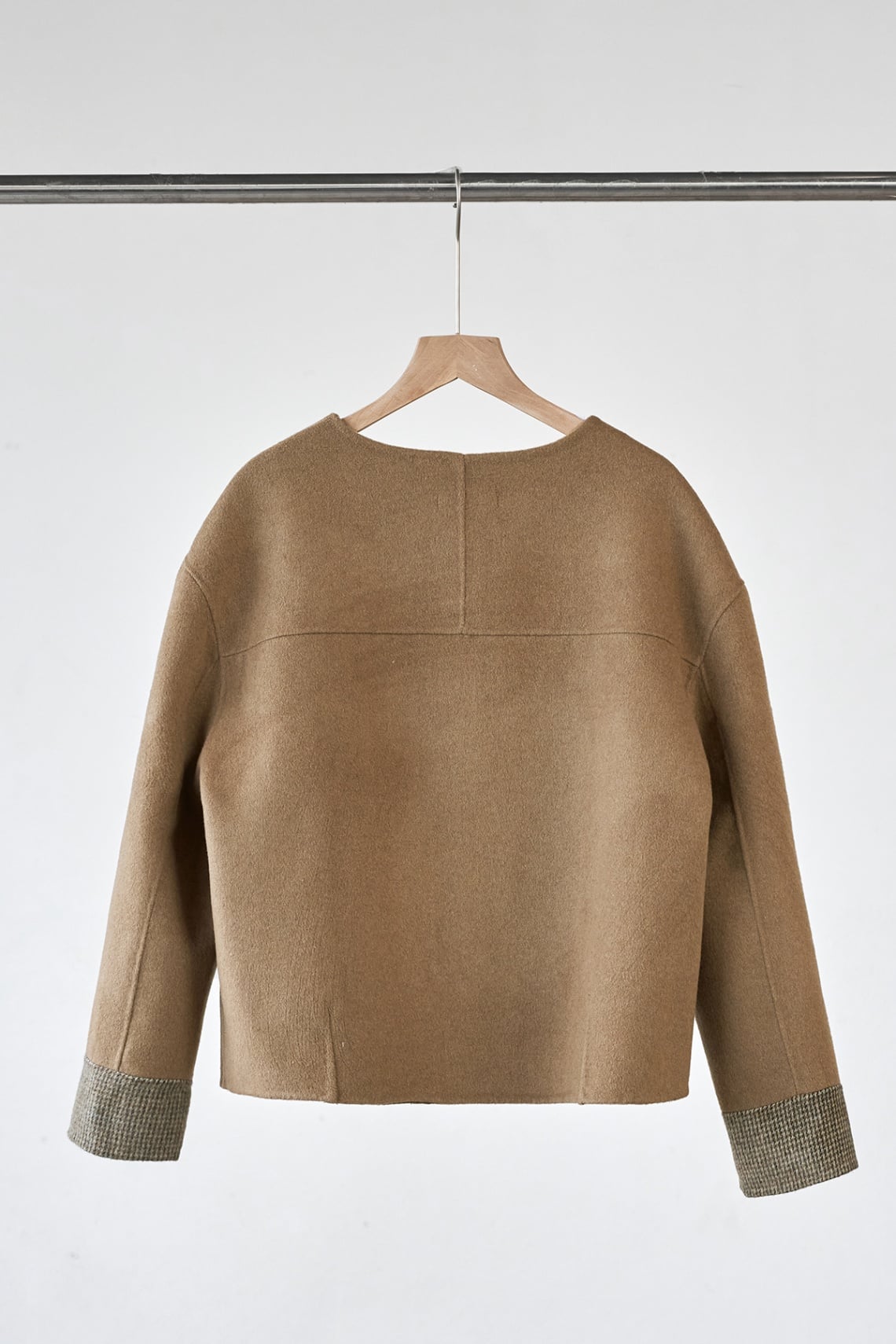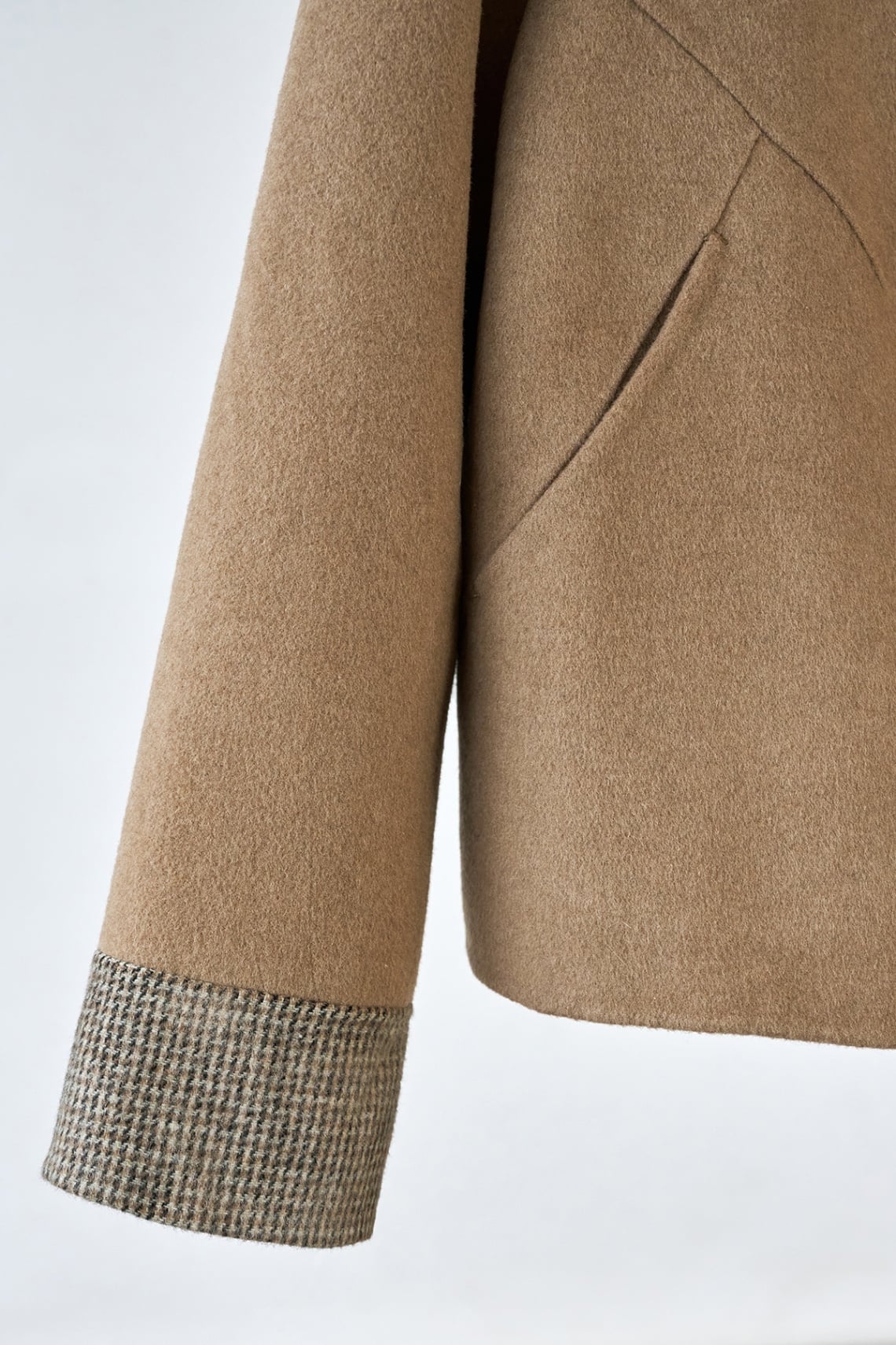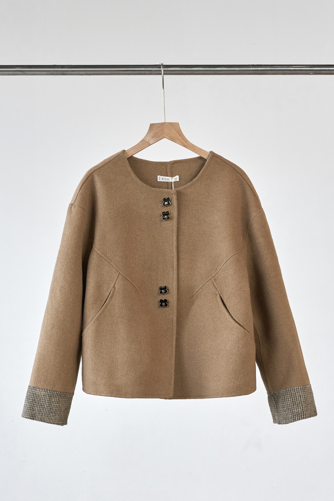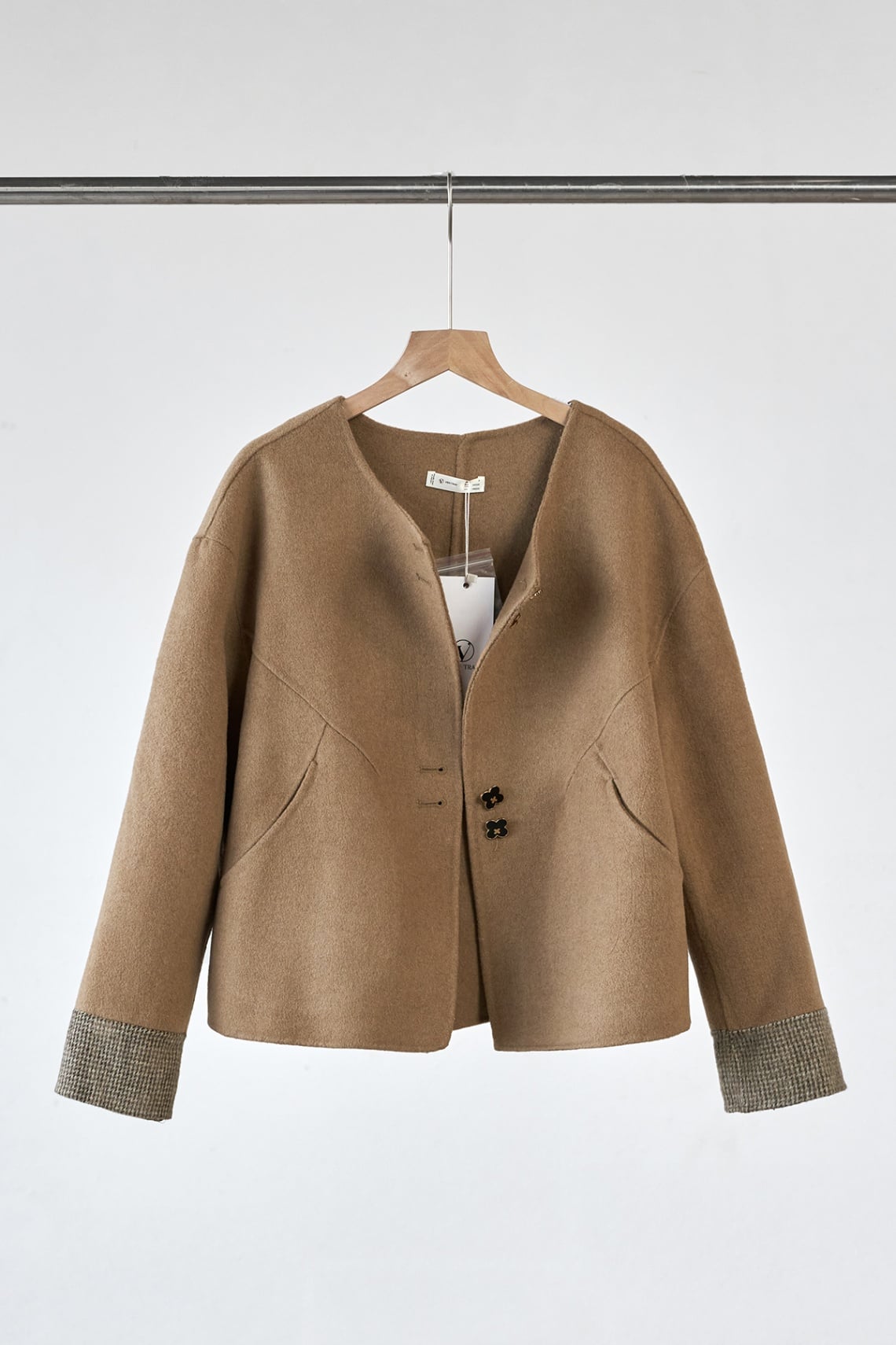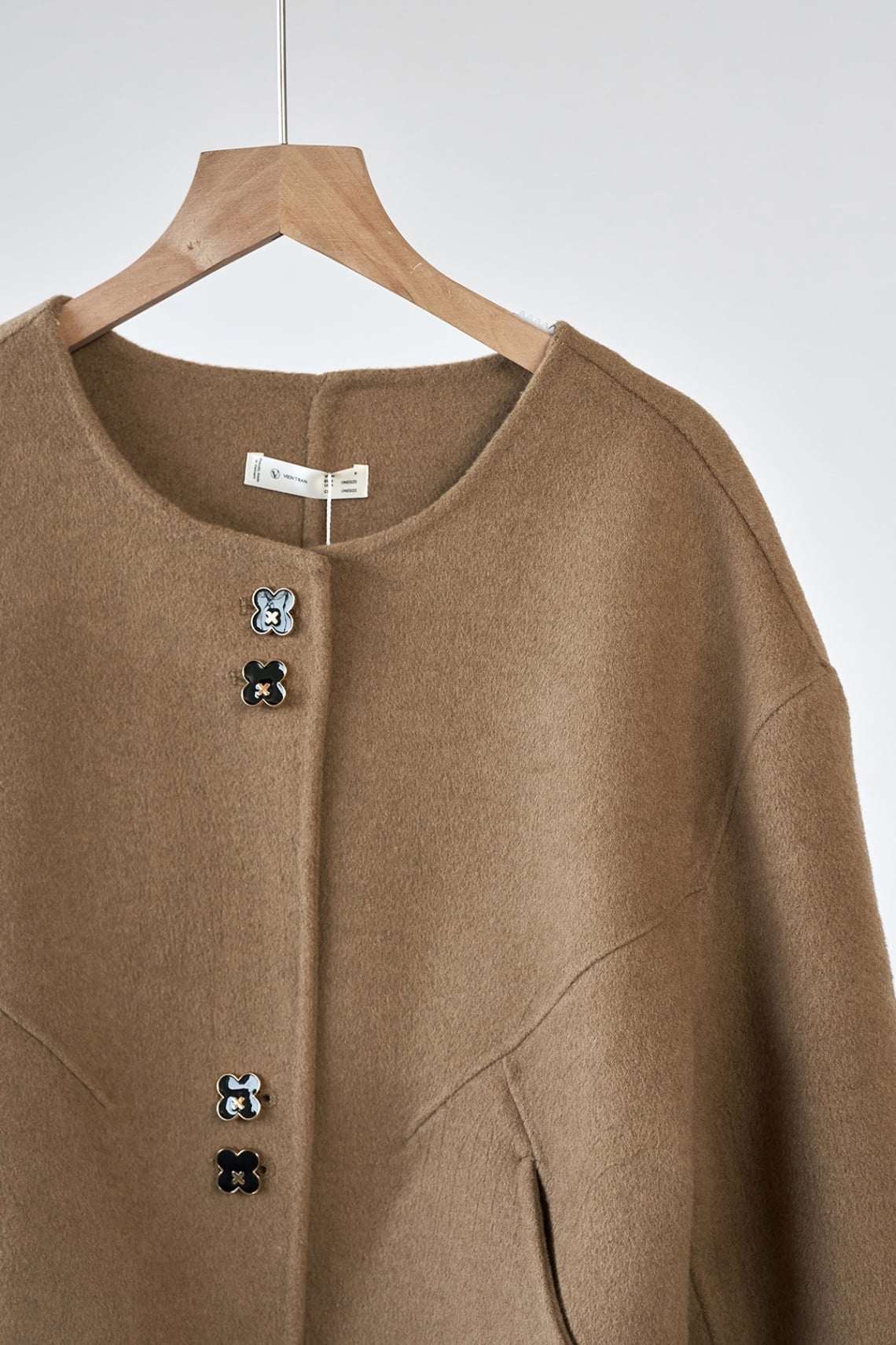 Áo dạ khâu tay cổ tròn; túi chéo: V65W25T021
