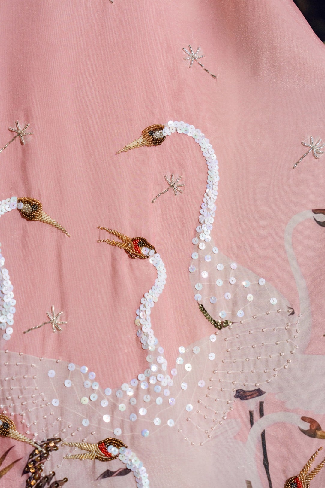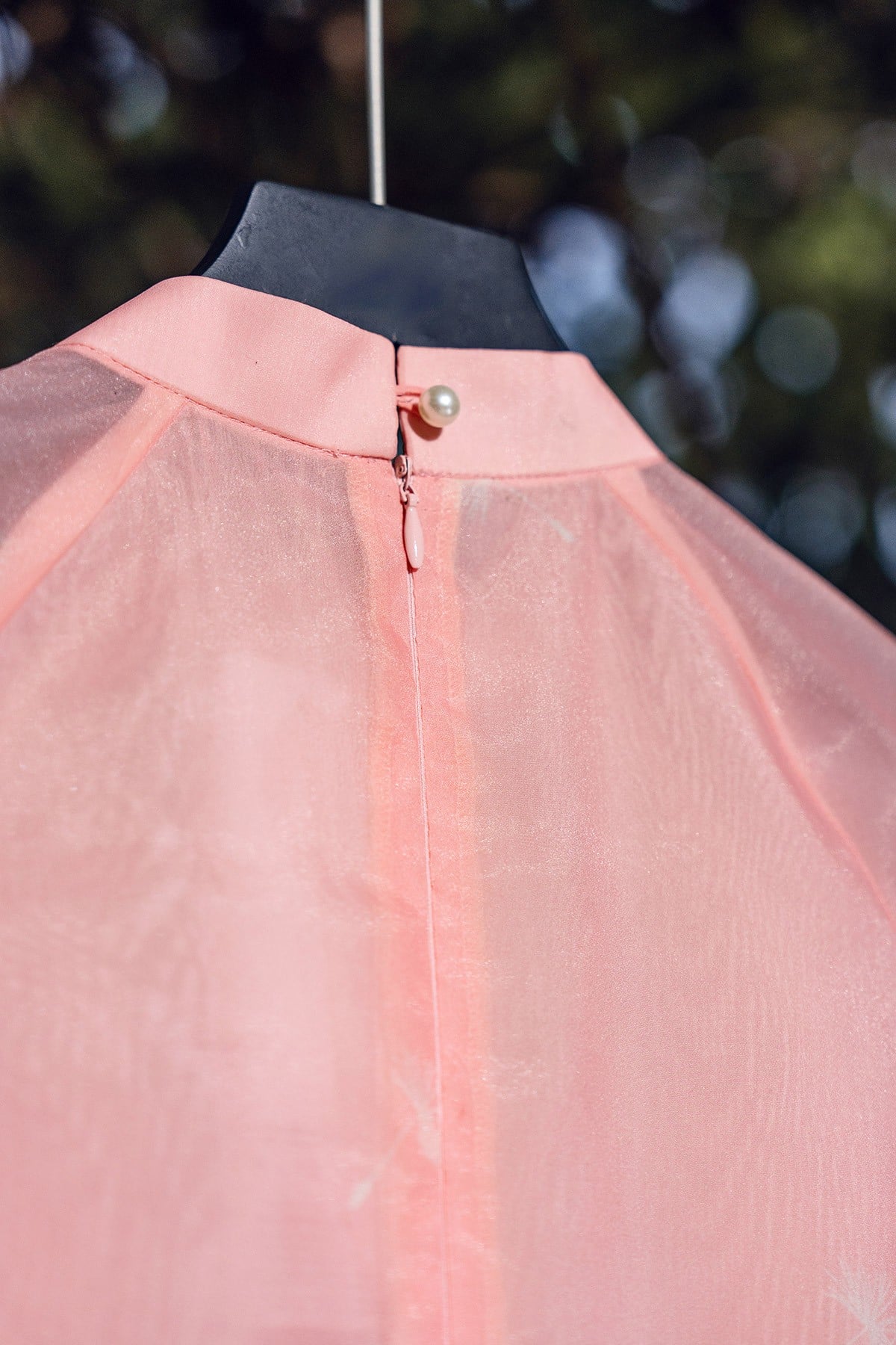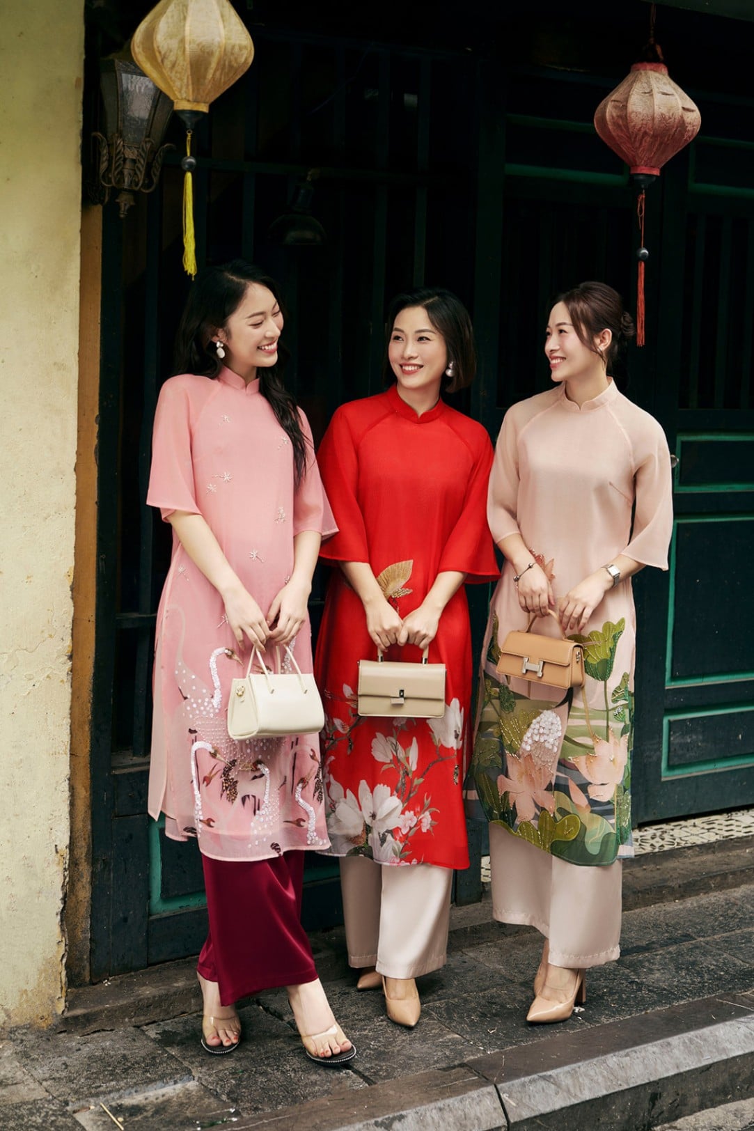 Chất liệu : 2 lớp, lớp ngoài tơ óng in và đính kết, lớp trong tơ