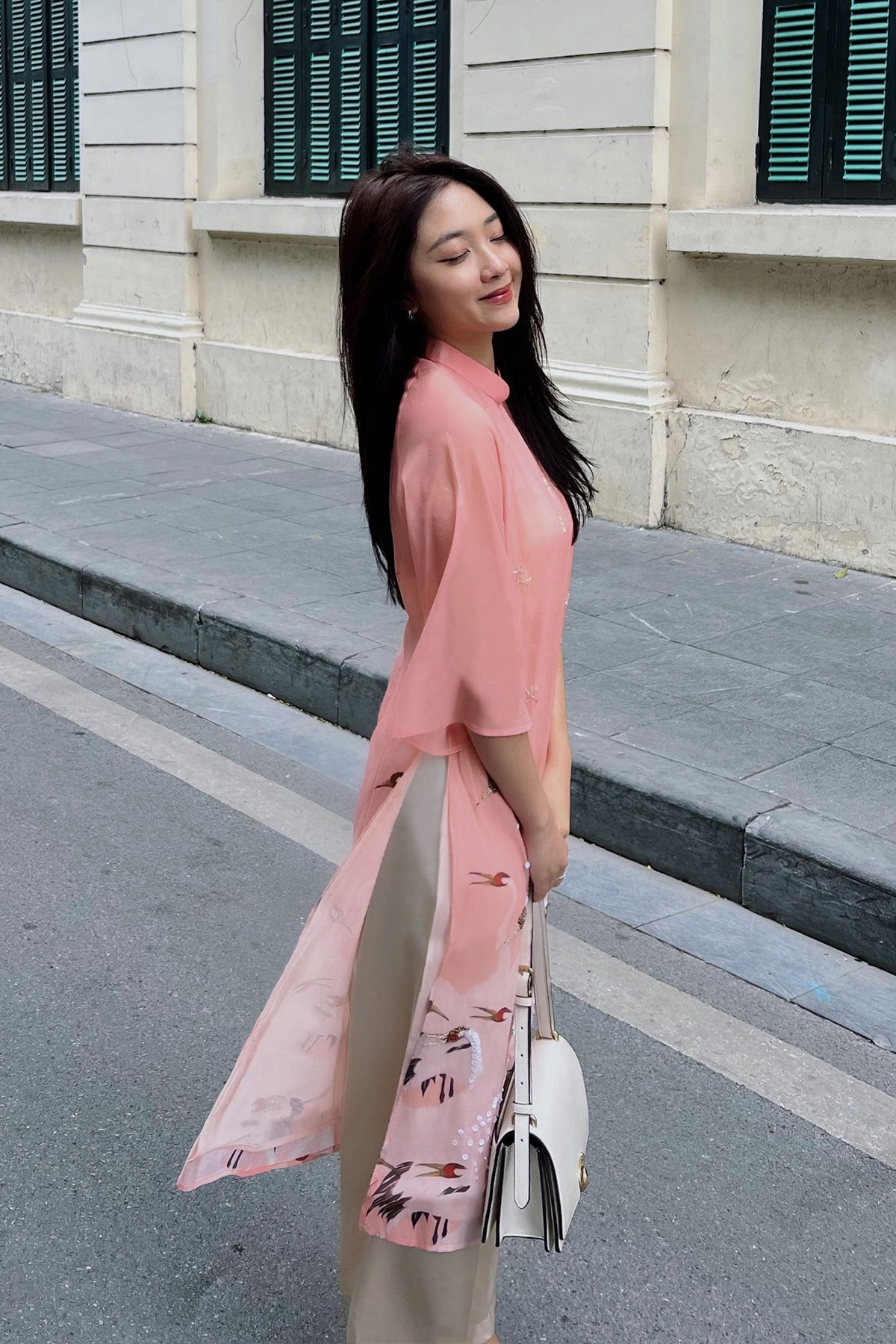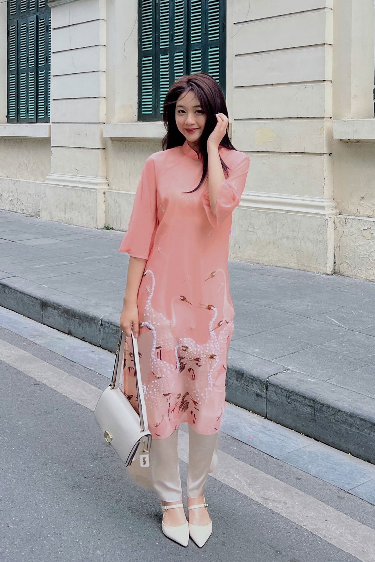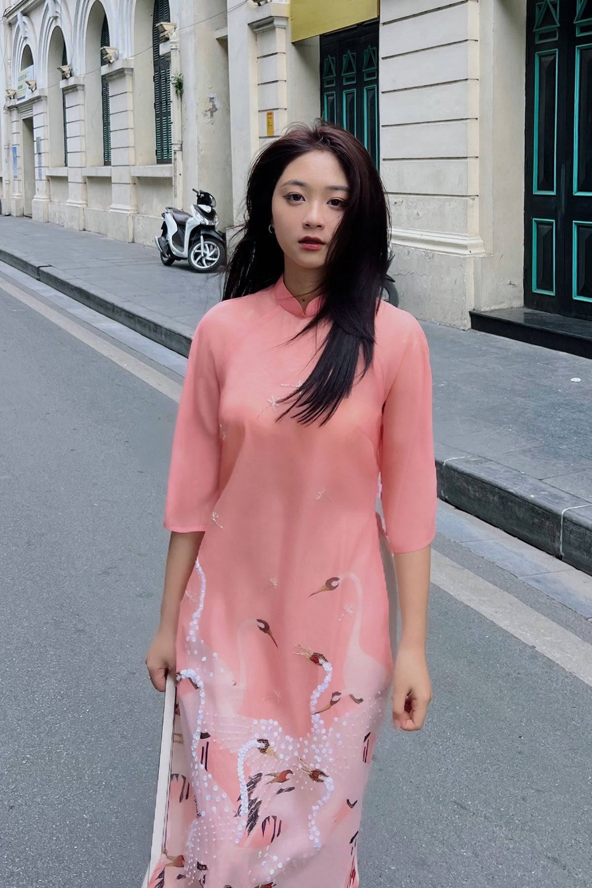 Áo dài cách tân hồng hạc : S61A23Q005-F2218