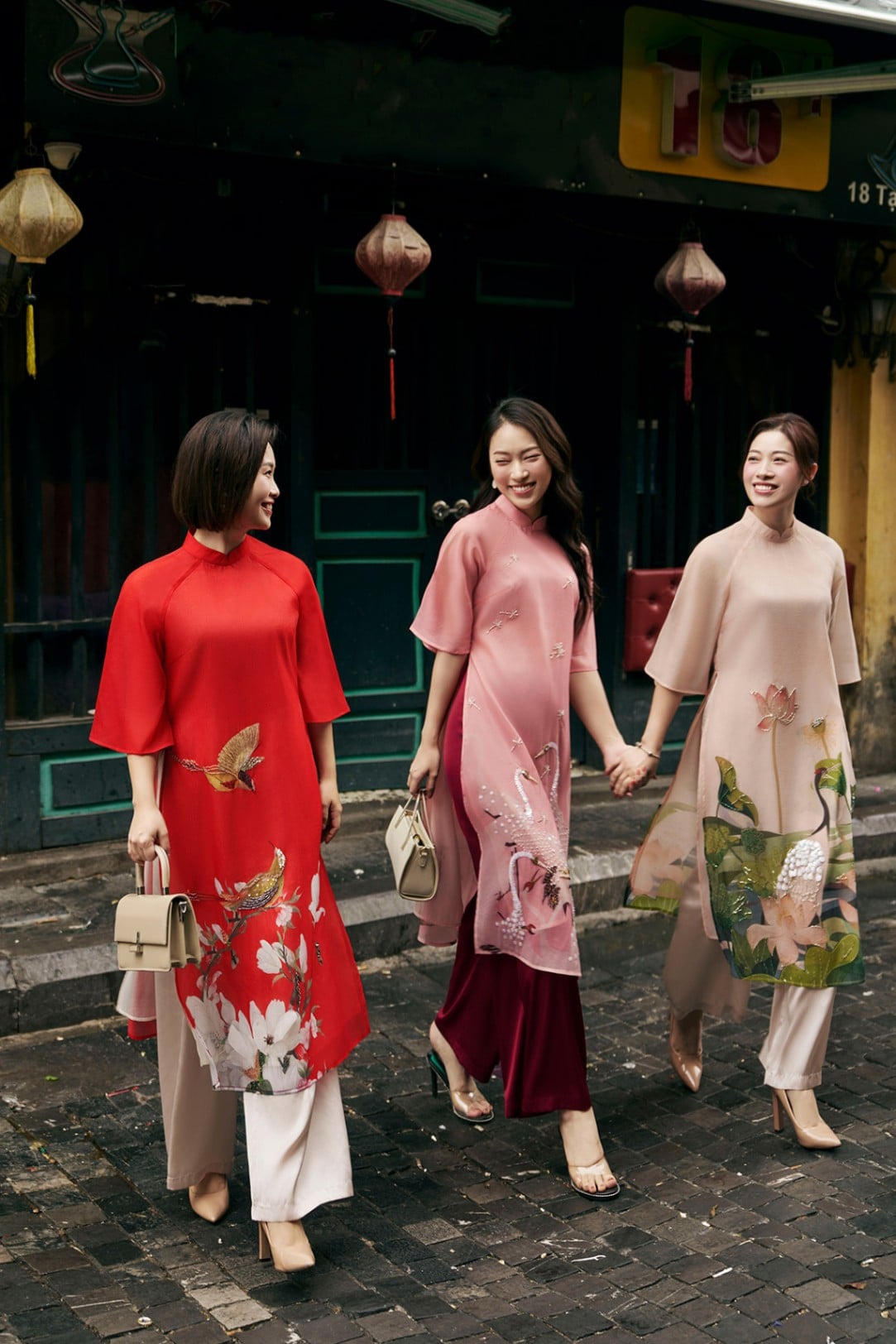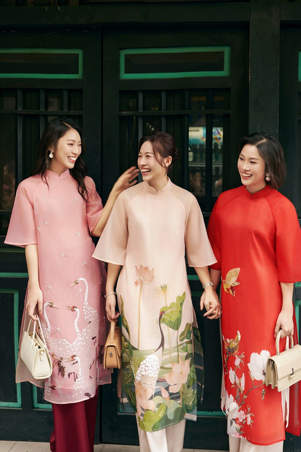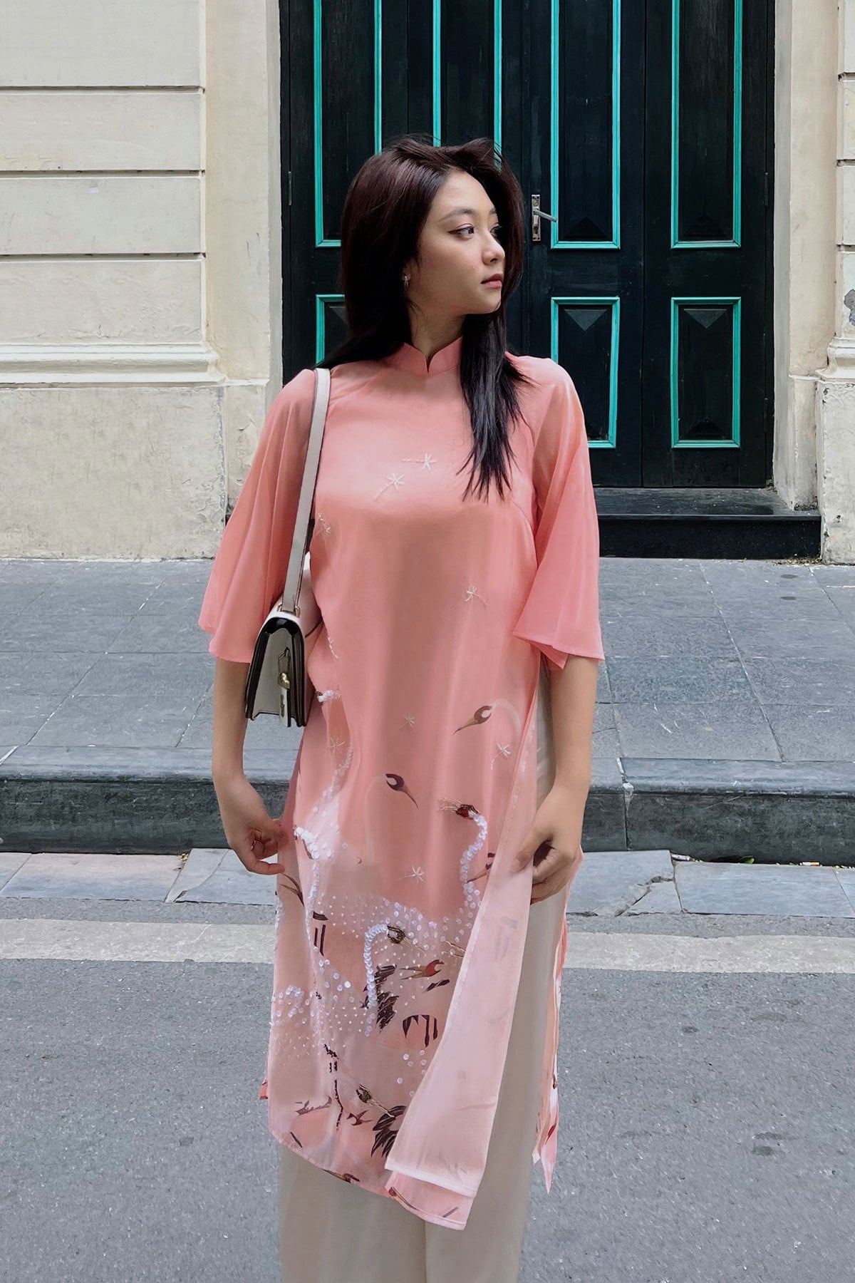 Mô tả sản phẩm : Áo dài cách tân, dáng suông vừa phải, tay lỡ, 2 tà, kết hợp in chuyển nhiêt, đính kết thủ công
