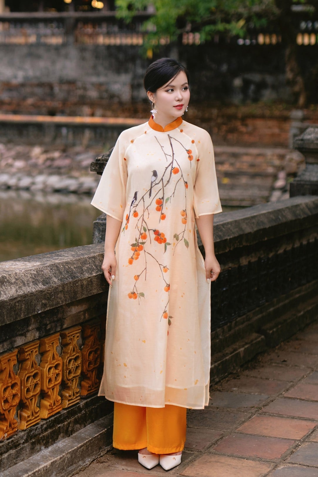 Áo dài cách tân in quả : O61A24Q028-F1826