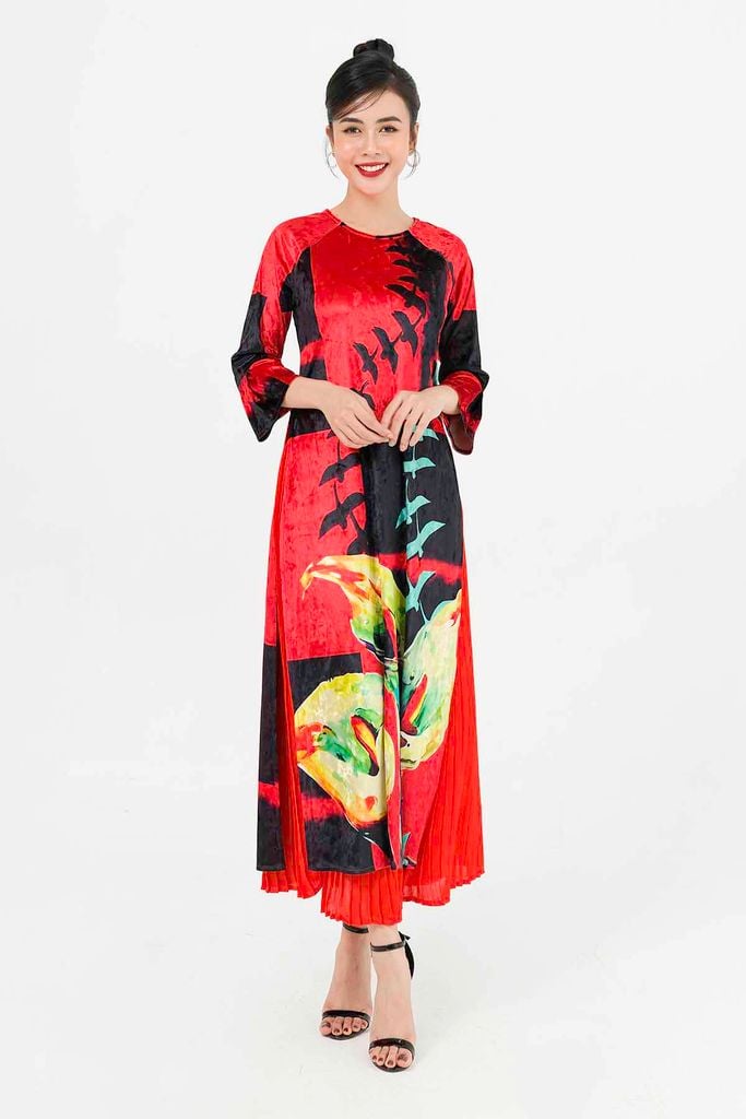 Áo Dài Cách Tân Nhung Hình  - L61A20Q053 KHUYẾN MÃI - ƯU ĐÃI