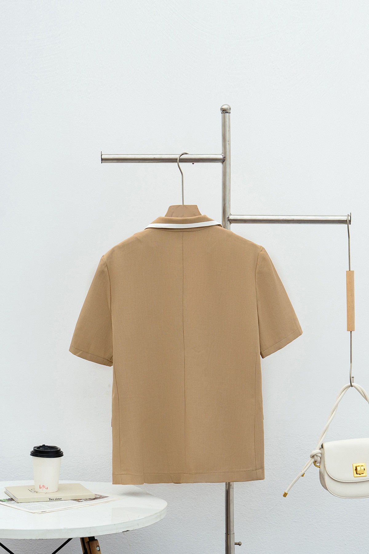 Mô tả sản phẩm : Áo đờ mi cổ 2 ve, phối viền, dáng suông cài cúc, tay ngắn