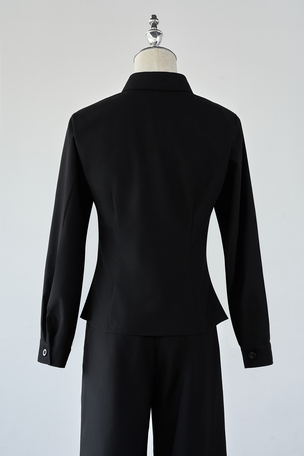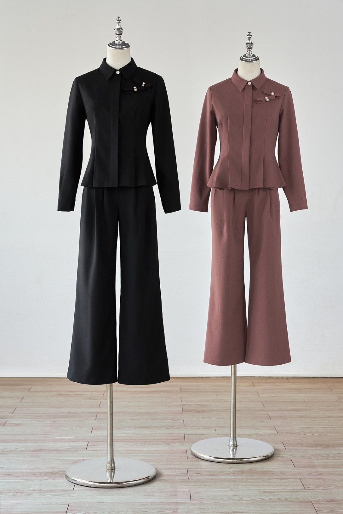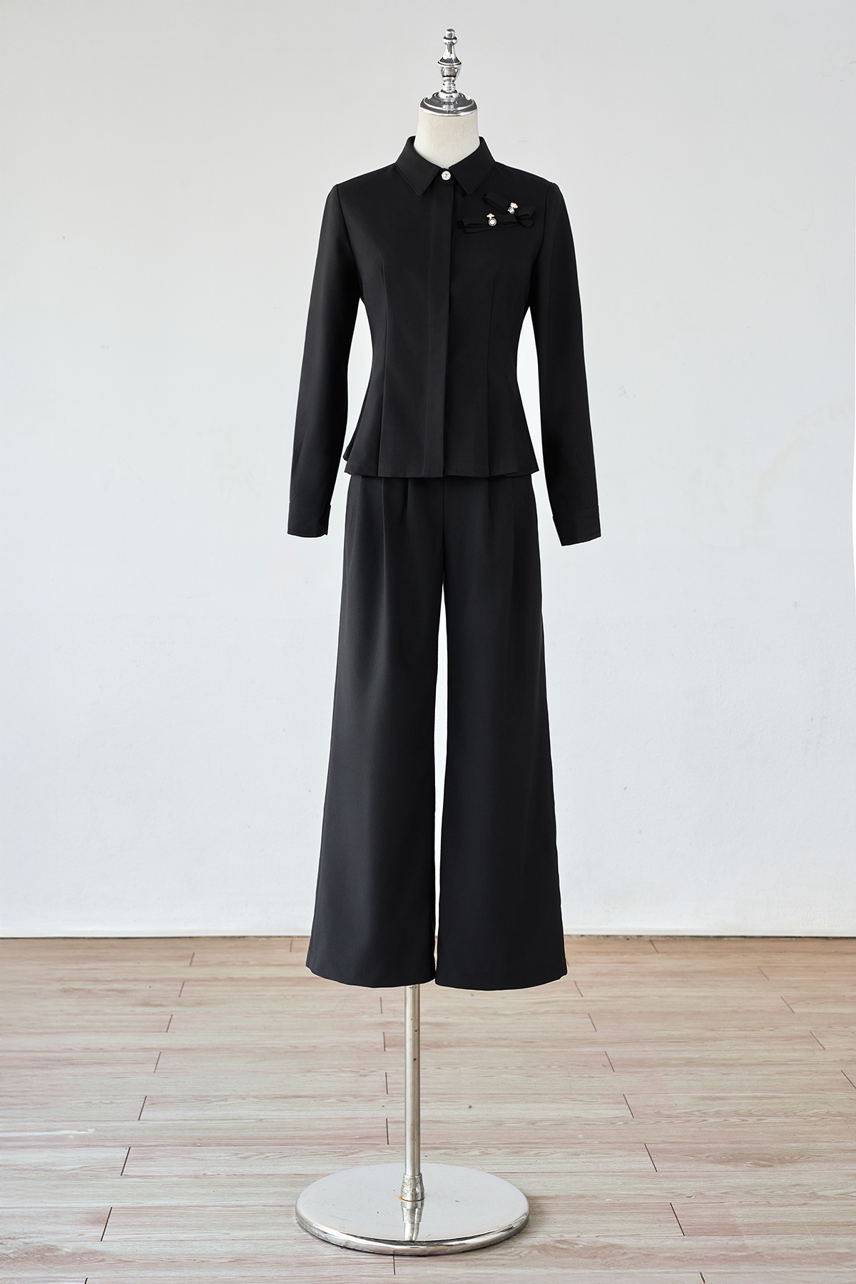 Mô tả sản phẩm : Áo dáng ôm, cổ đức, nẹp dấu khuy, xếp ly eo, nơ đính ngực. GB L64W25Q010