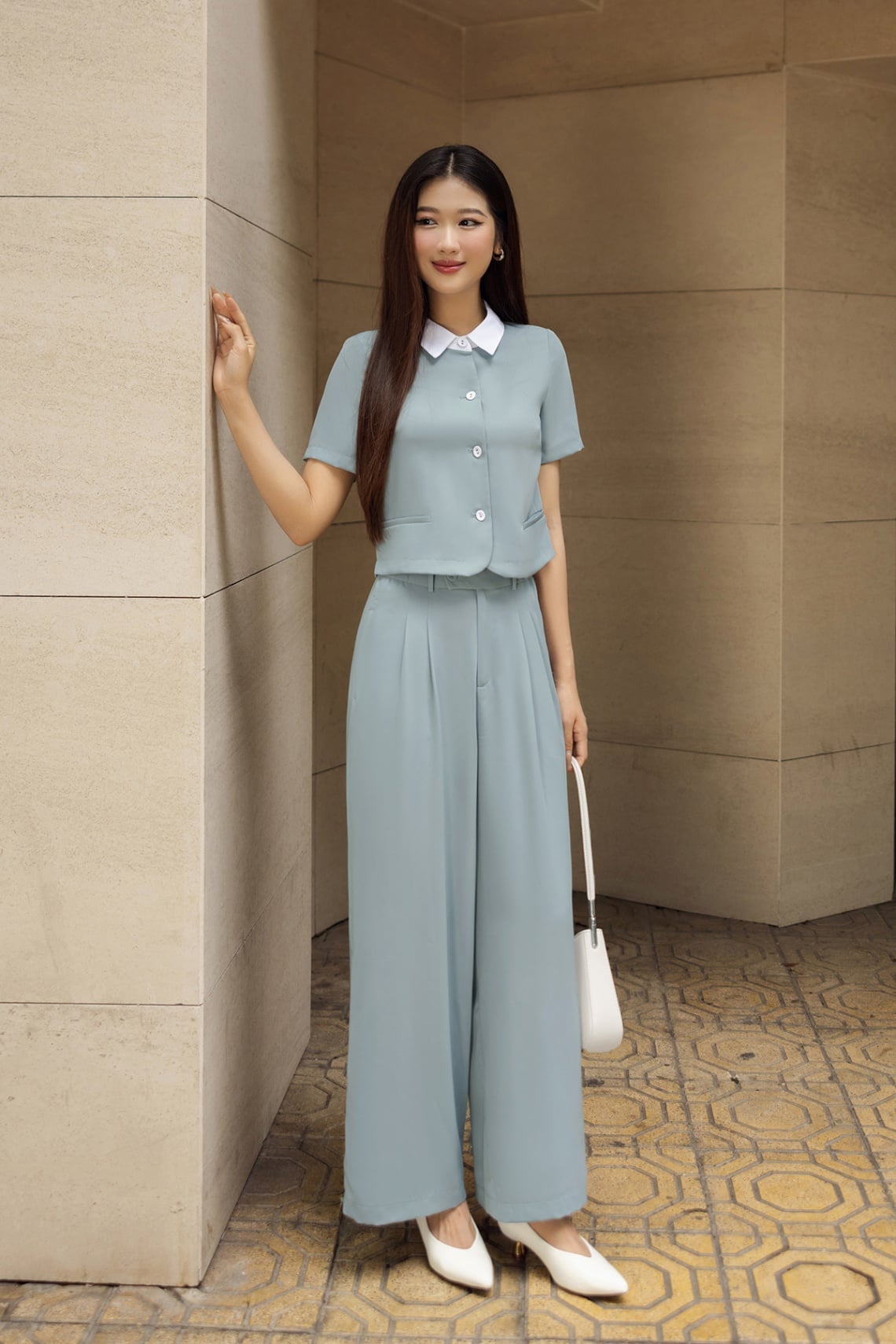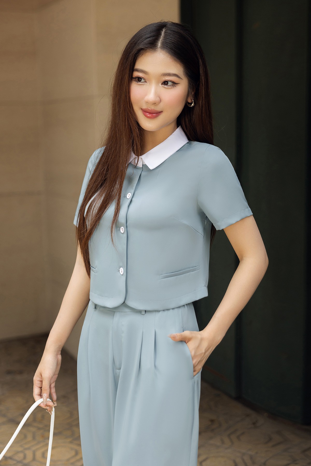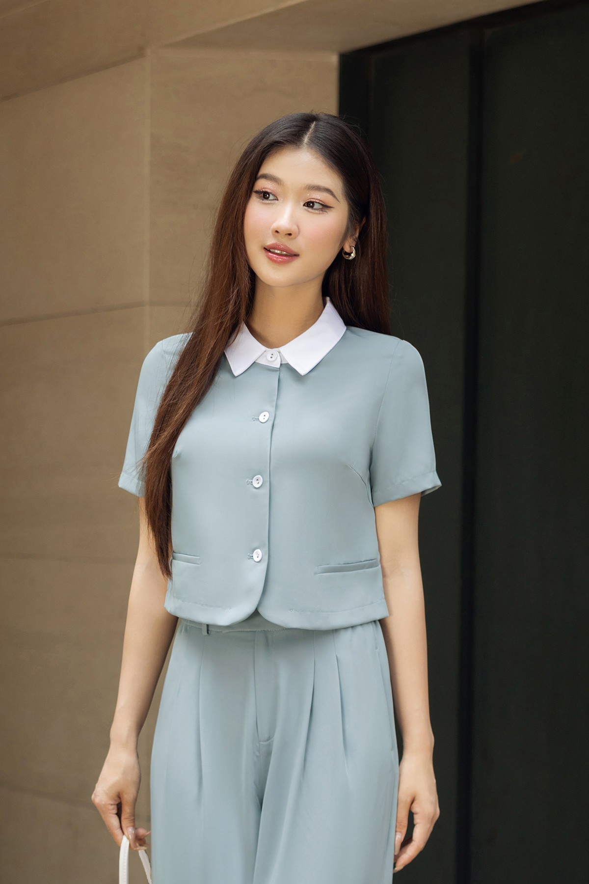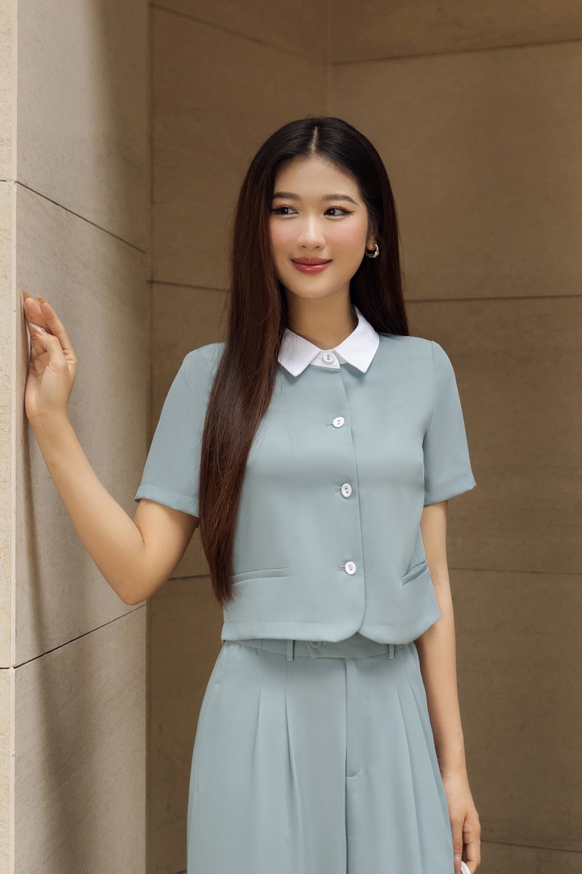 Áo đờ mi vạt tròn phối cổ-Vienne Tran-GBH004 : O65D24H011-S3302