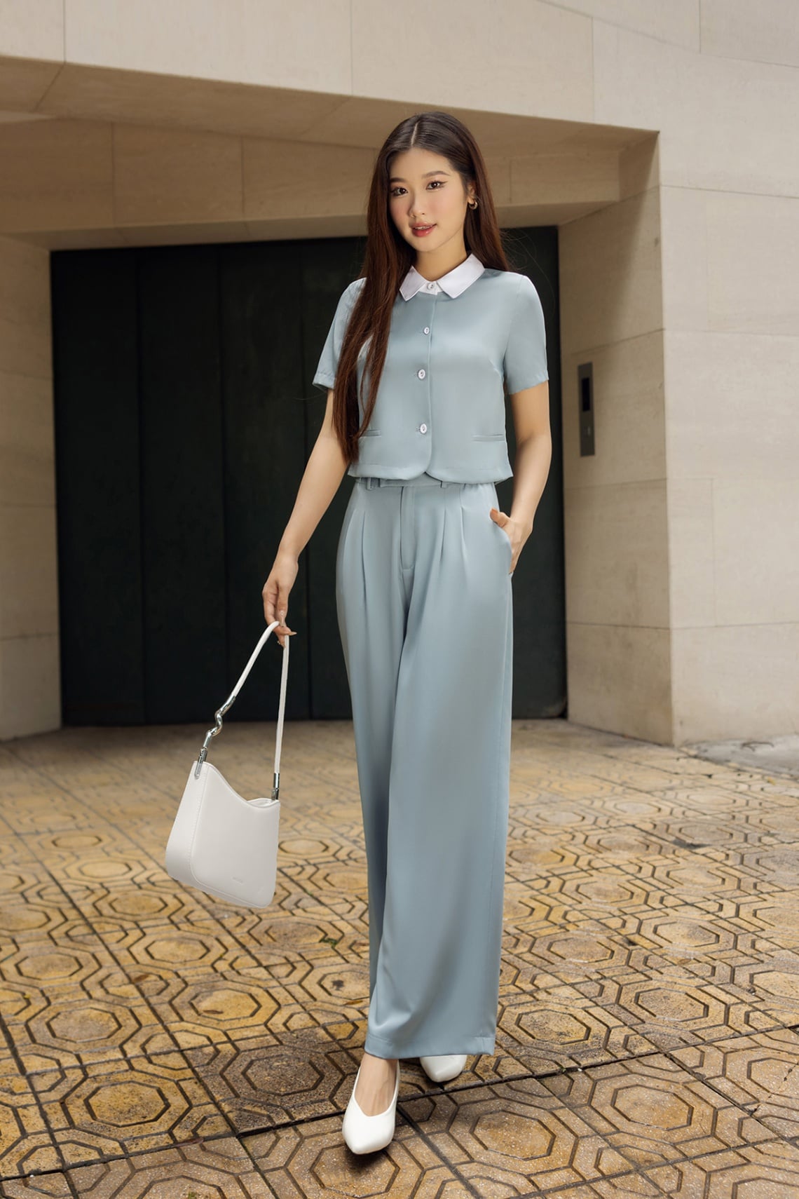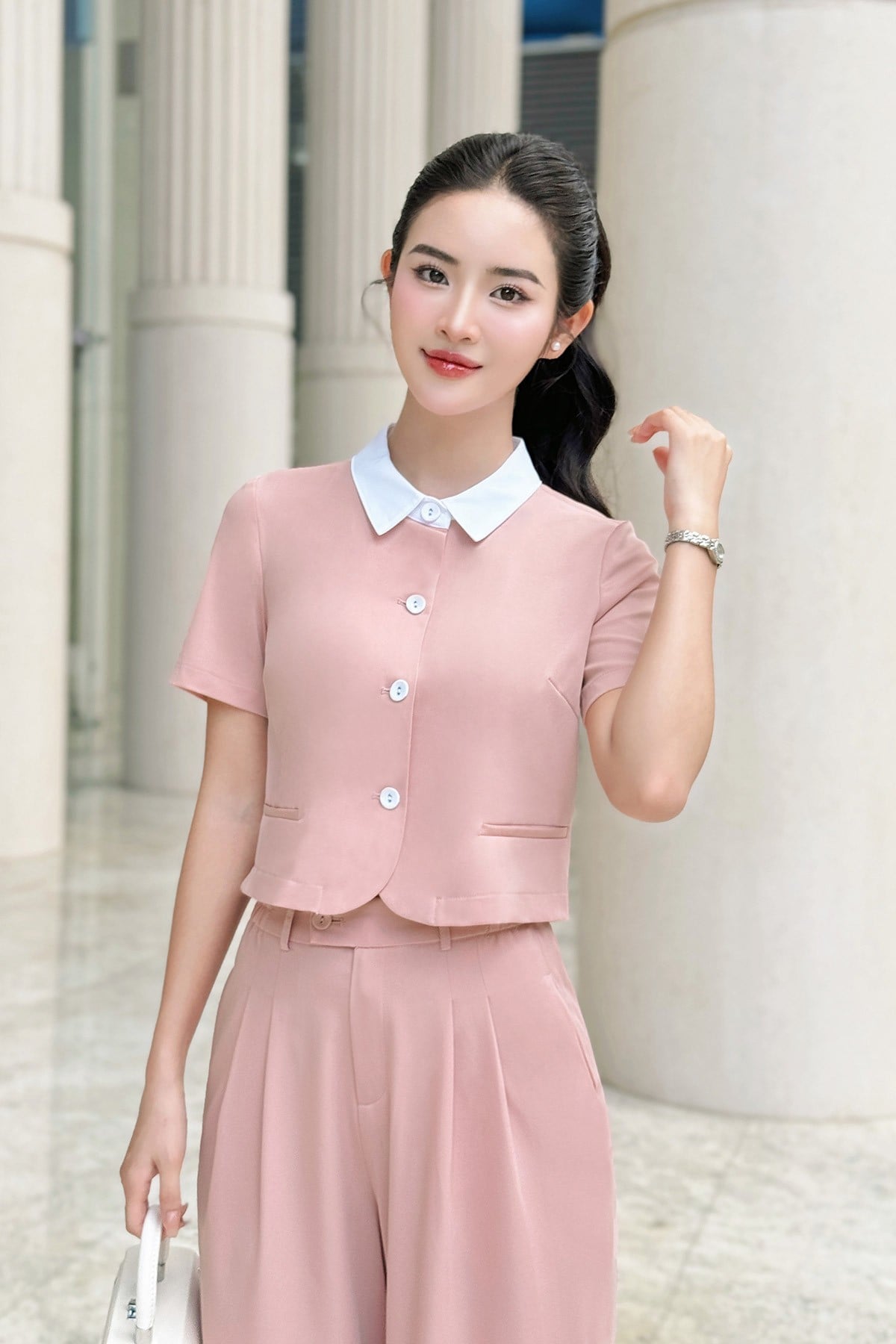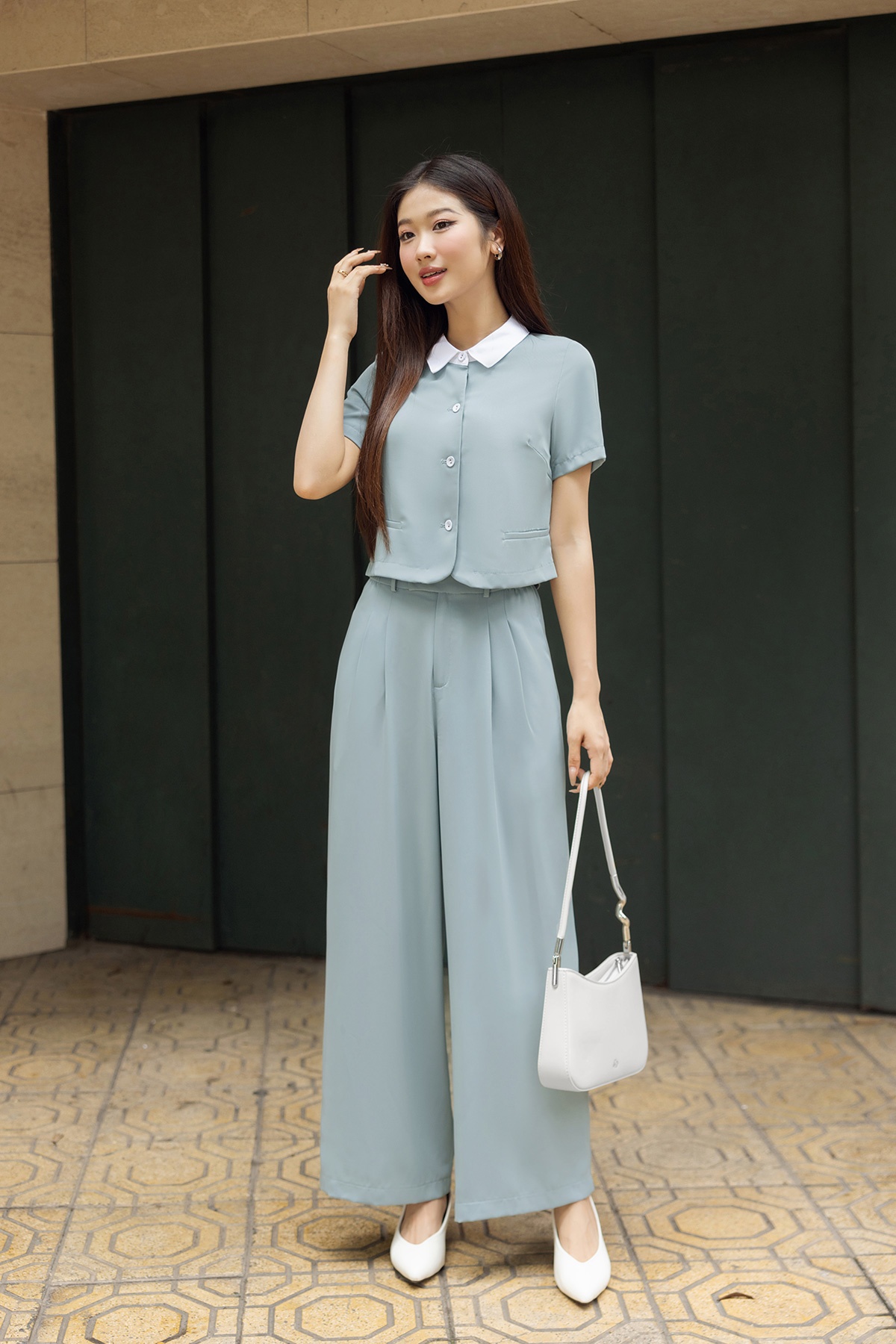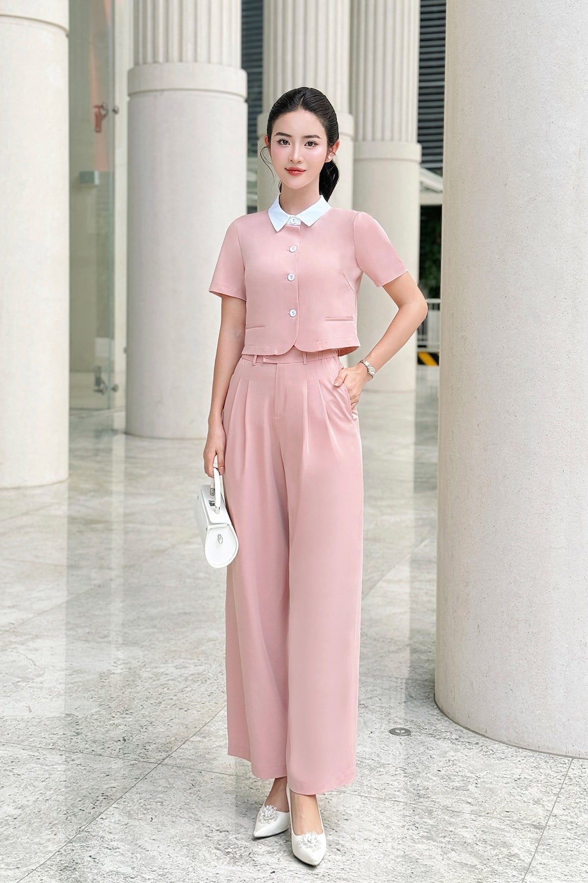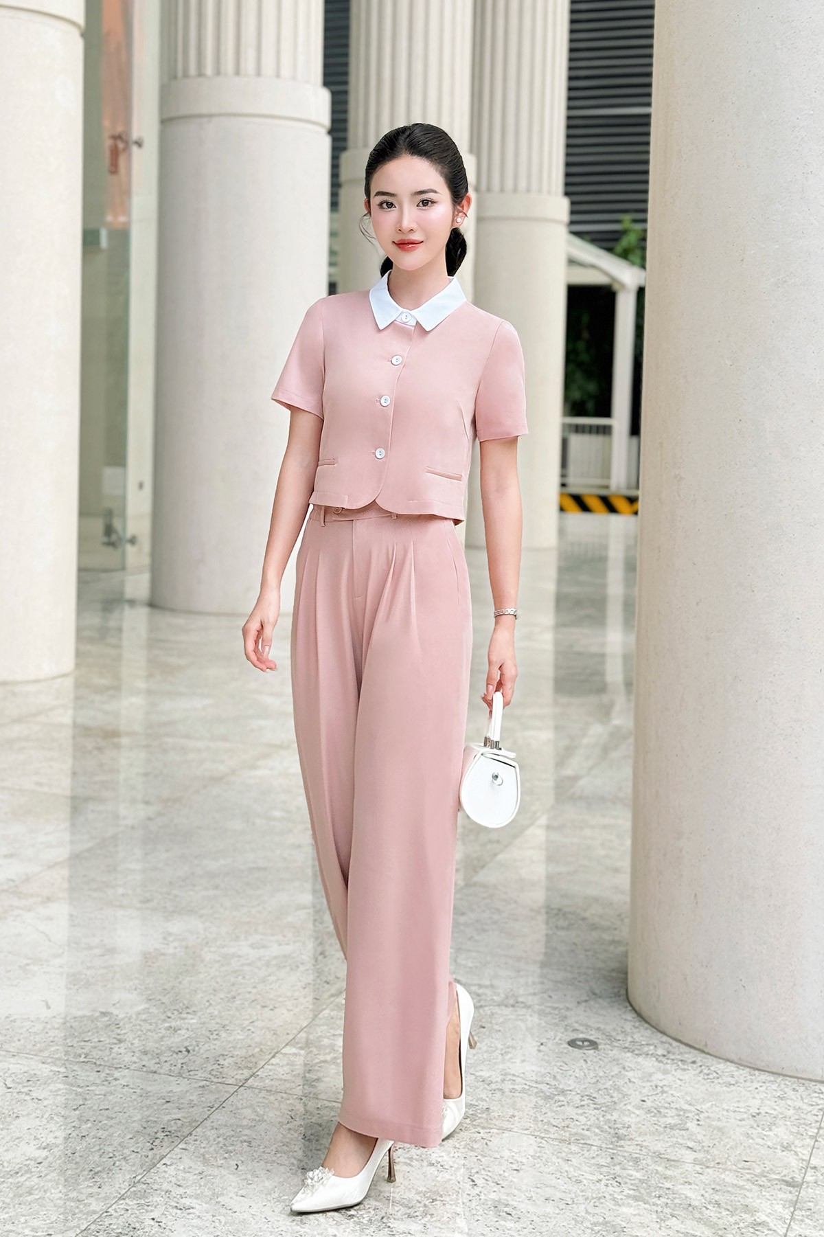 Áo đờ mi vạt tròn phối cổ-Vienne Tran-GBH004 : O65D24H011-S3302