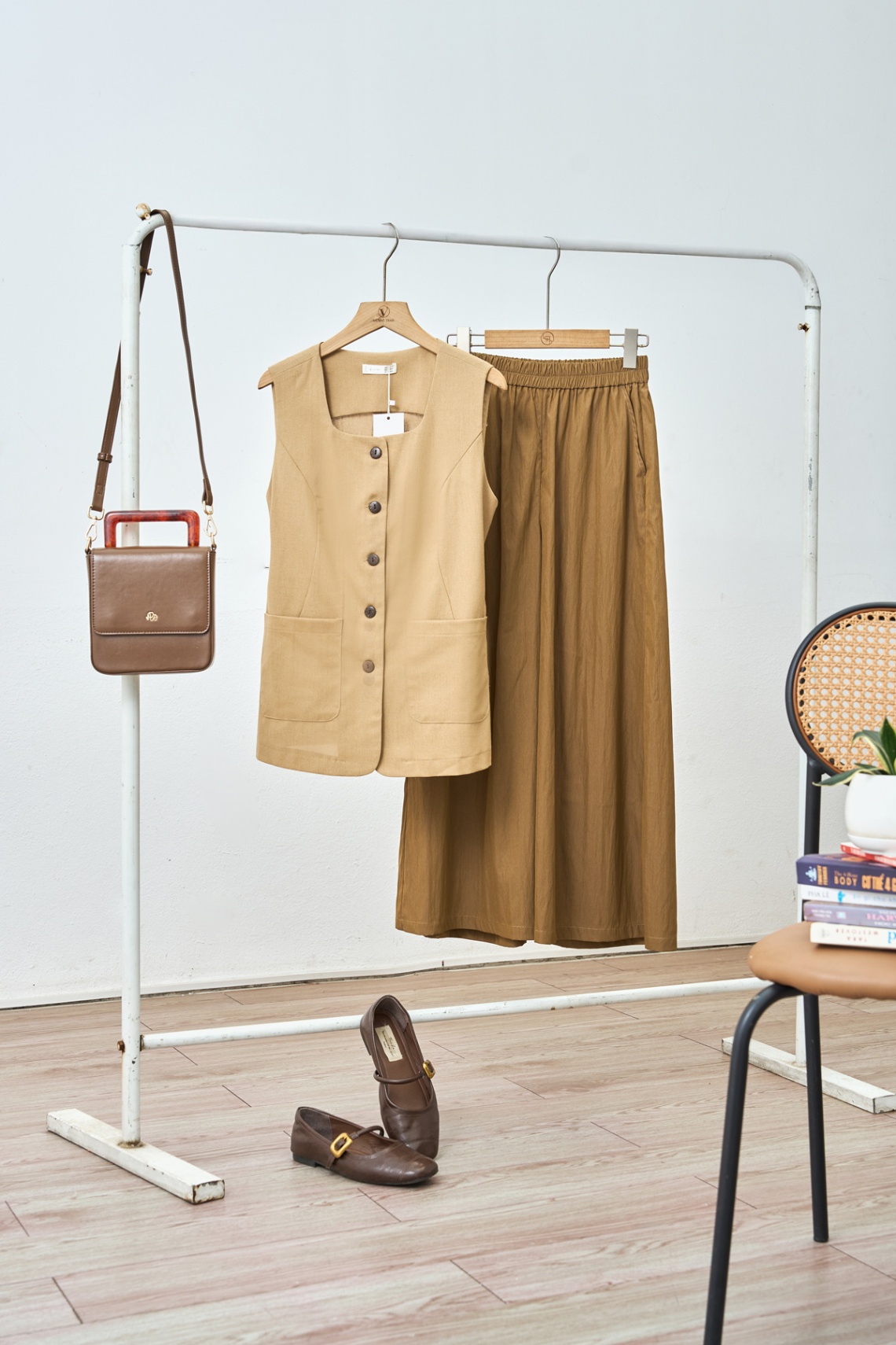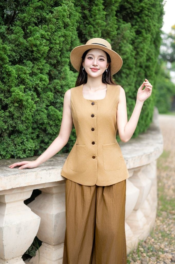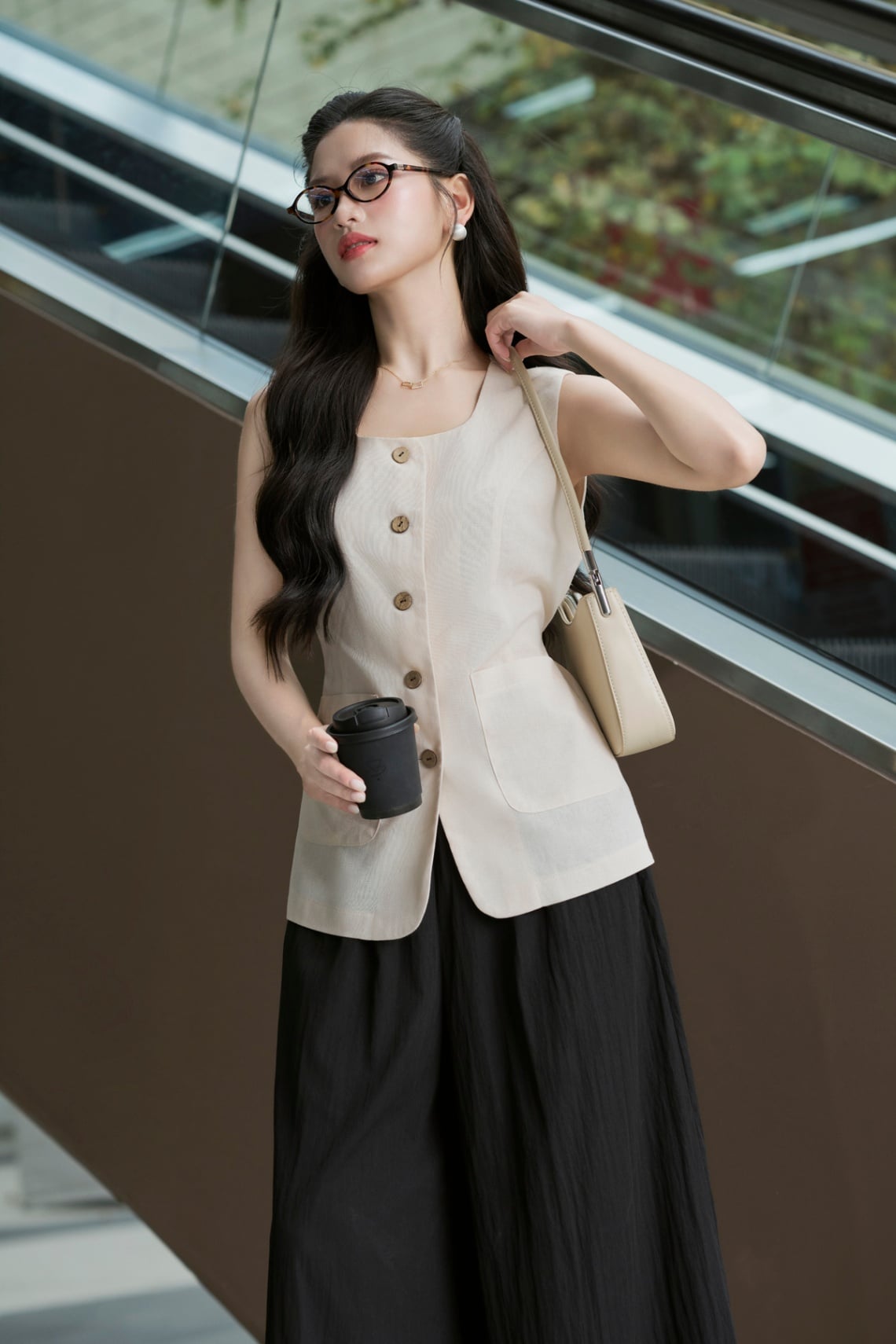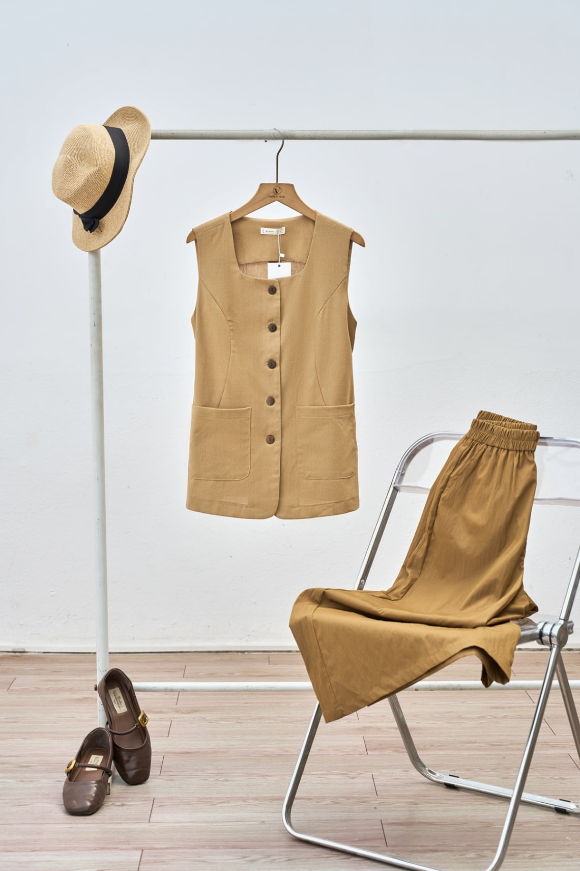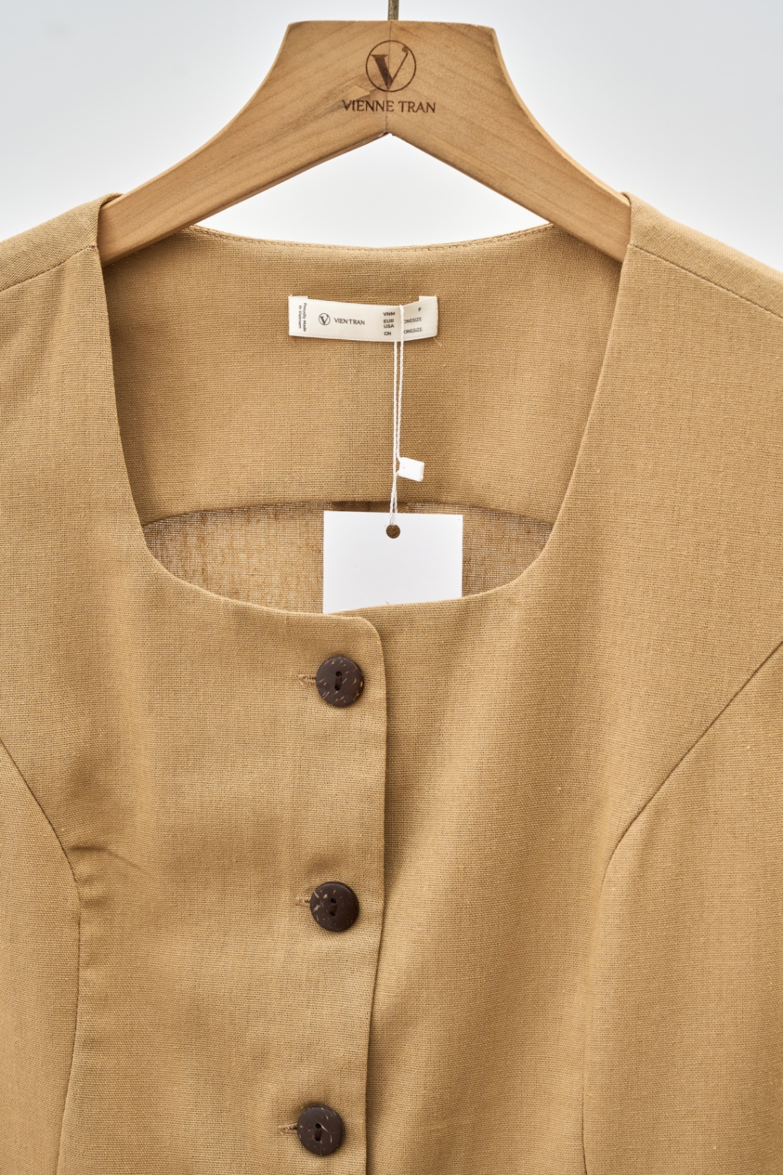 Áo Gile cổ vuông túi ốp-Vienne Tran-GBQ004 : O65G25Q007