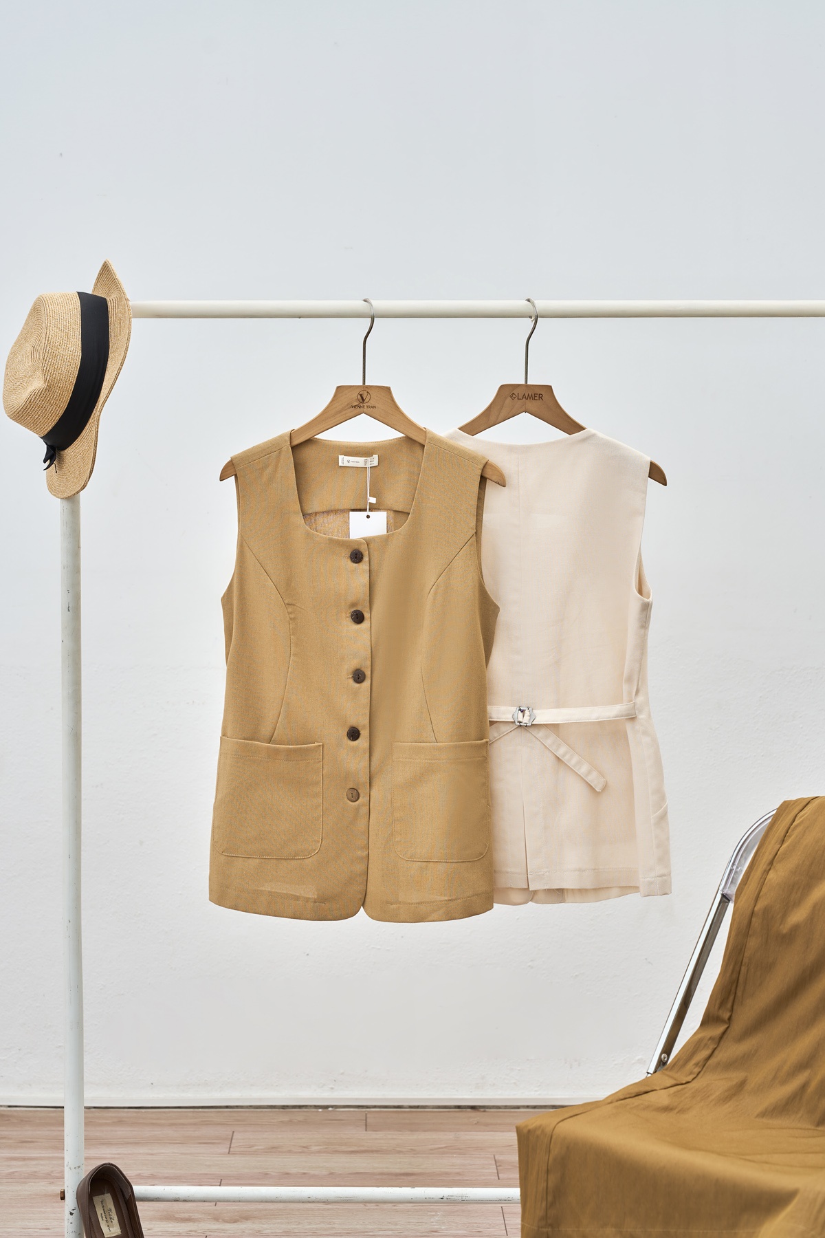 Áo Gile cổ vuông túi ốp - O65G25Q007 KHUYẾN MÃI - ƯU ĐÃI