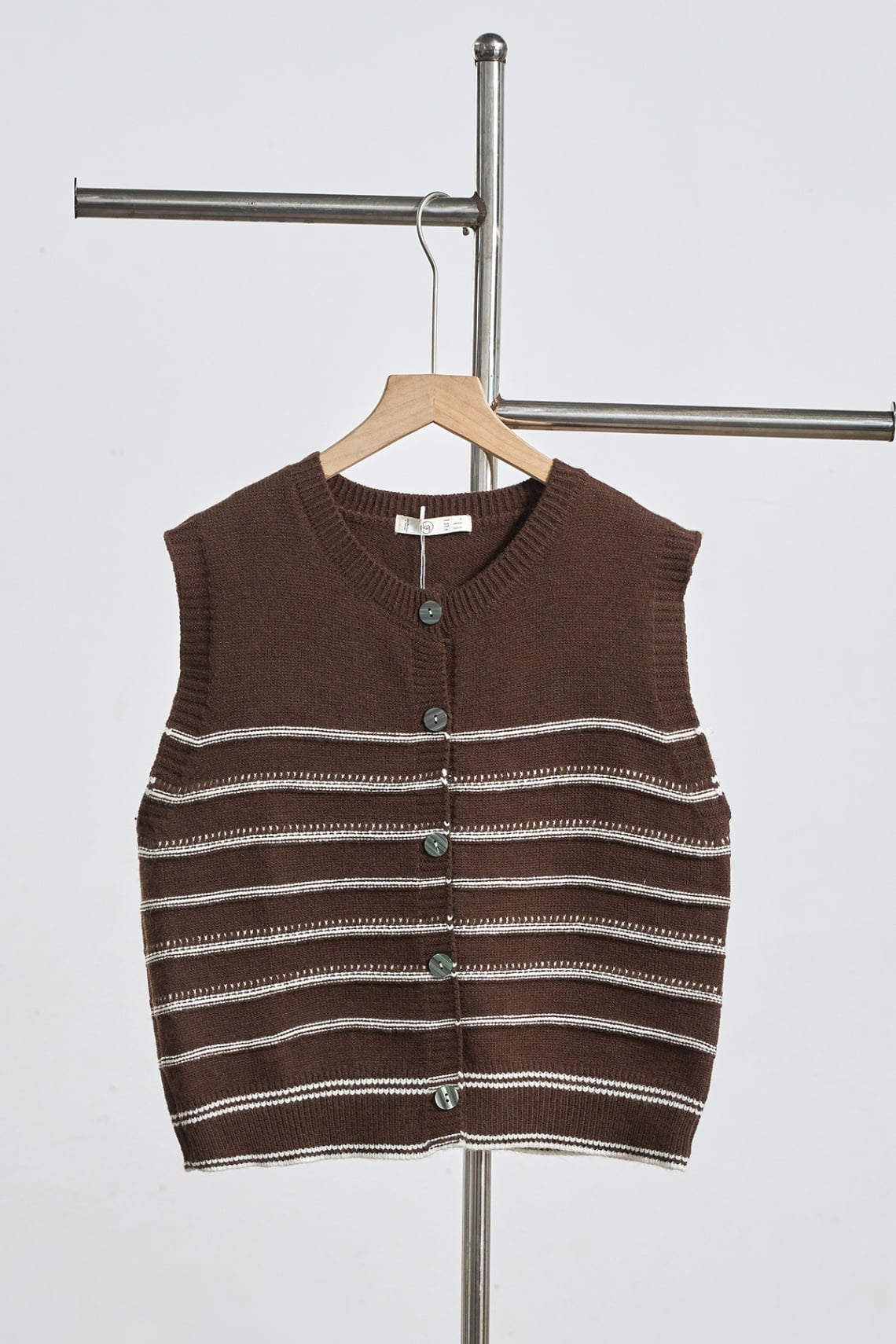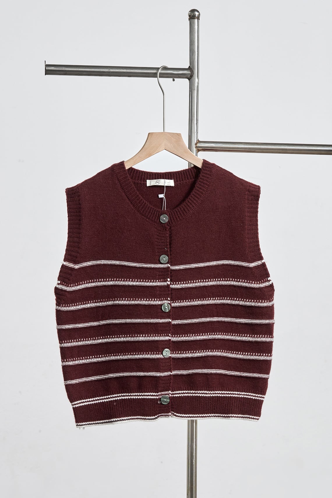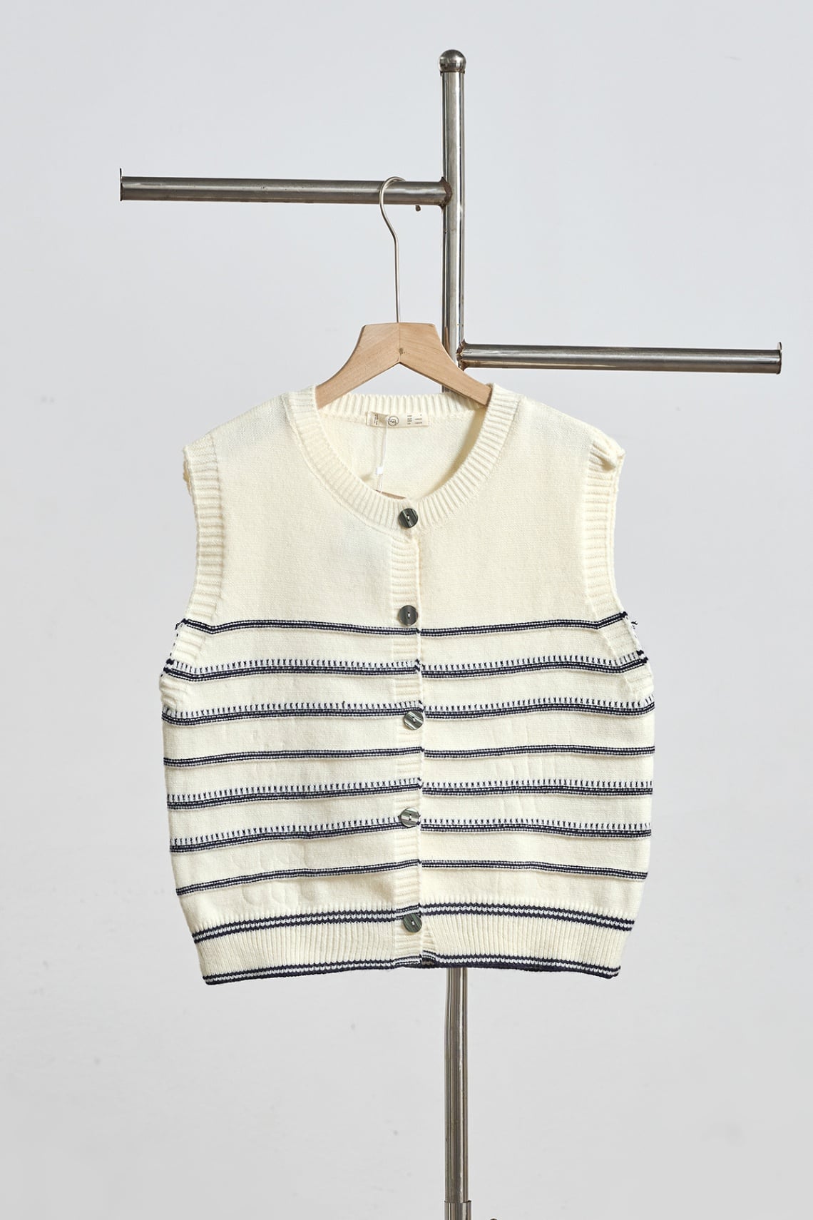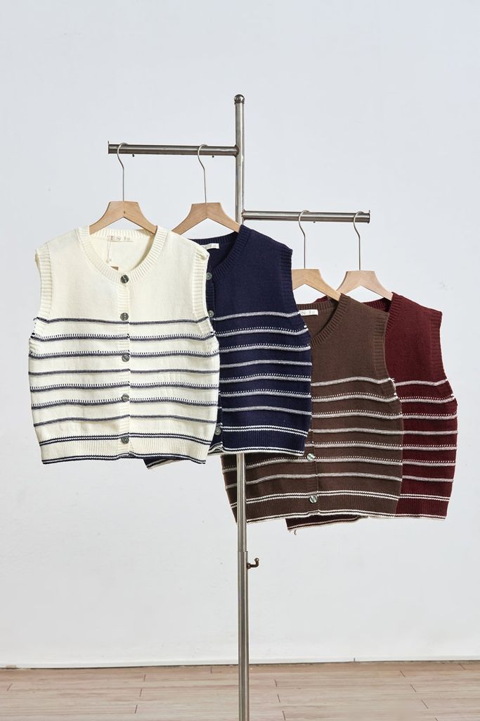 Áo gile kẻ phối màu đóng cúc bo gấu - N65G25Q042