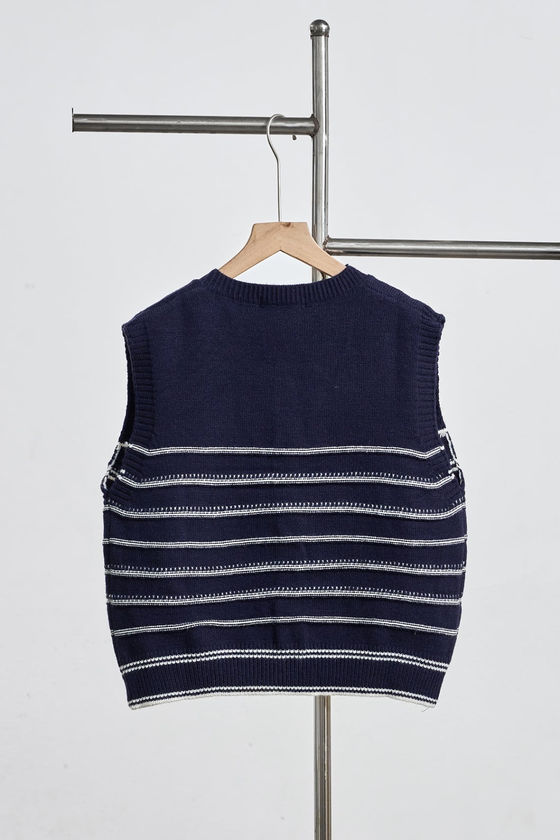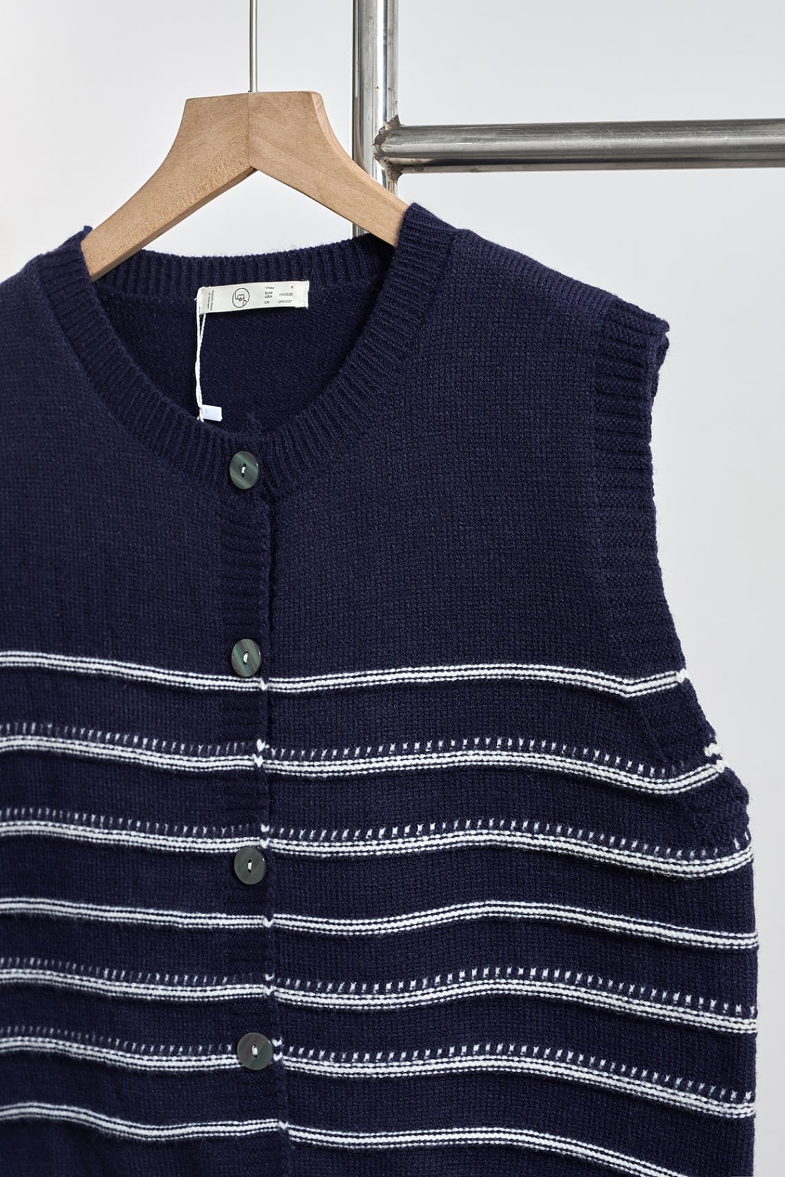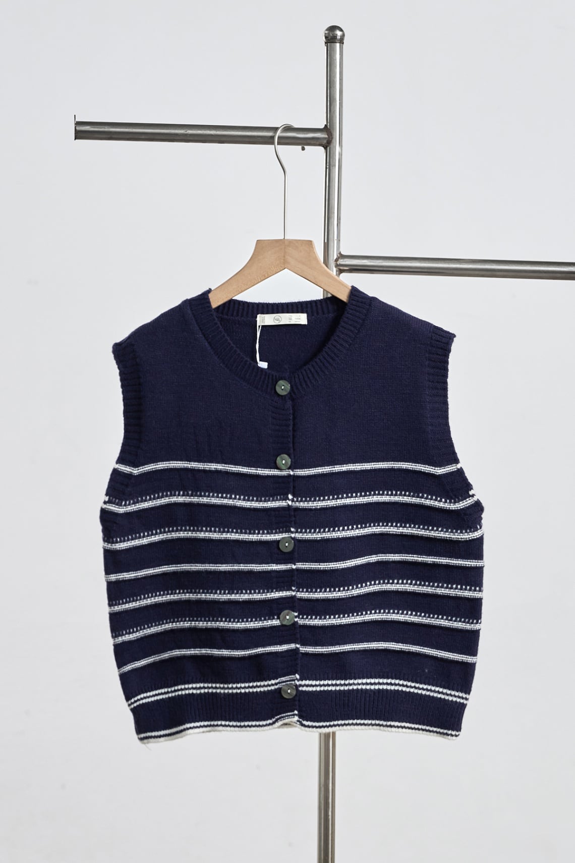 Áo gile kẻ phối màu đóng cúc bo gấu - N65G25Q042