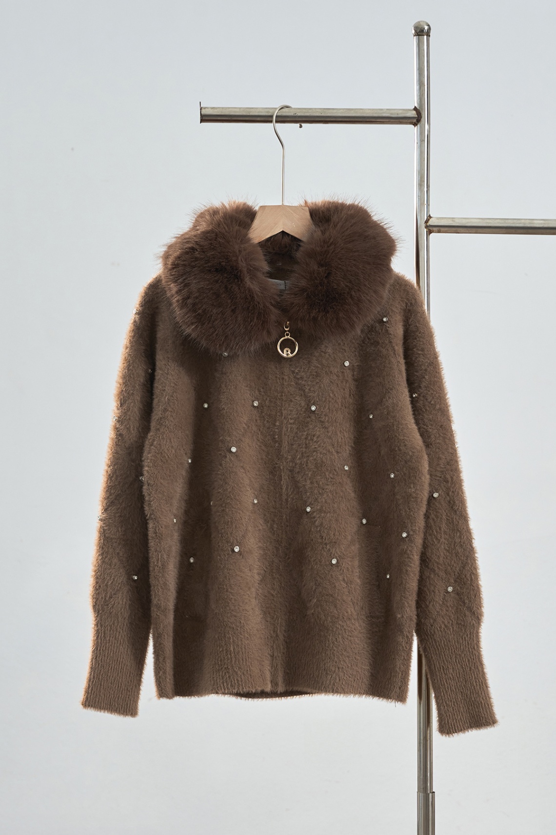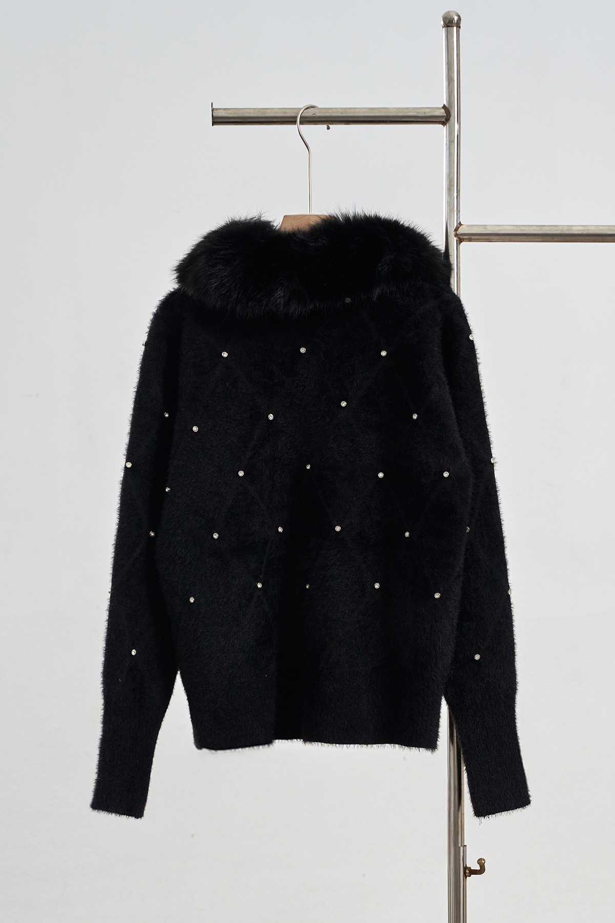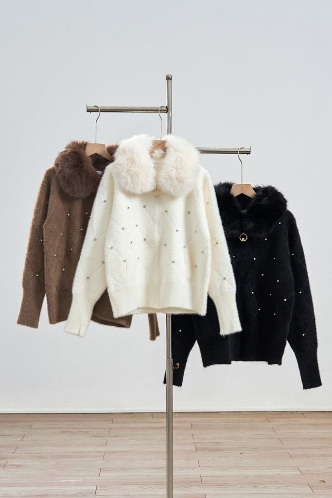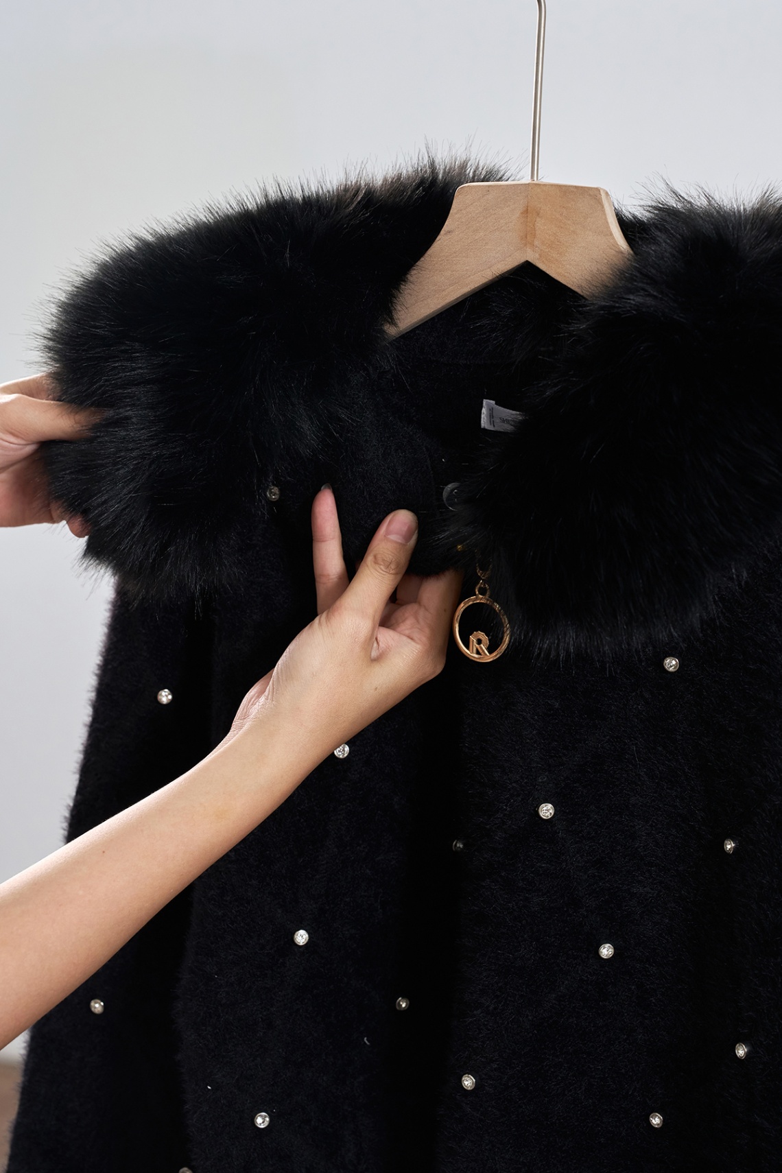 Áo khoác cổ lông kéo khoá đính đá - N65O25T032