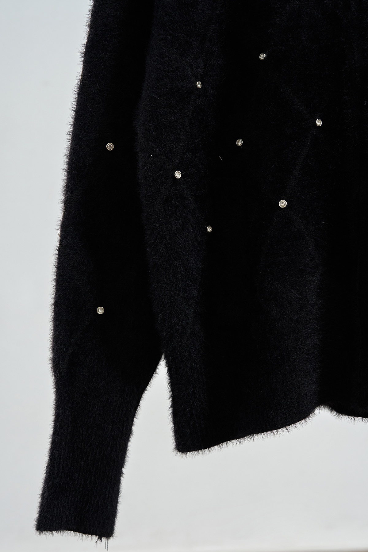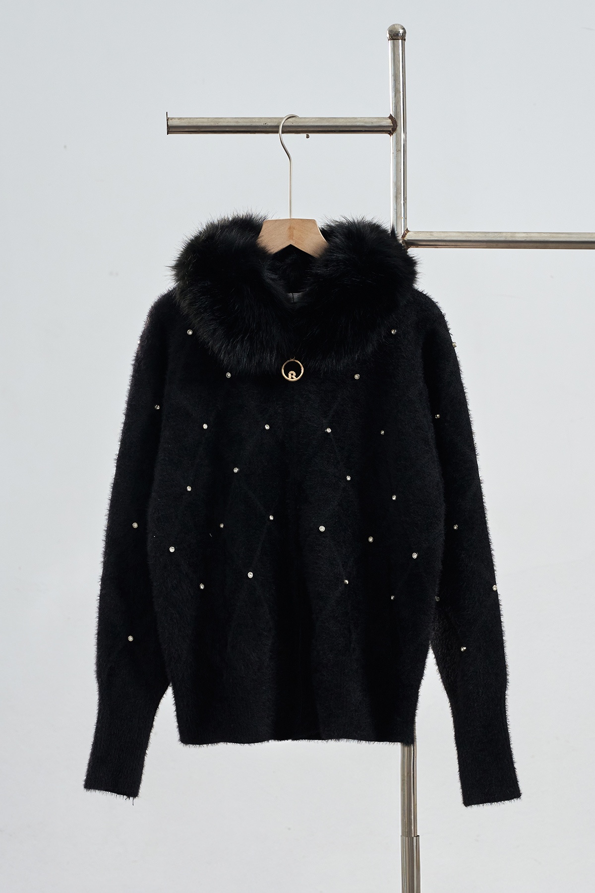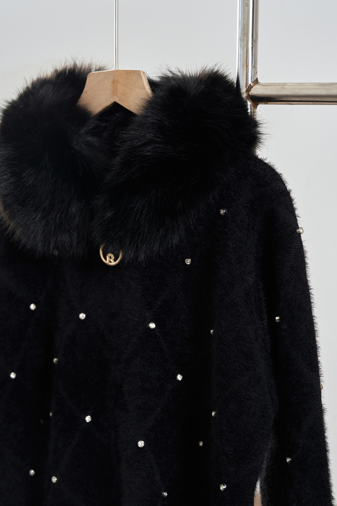 Áo khoác cổ lông kéo khoá đính đá - N65O25T032