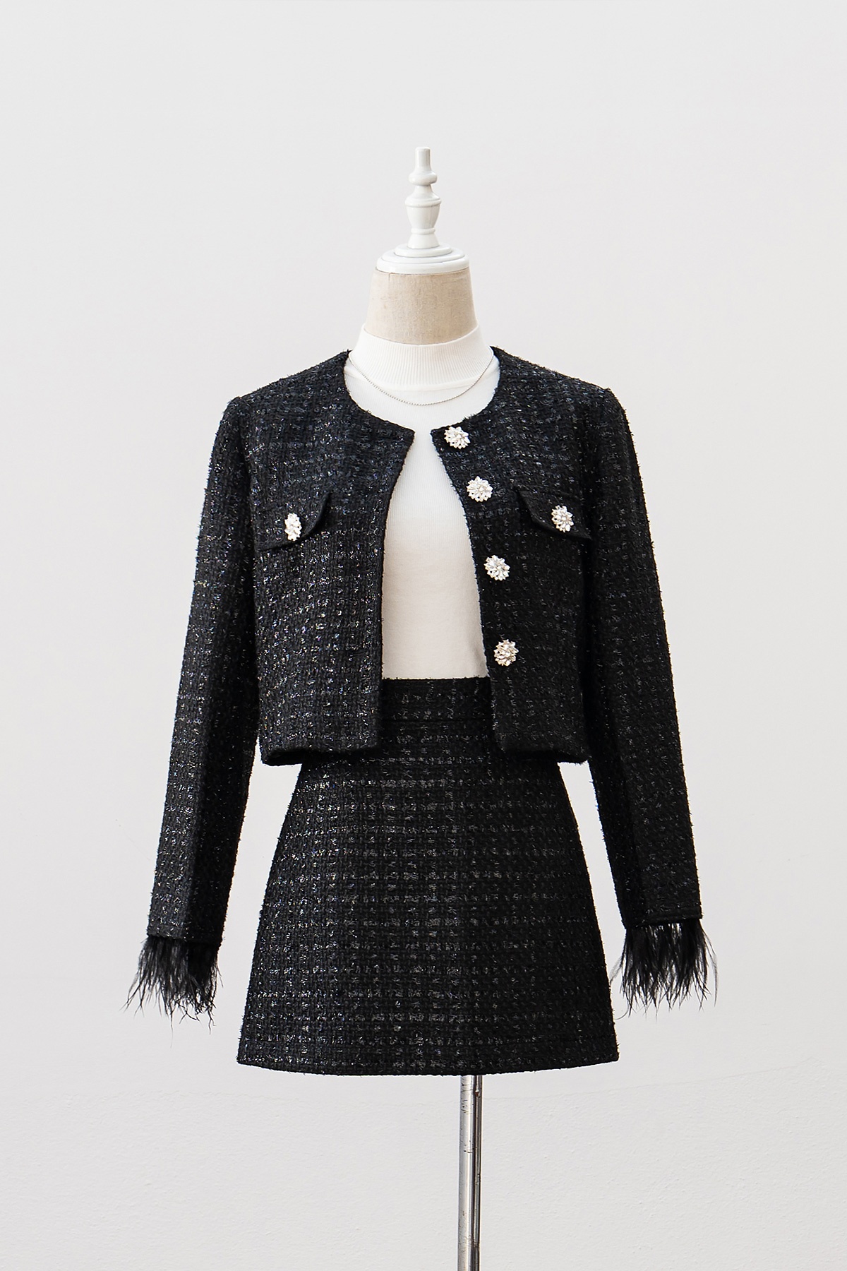 Áo khoác dạ cổ tròn tay đính lông-GBT001 : S65W23T001-S1400