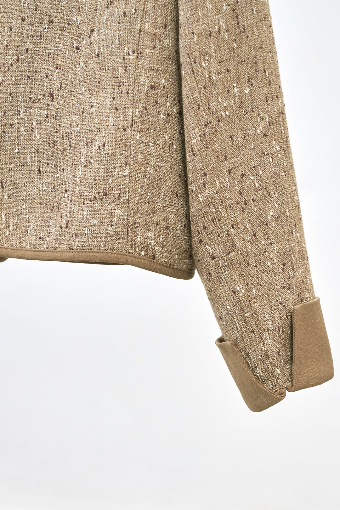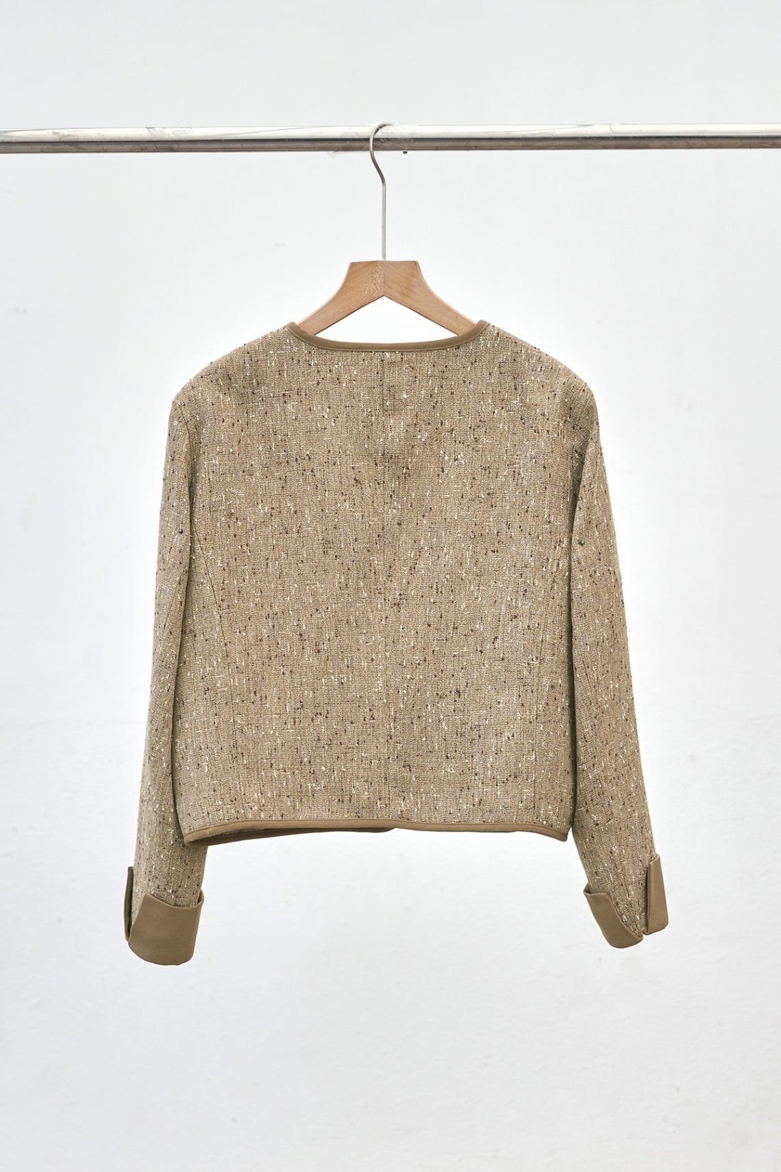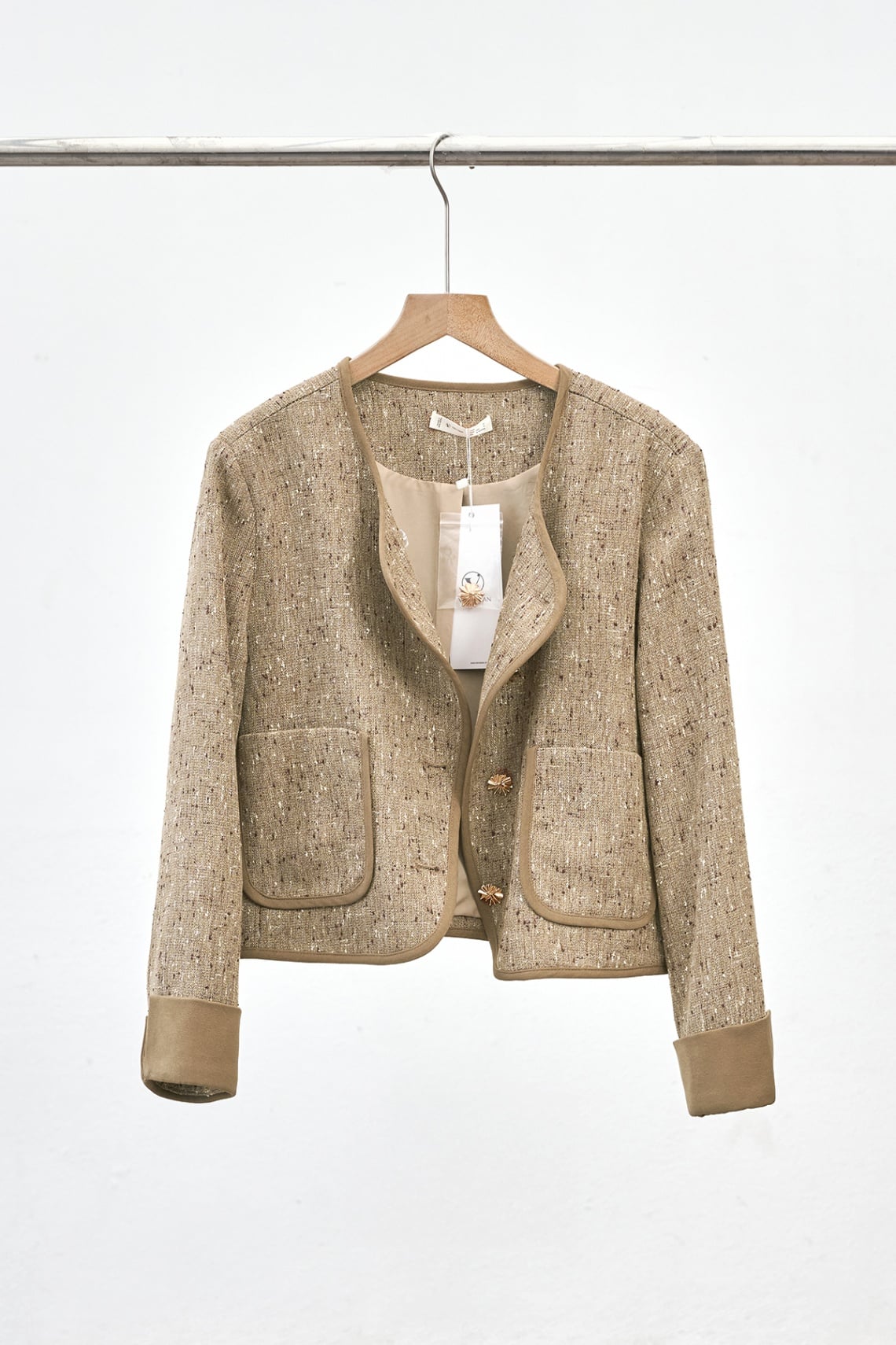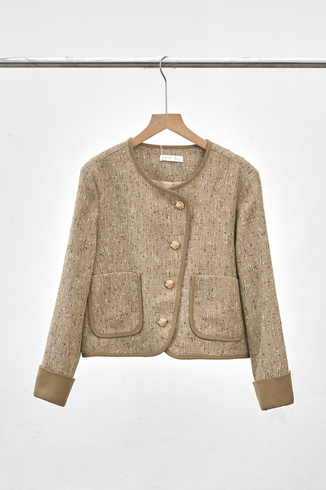 Mô tả sản phẩm : Áo khoác dạ cổ tròn dáng suông, túi ốp, phối viền, phối tay