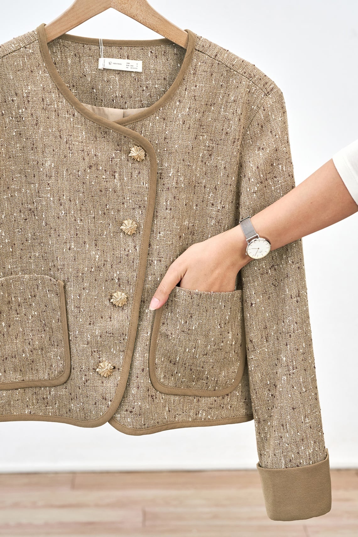 Áo khoác dạ phối viền túi ốp - V65W25T009 KHUYẾN MÃI - ƯU ĐÃI