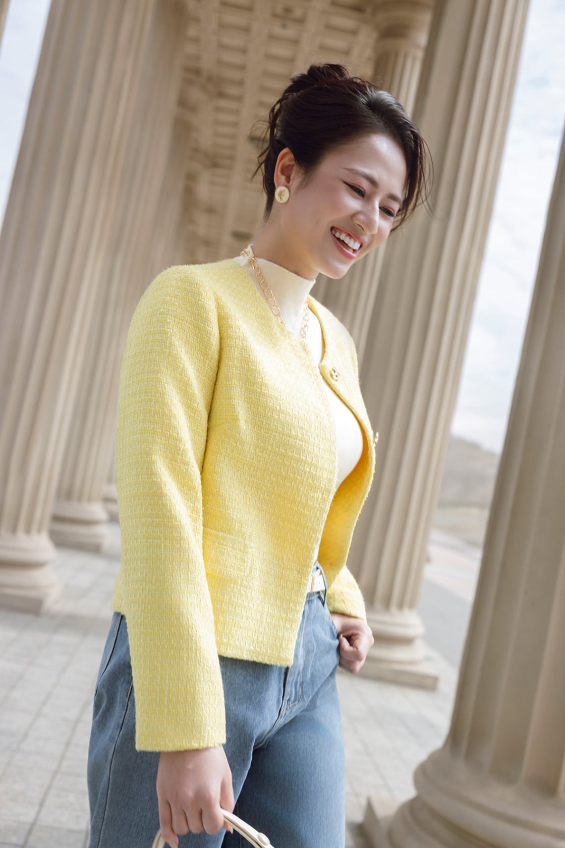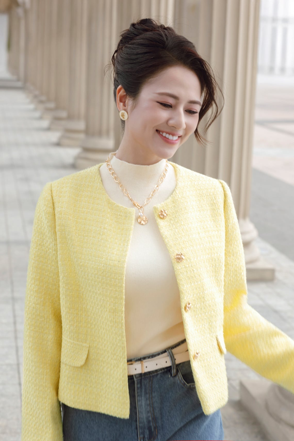 Áo khoác dạ tweed cổ tròn túi giả-Vienne Tran : O65W25T006