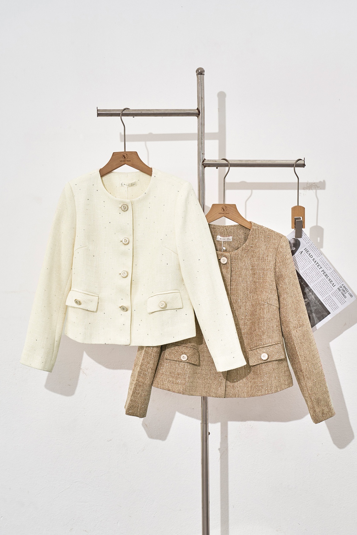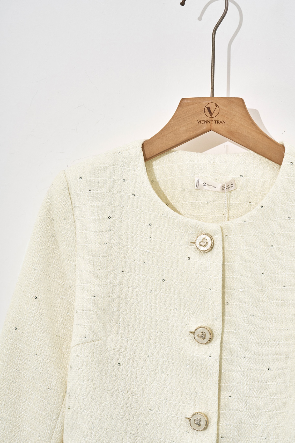 Áo khoác dạ tweed cổ tròn - V65W24T020