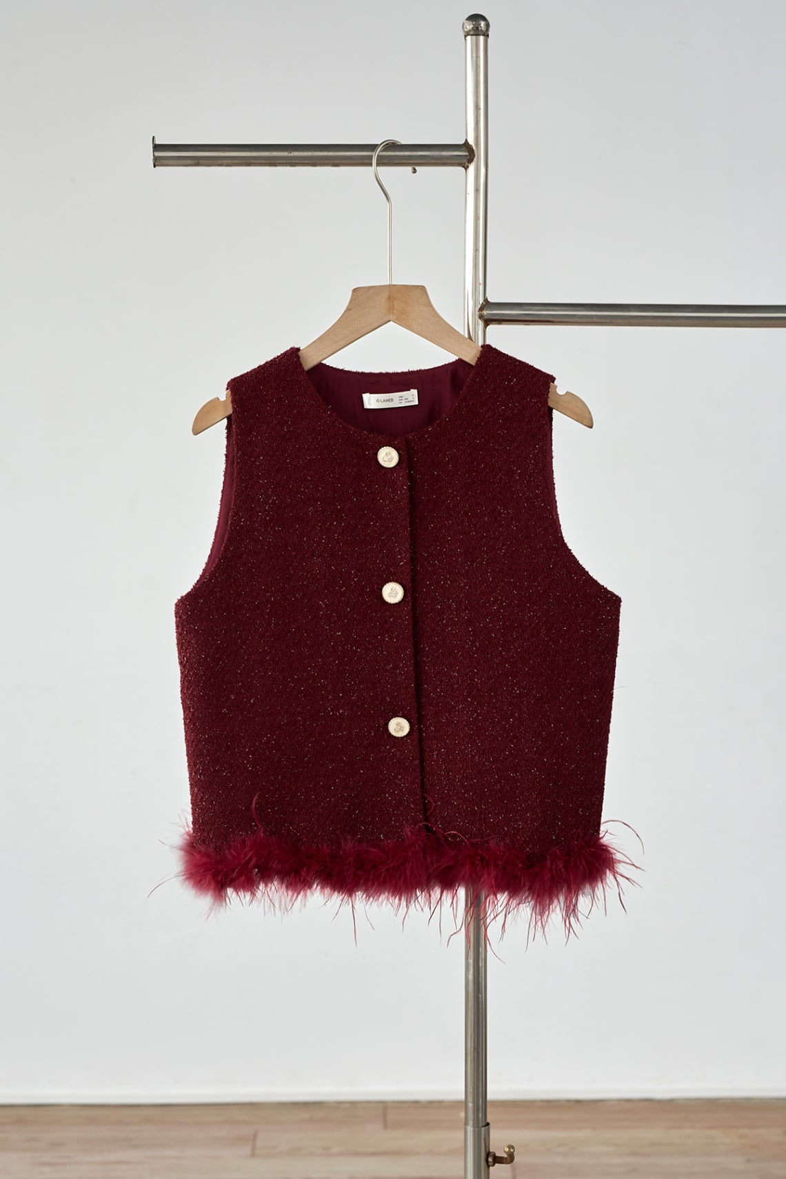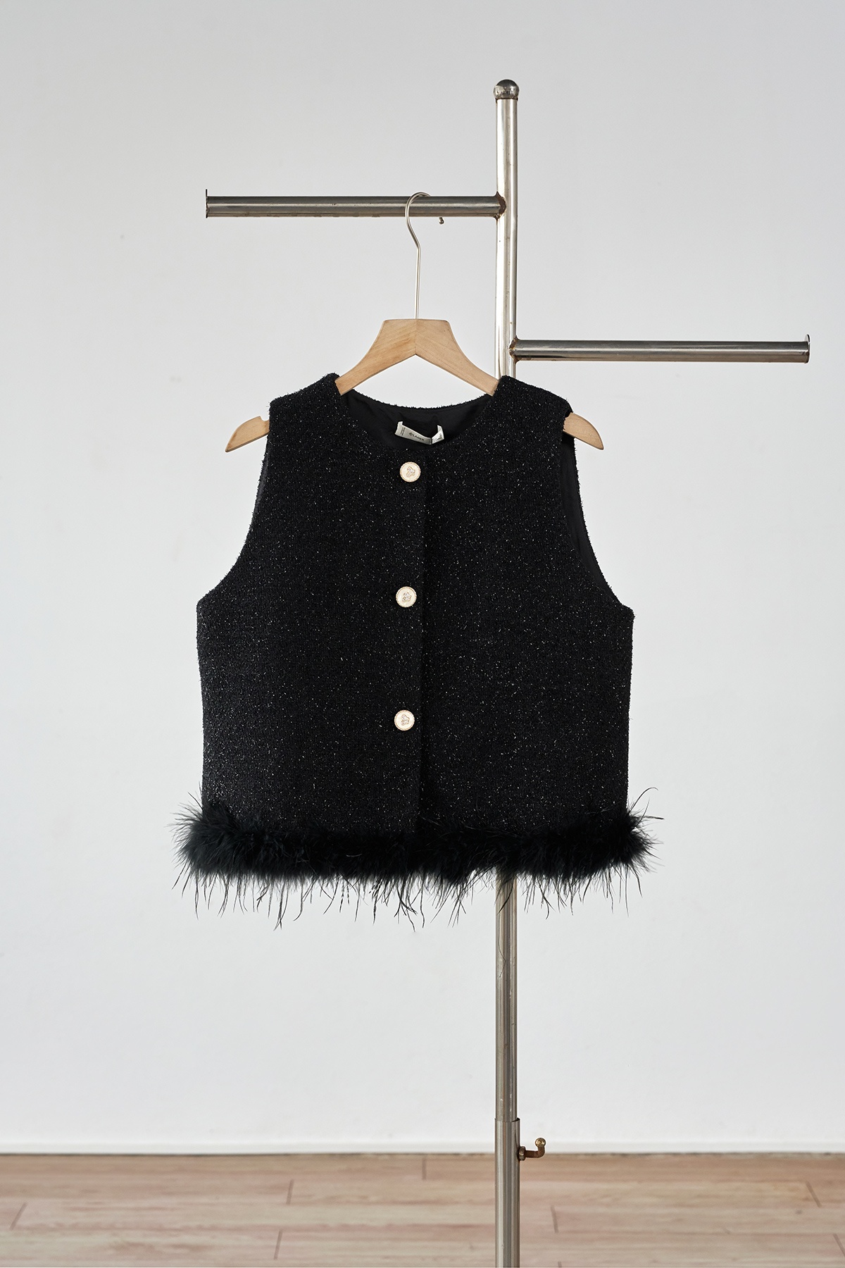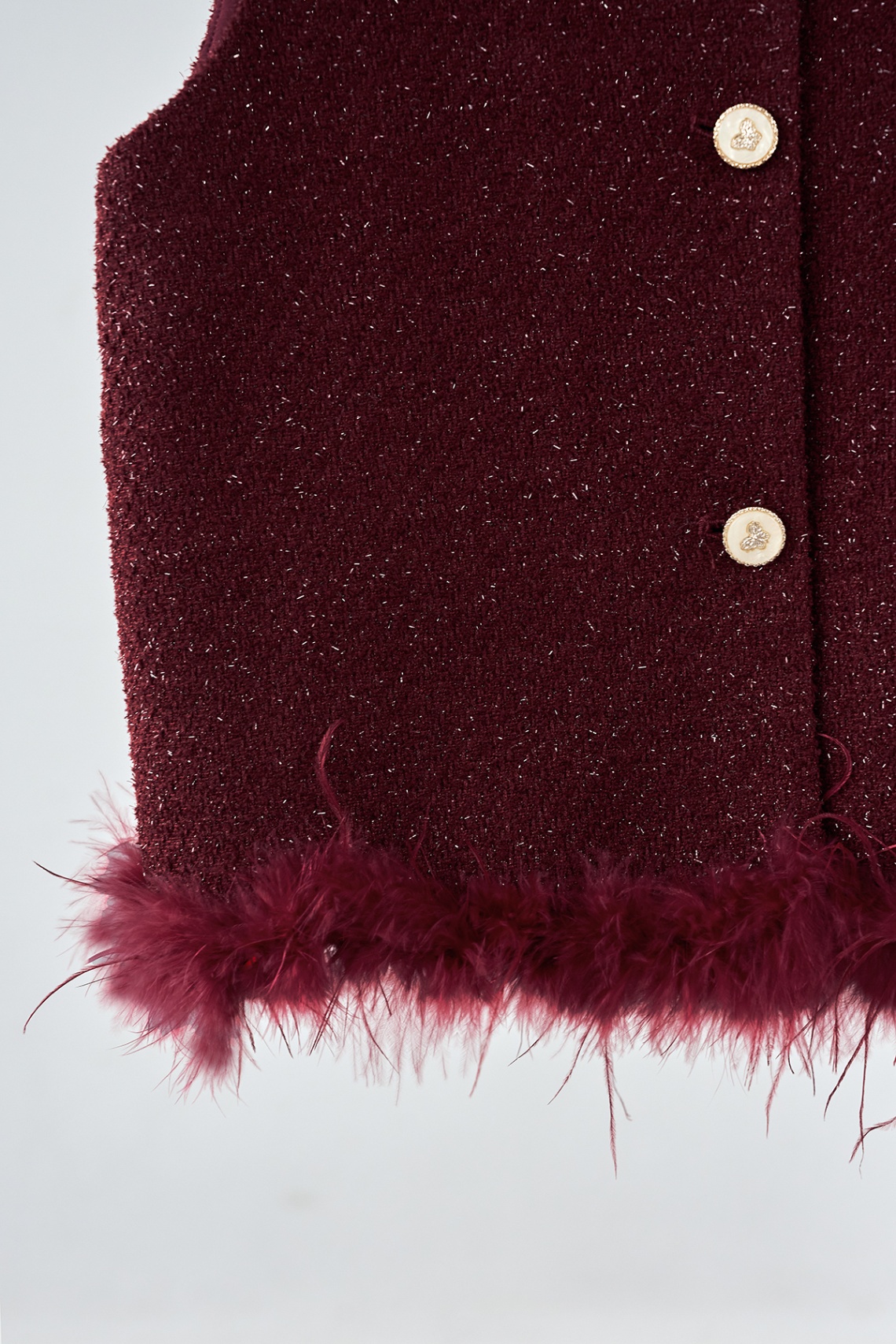 Mô tả sản phẩm : Áo gile dáng rộng, phối gấu lông vũ, đóng cúc. GB L63M25T004