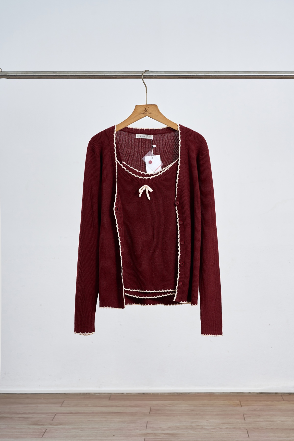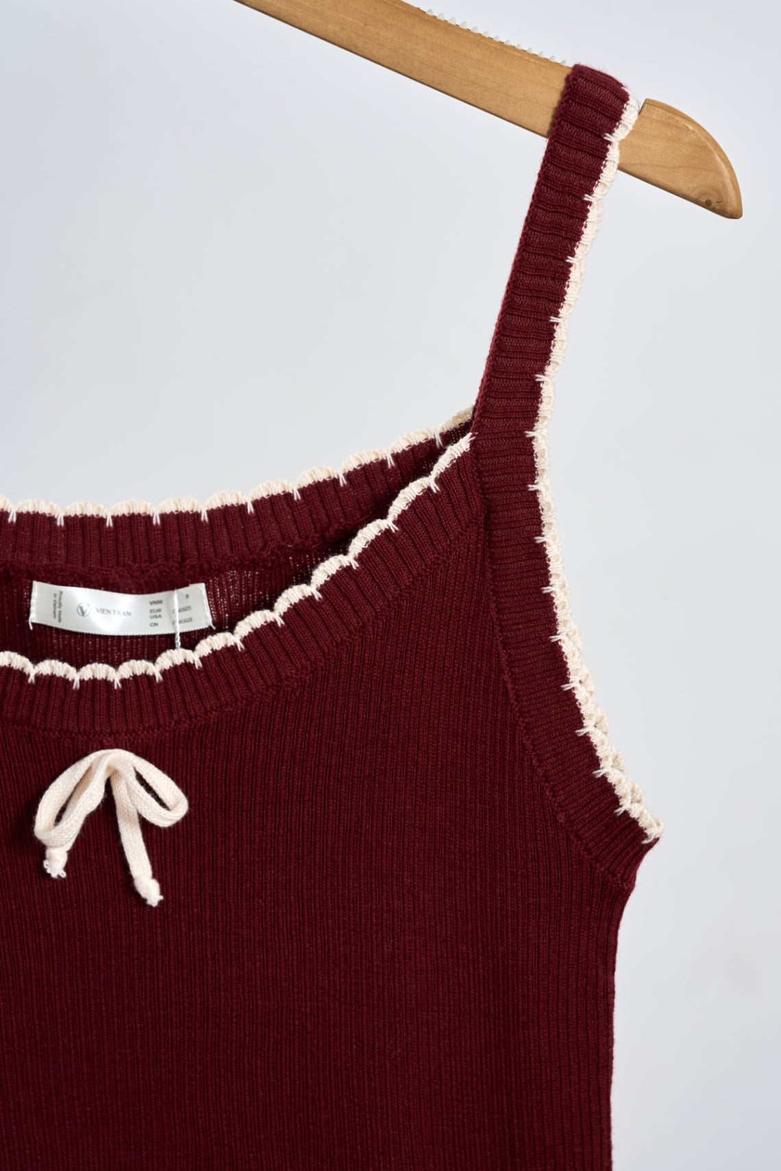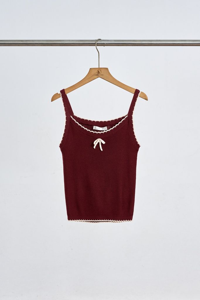 Áo len 2 dây phối viền đính nơ - V61B25T001 KHUYẾN MÃI - ƯU ĐÃI