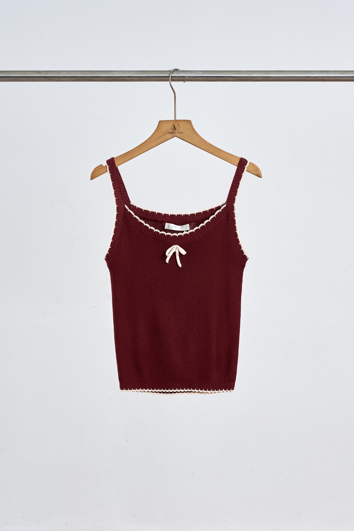 Mô tả sản phẩm : Áo len 2 dây phối viền croptop thêu nơ. GB V65C25T002