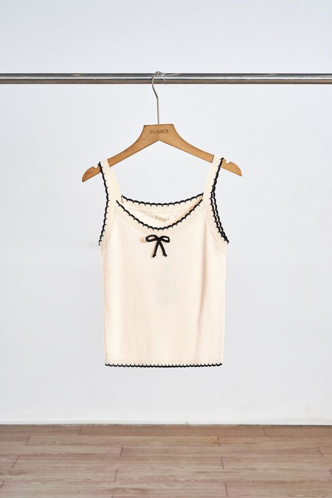 Áo len 2 dây phối viền đính nơ - V61B25T001