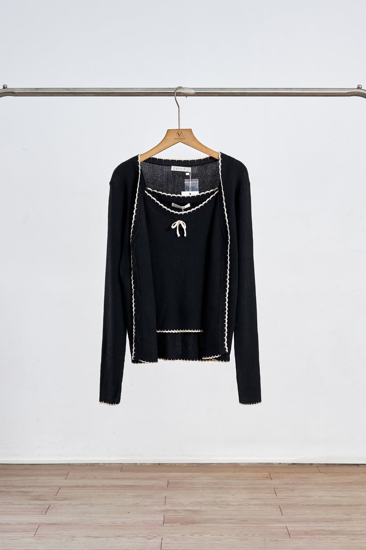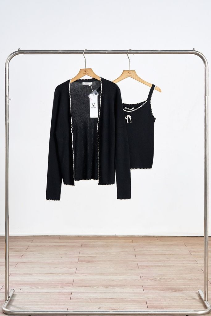 Áo len 2 dây phối viền đính nơ - V61B25T001