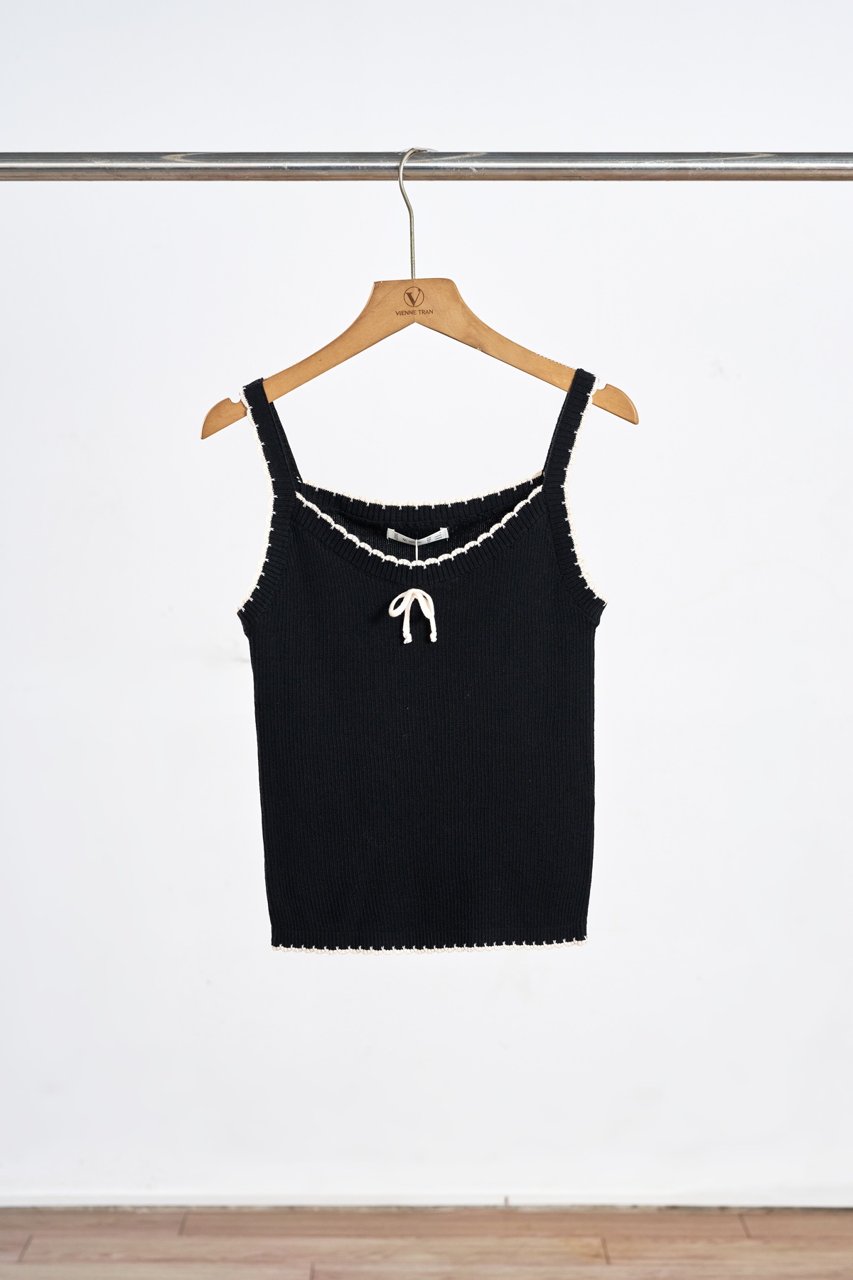 Áo len 2 dây phối viền đính nơ - V61B25T001 KHUYẾN MÃI - ƯU ĐÃI