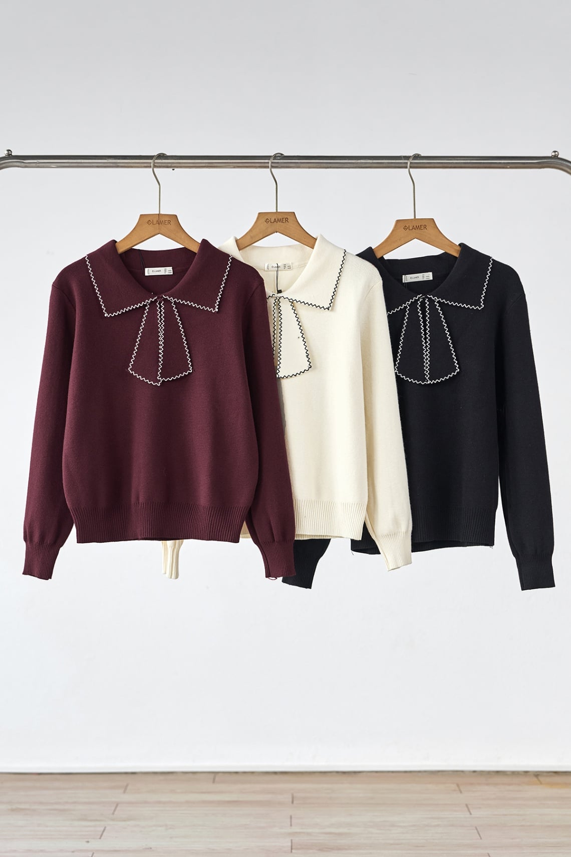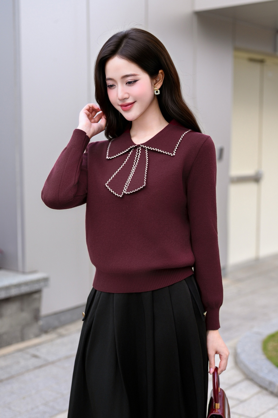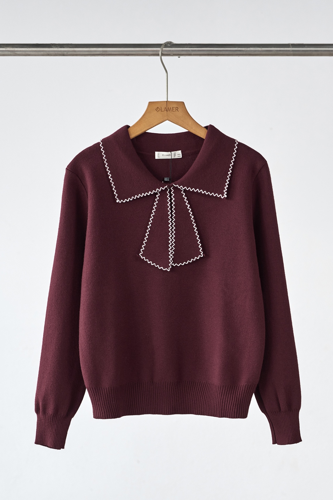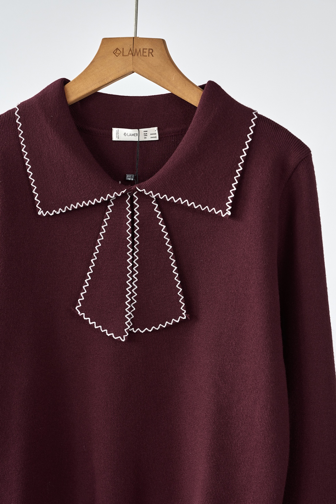 Áo len bo gấu phối viền cổ bẻ - L61W25T018