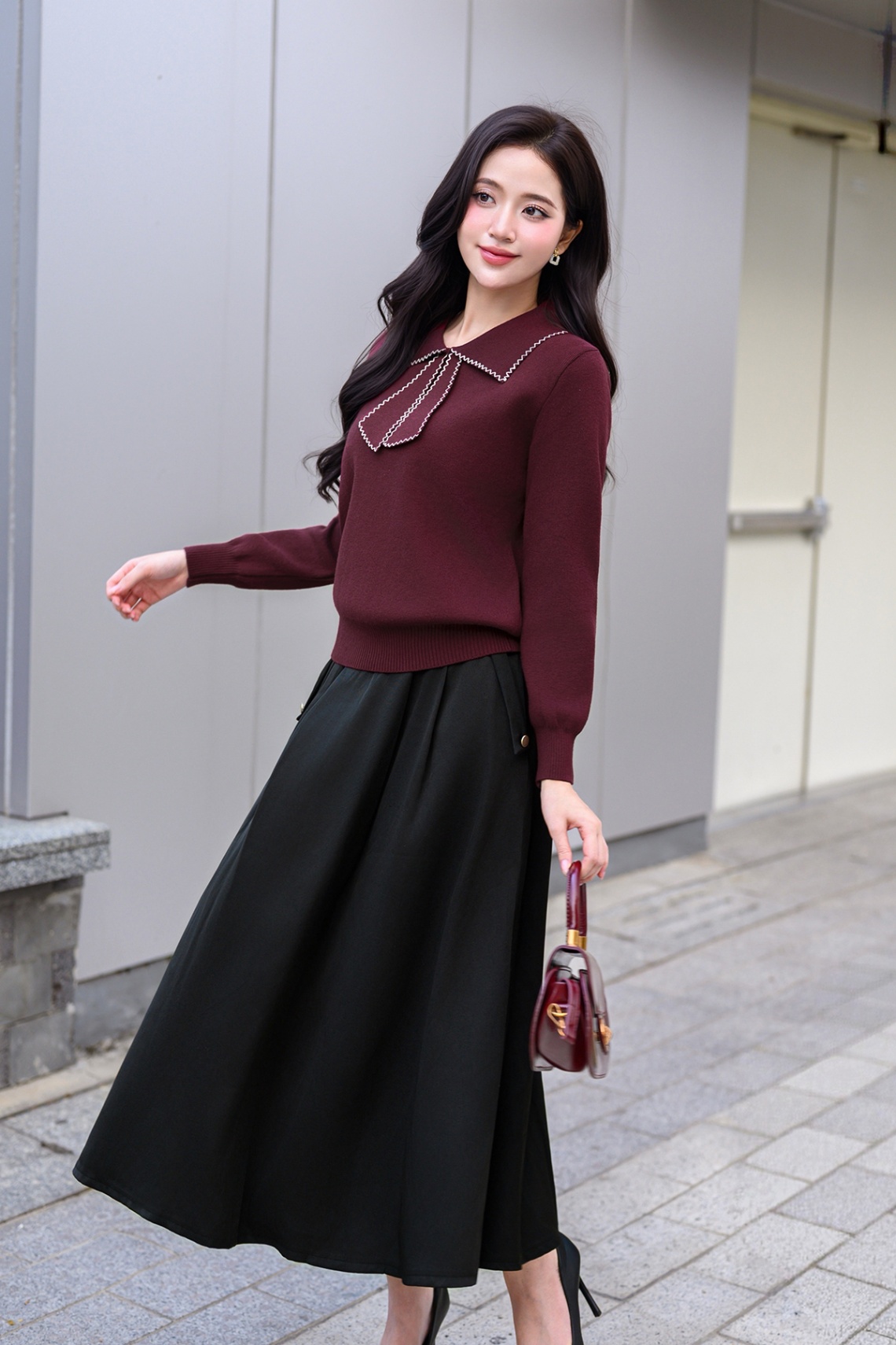 Áo len bo gấu phối viền cổ bẻ - L61W25T018 KHUYẾN MÃI - ƯU ĐÃI