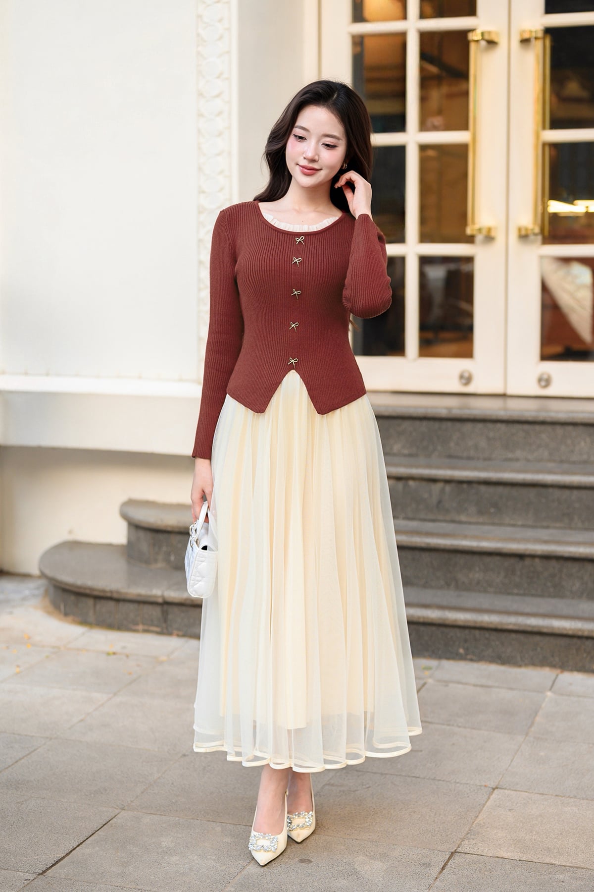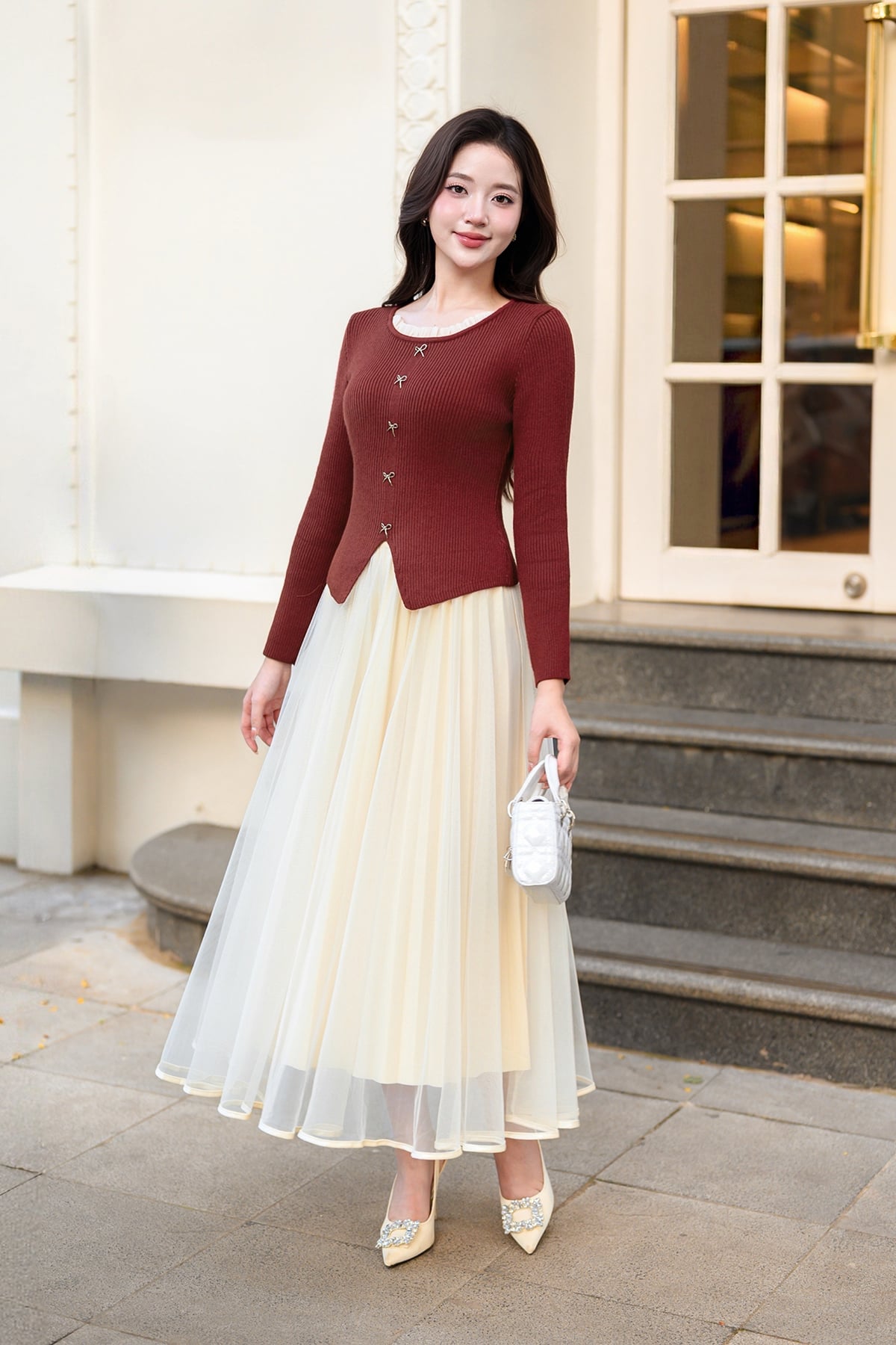 Áo len cổ phối bèo cúc trang trí - V61W25T002 KHUYẾN MÃI - ƯU ĐÃI
