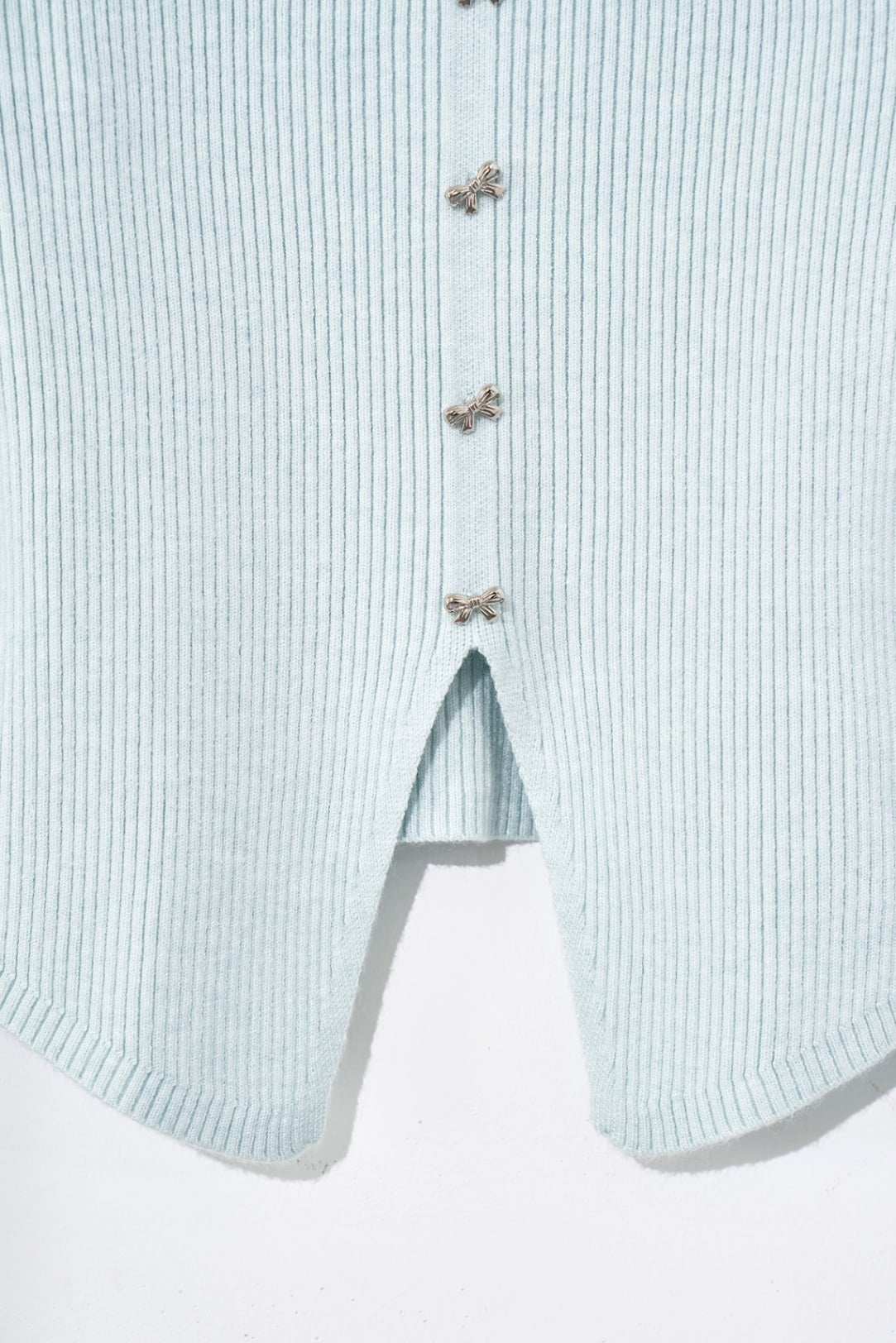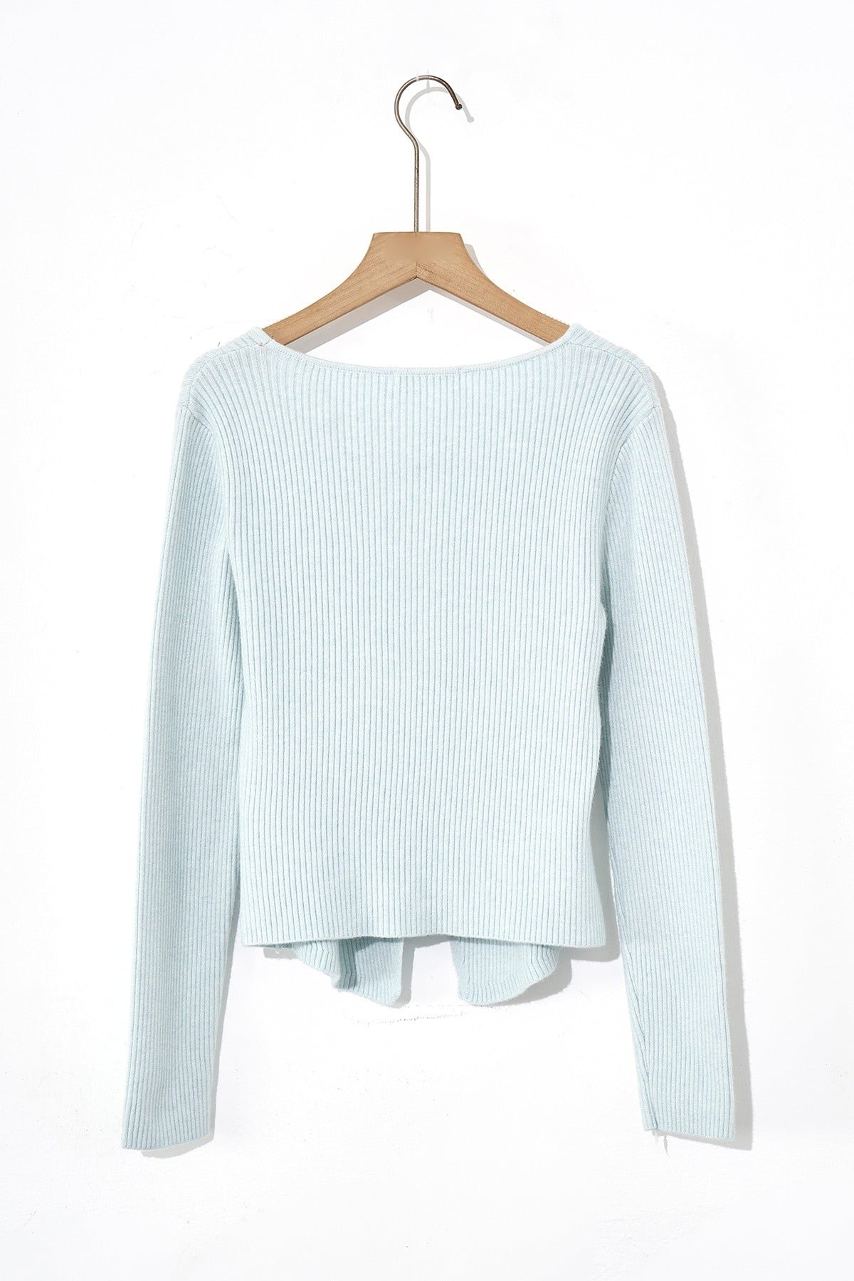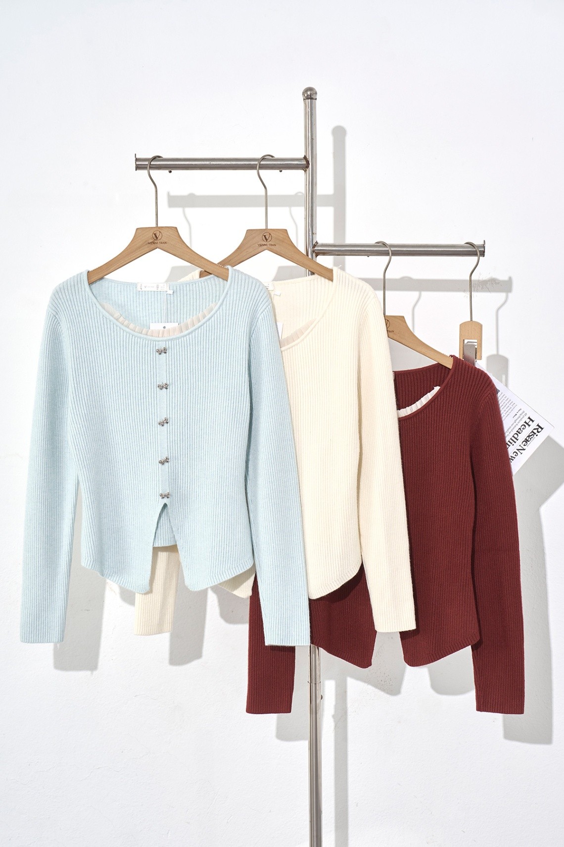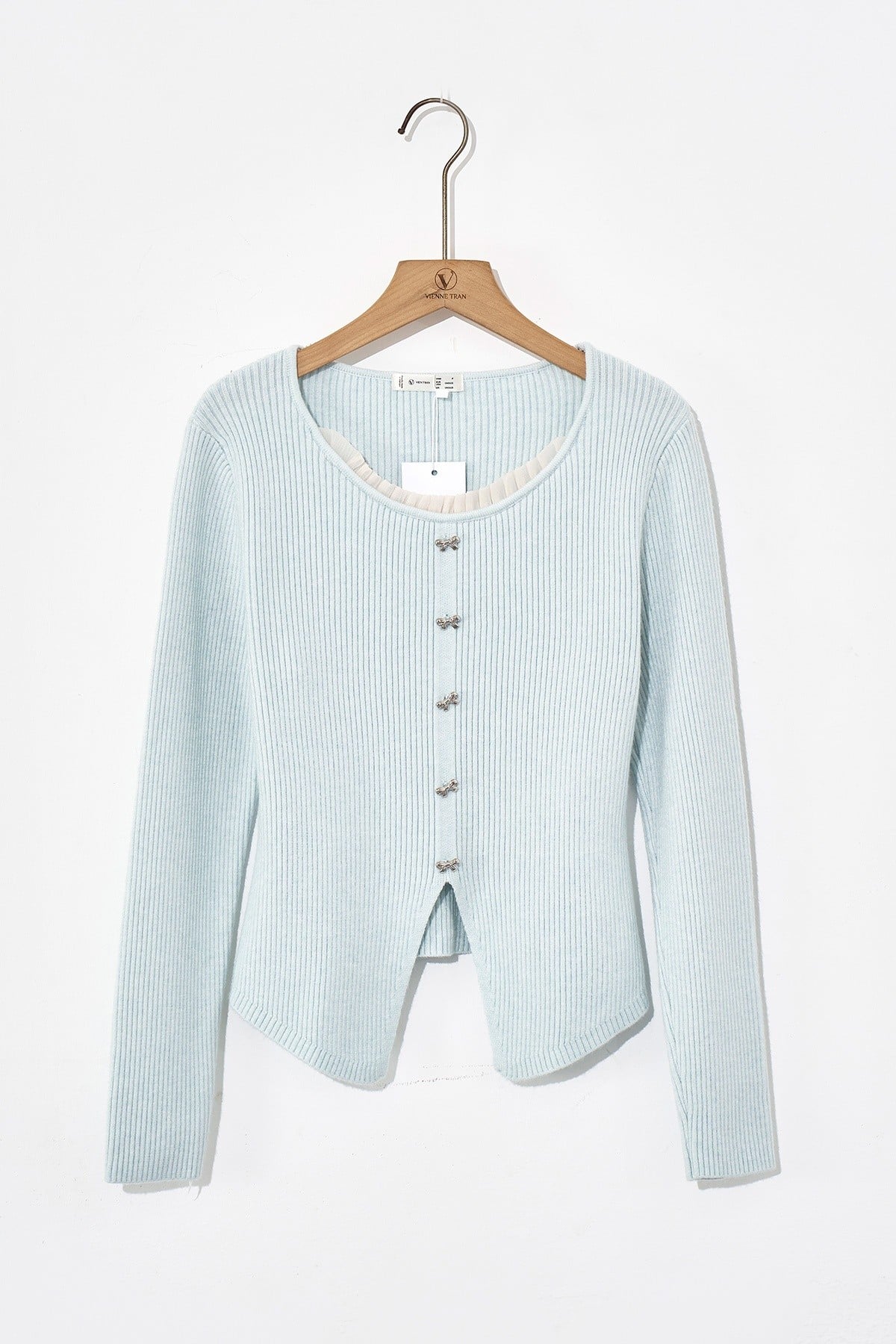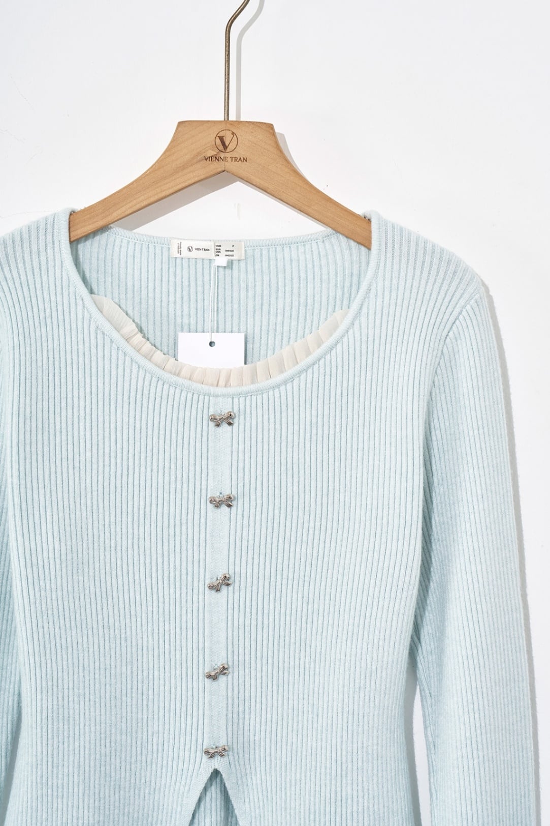 Áo len cổ phối bèo cúc trang trí - V61W25T002