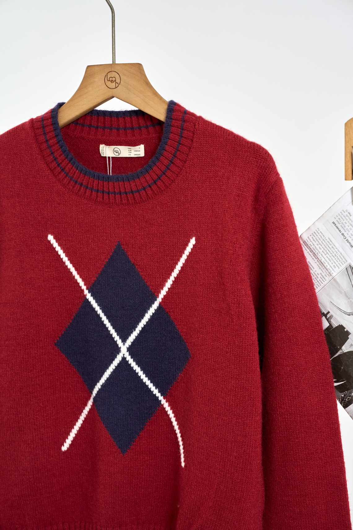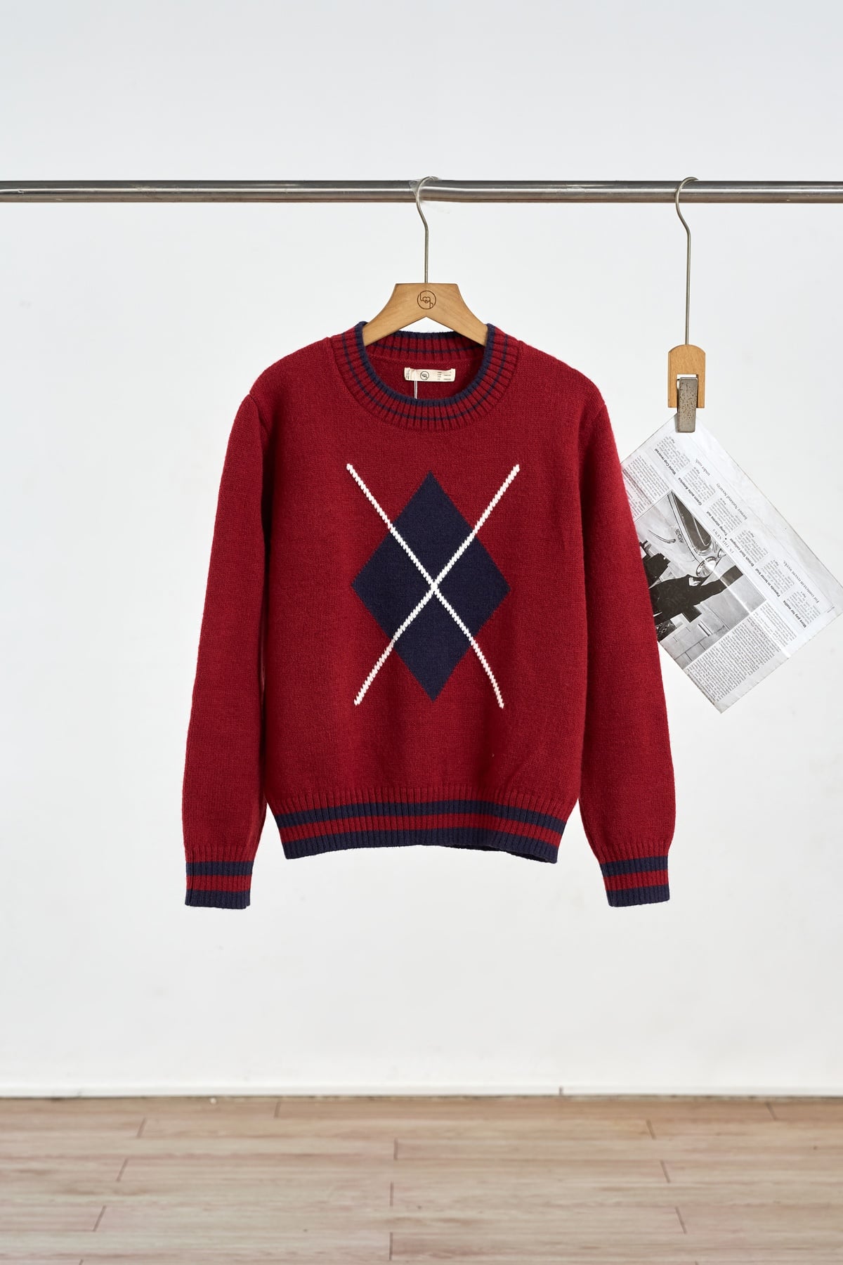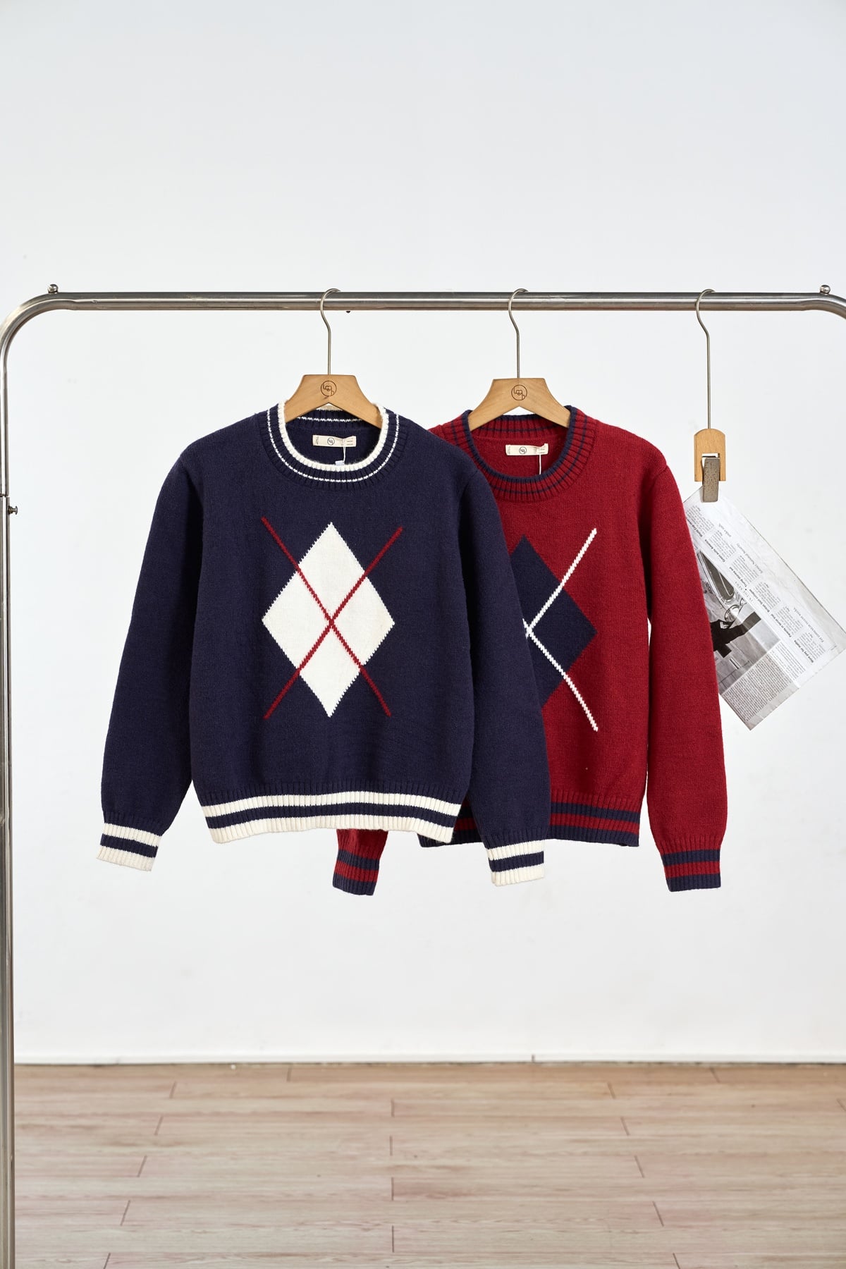 Áo len cổ tròn dệt hình trám : H61W25T001