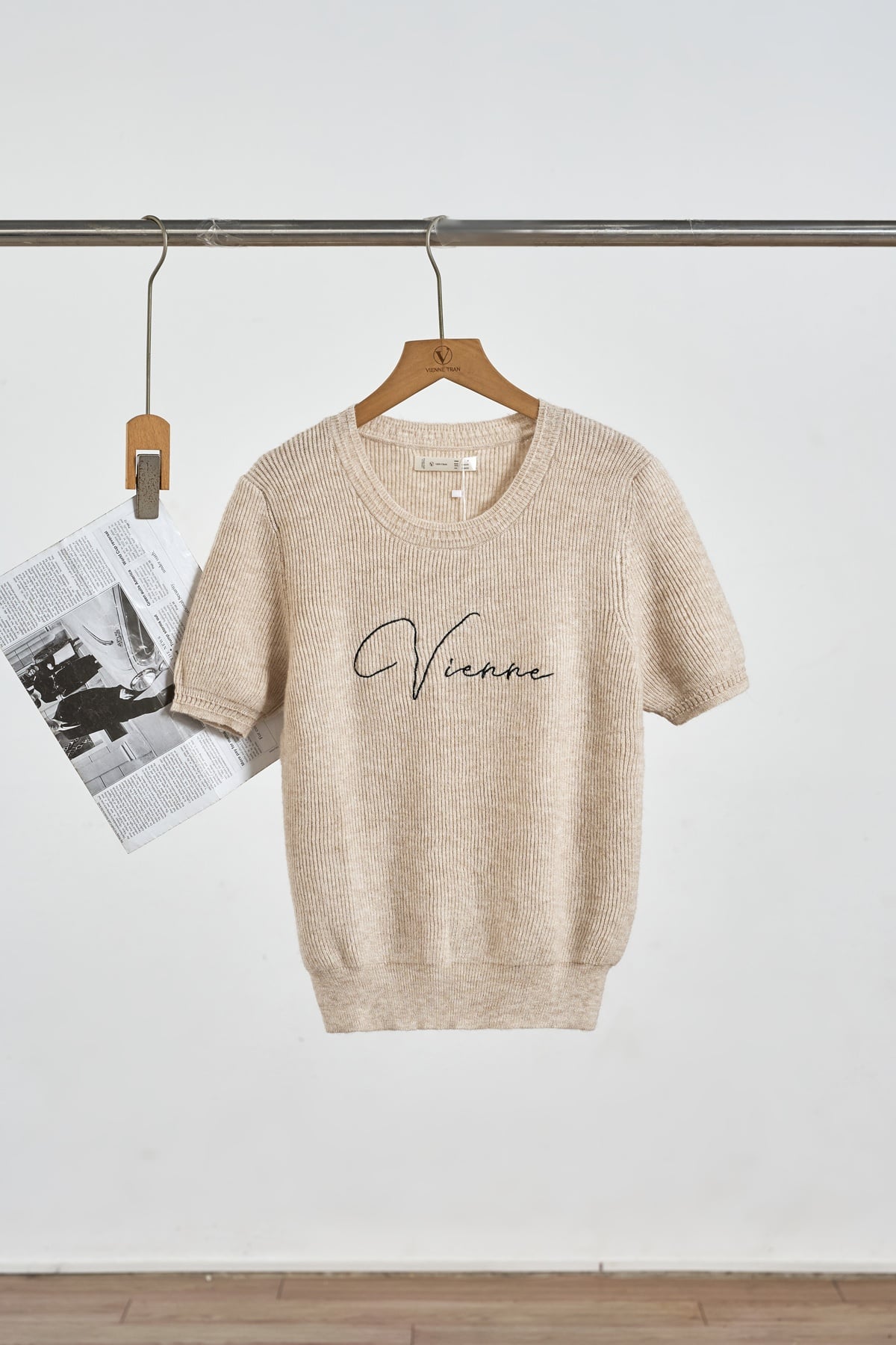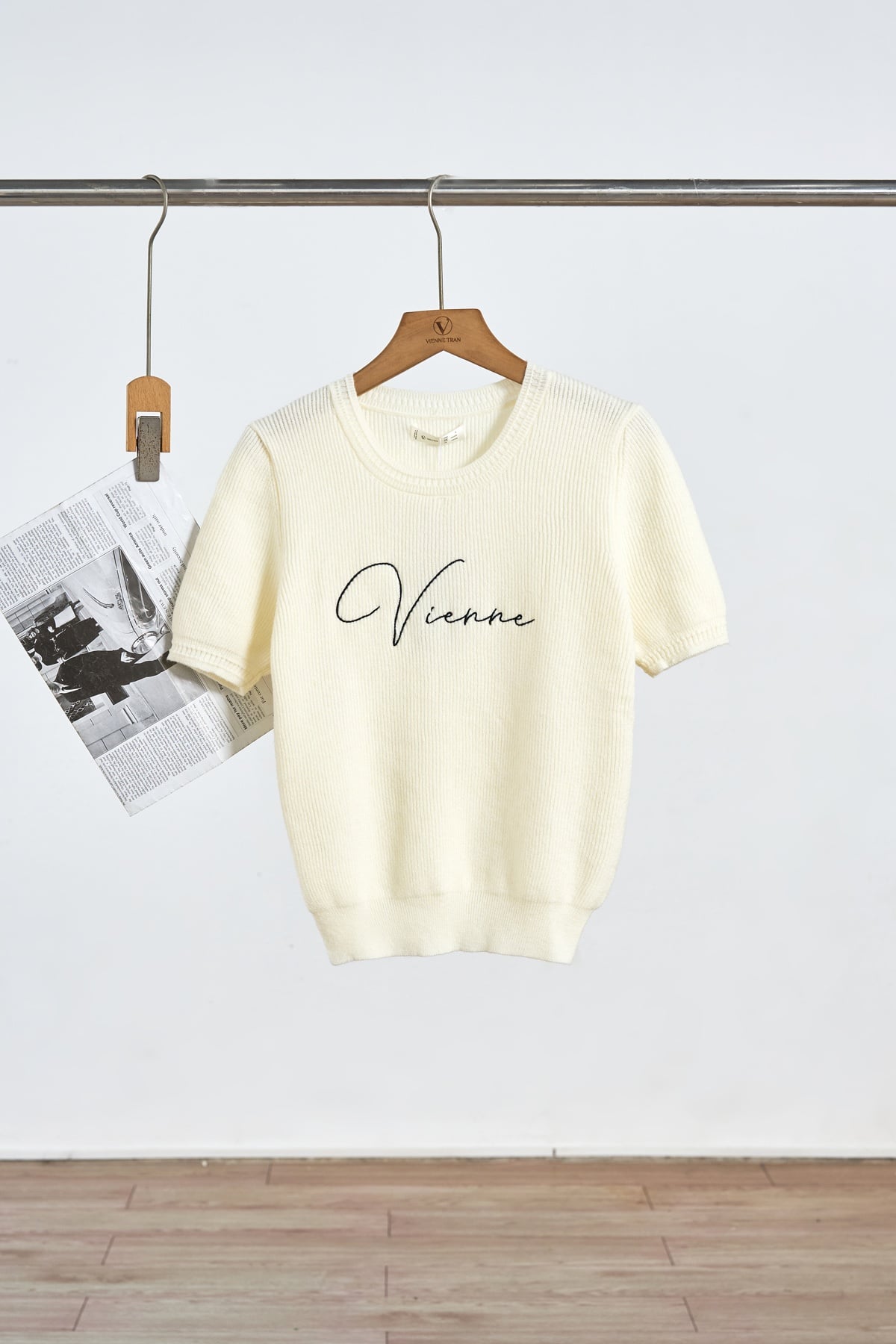Áo len cổ tròn tay ngắn thêu ngực - V61W25Q029 KHUYẾN MÃI - ƯU ĐÃI