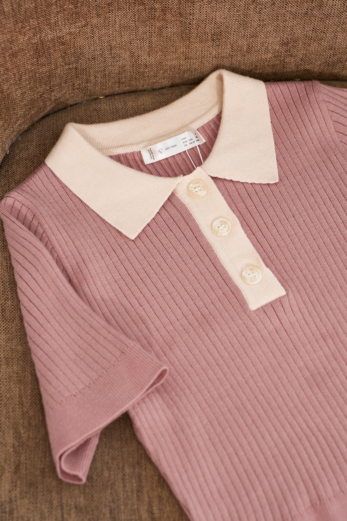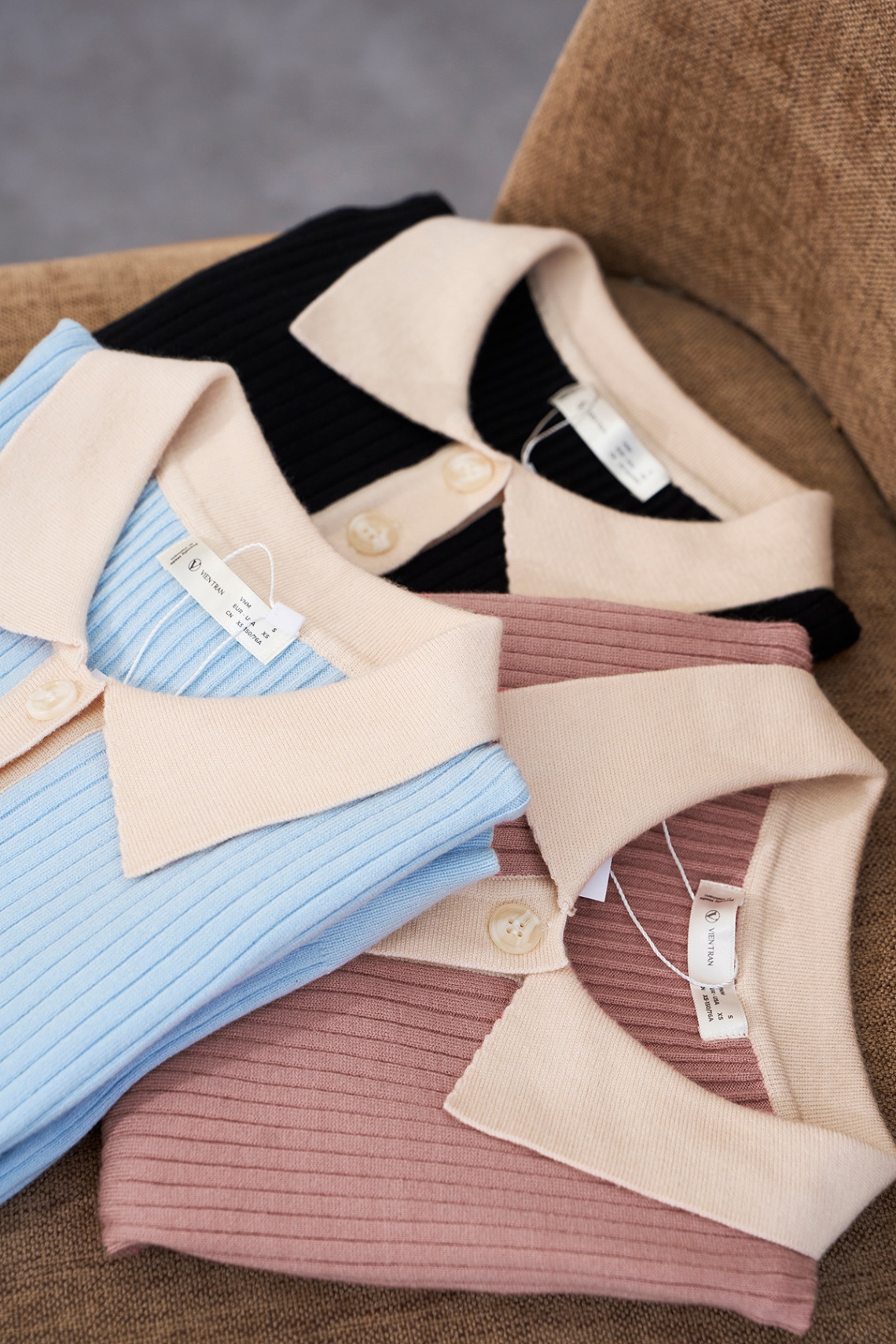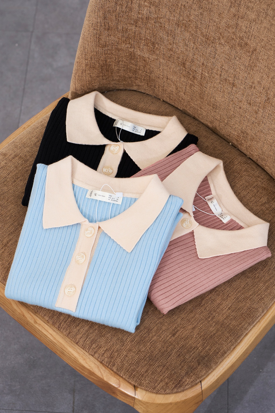 Áo len croptop cổ bẻ nẹp trụ phối - V61W24Q037 KHUYẾN MÃI - ƯU ĐÃI