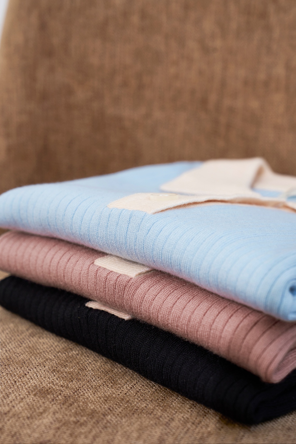 Áo len croptop cổ bẻ nẹp trụ phối : V61W24Q037-S3301